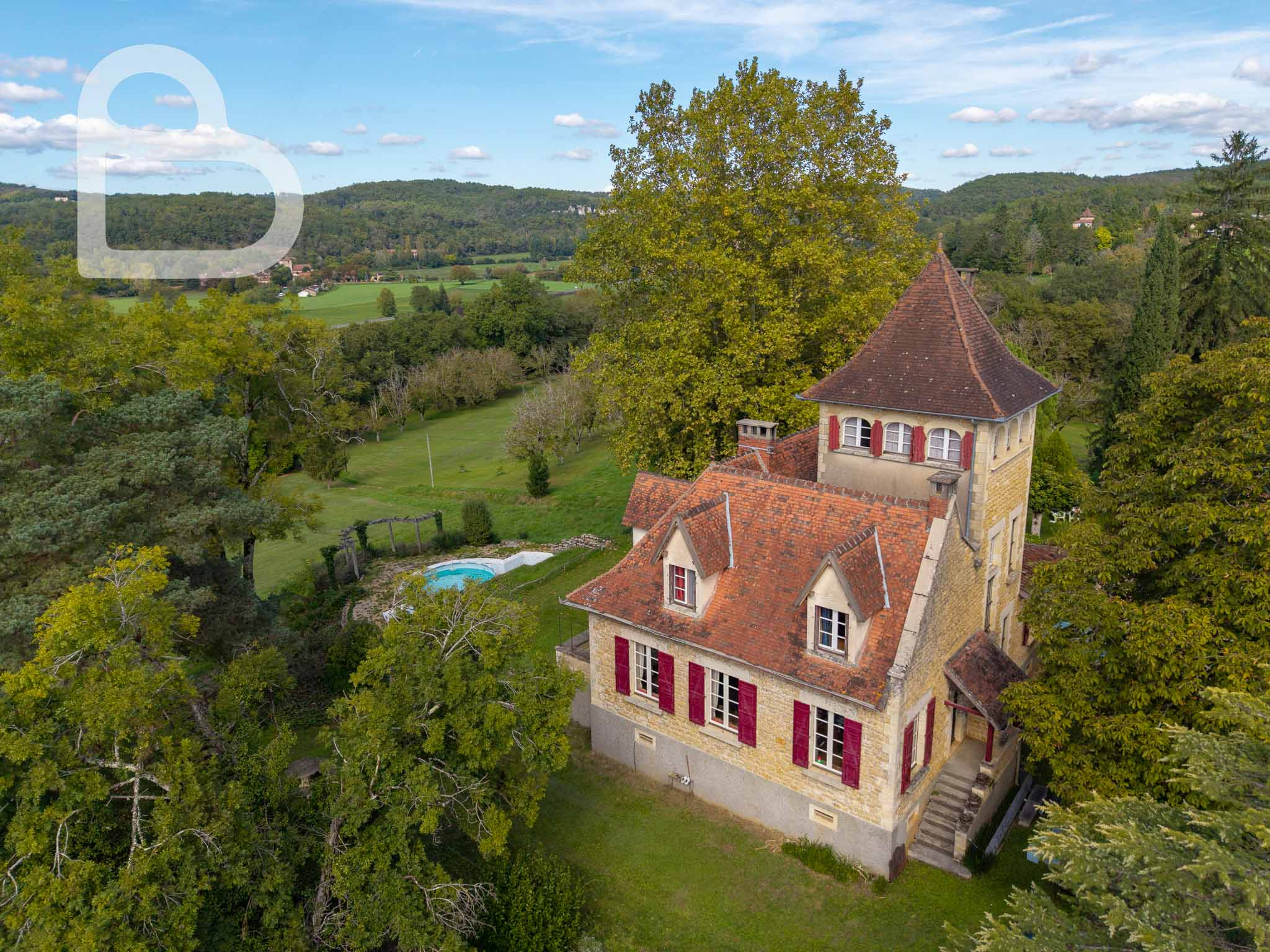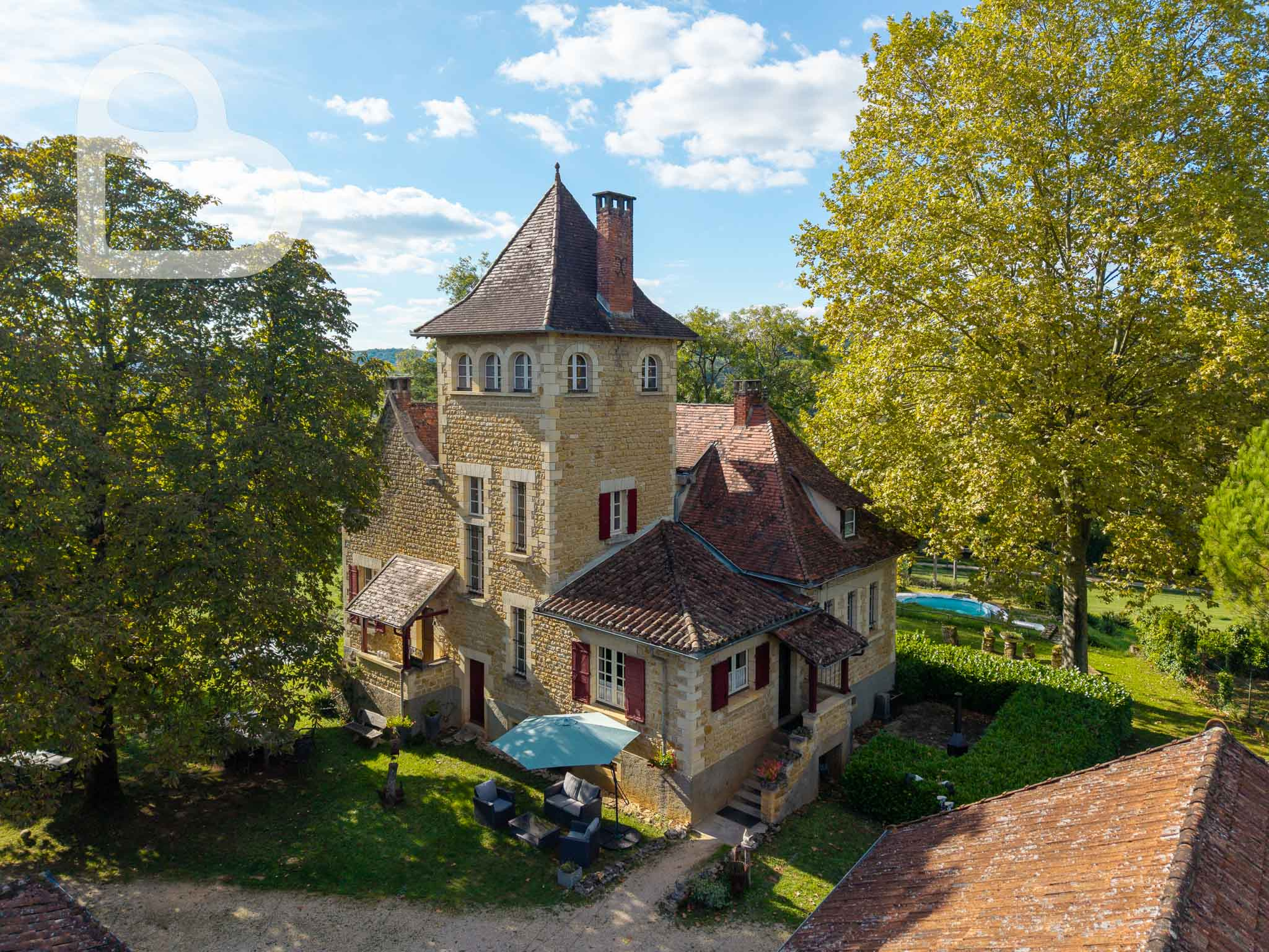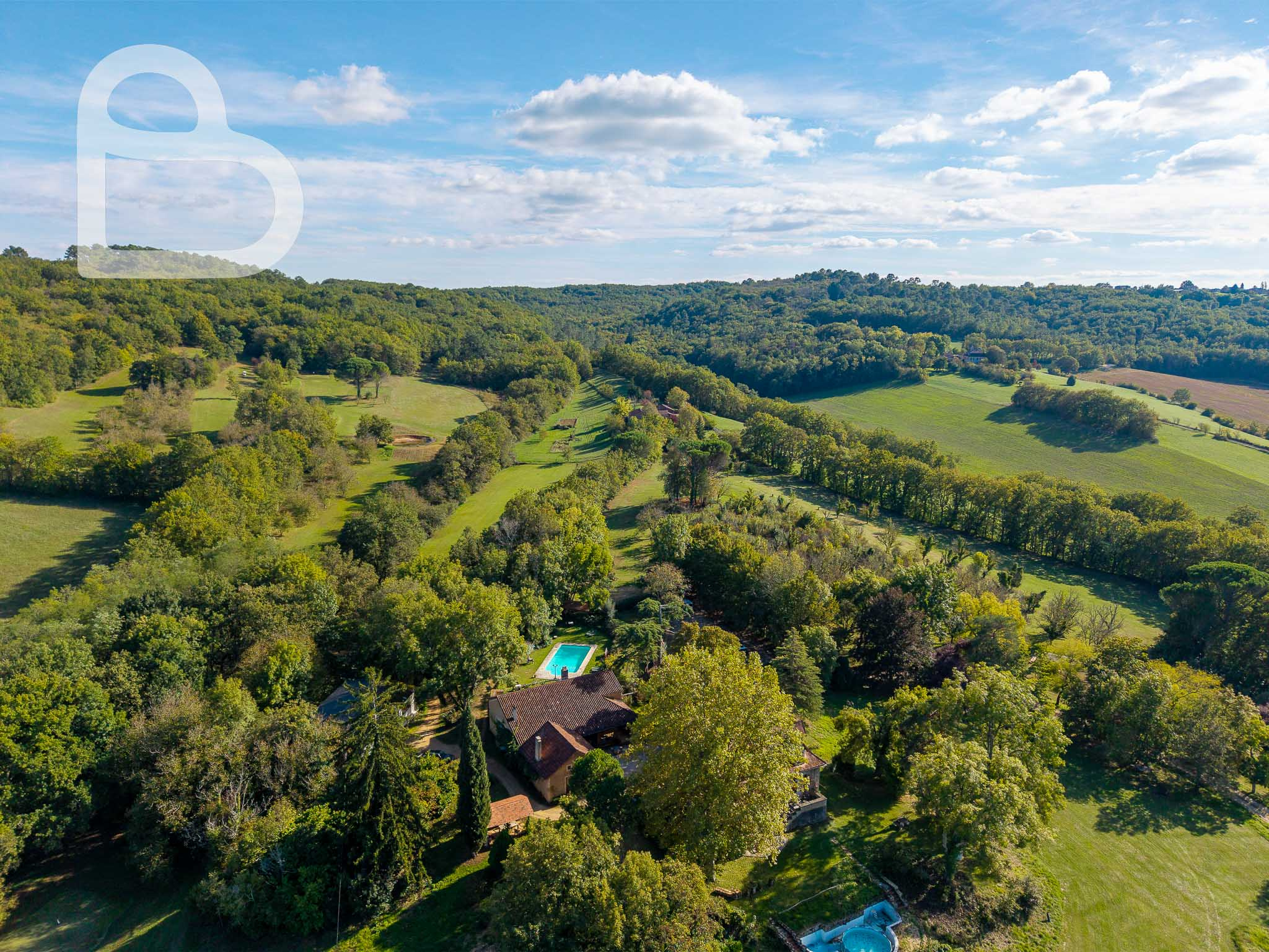 Ce remarquable domaine, situé à la croisée du Lot, du Lot-et-Garonne et de la Dordogne, est accessible par une allée privée. Il offre calme, espace et vues dégagées sur la campagne environnante.