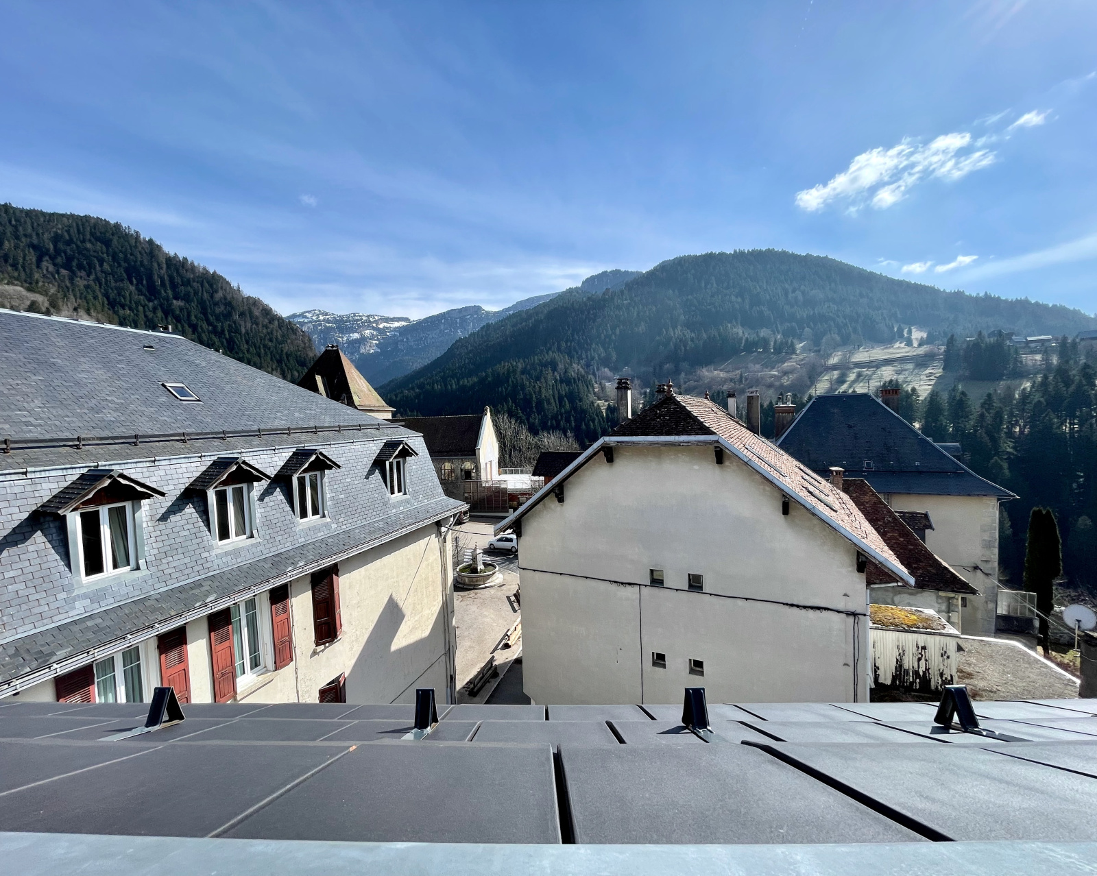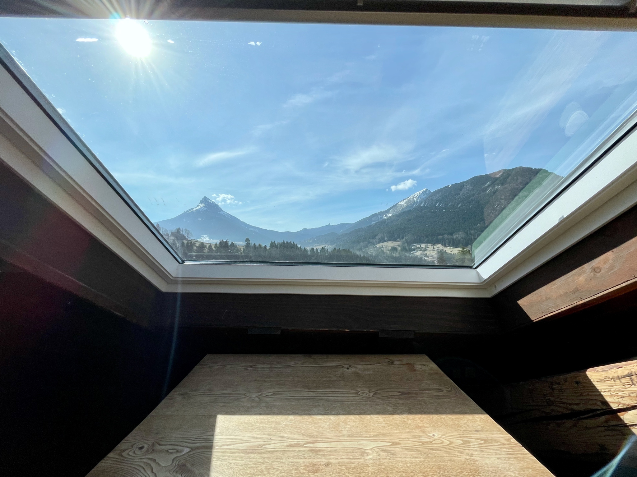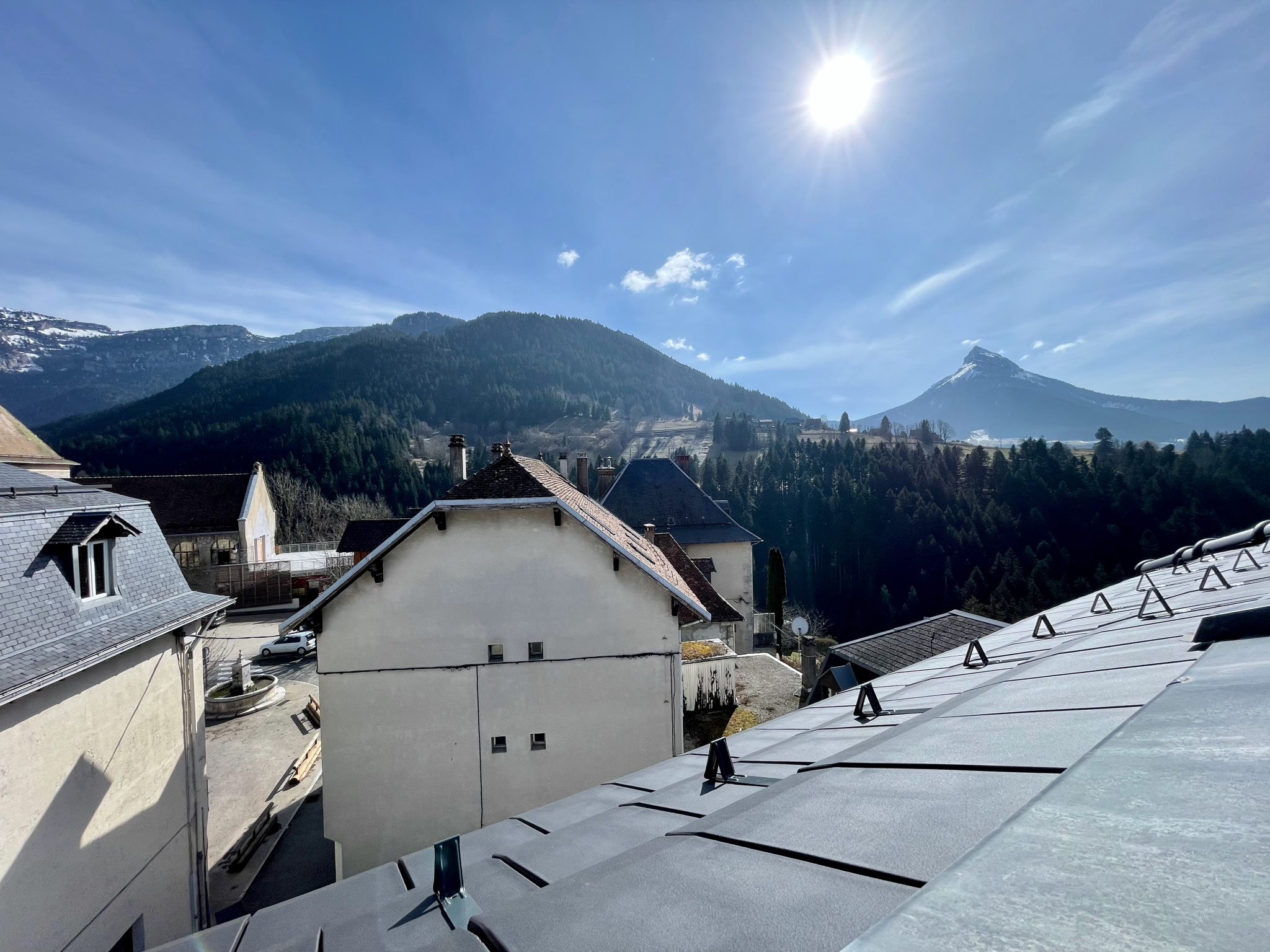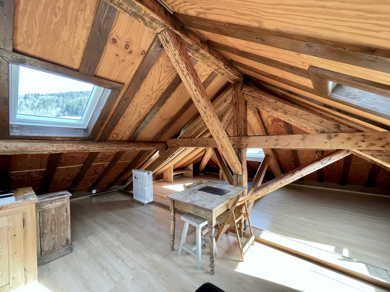 Beaucoup de charme pour ce studio en duplex au dernier étage - très lumineux - 7 fenêtres de toit - charpente apparente - vieux bois - vue dégagée à 360 degrés sur les sommets environnants