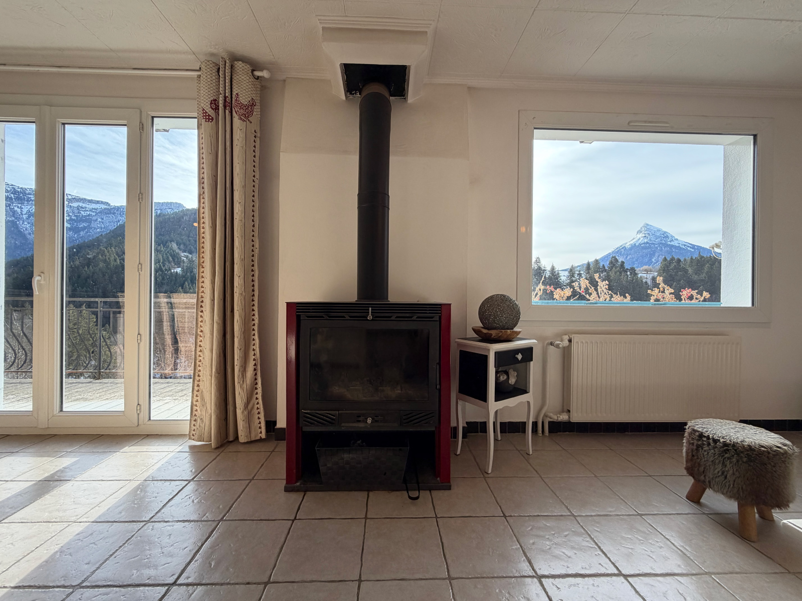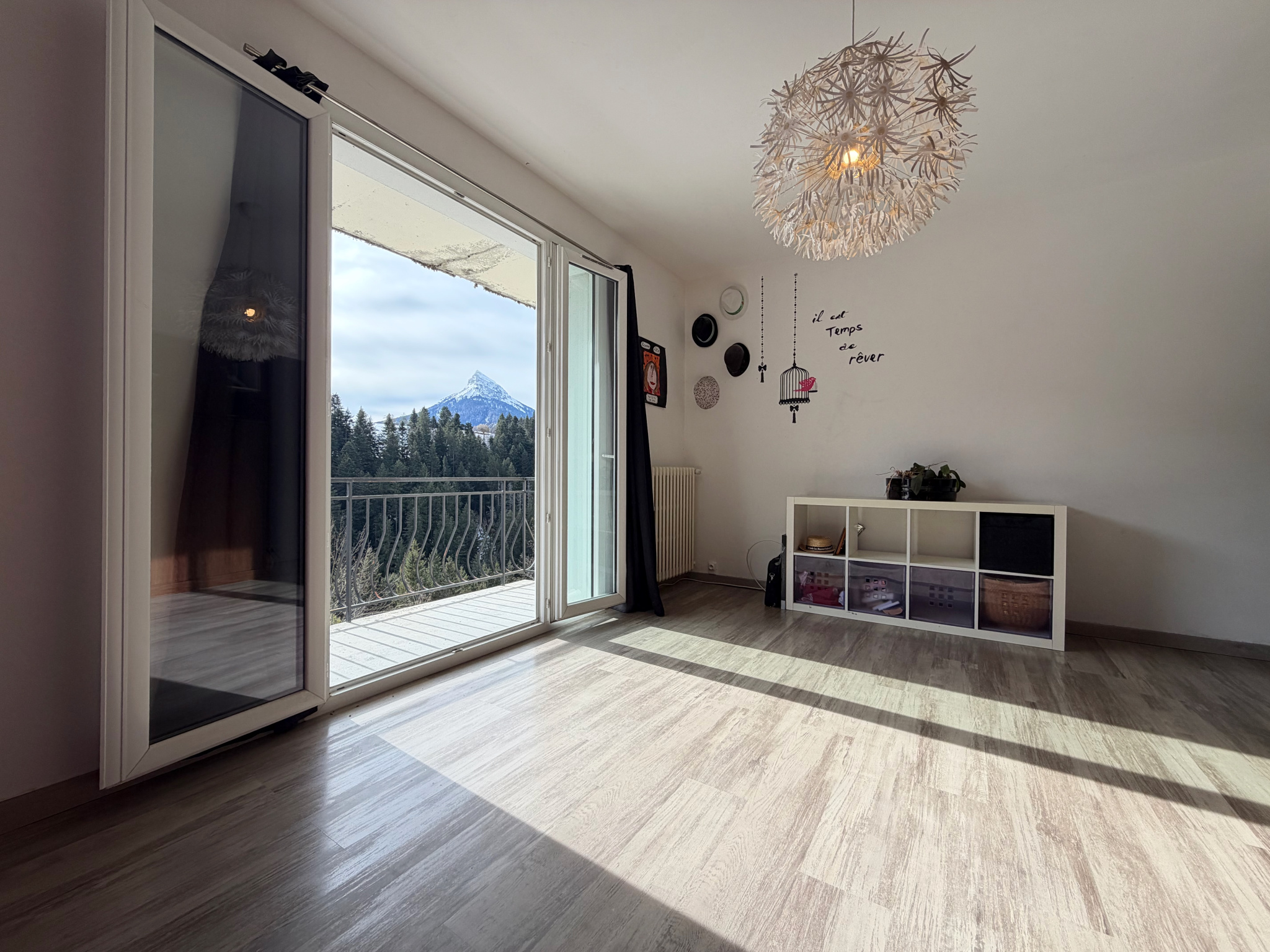 - Pièce de vie (28,2 m2) avec accès sur le grand balcon et sa terrasse abritée