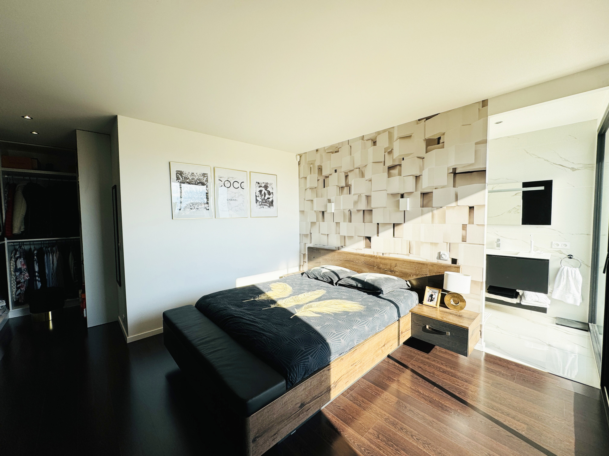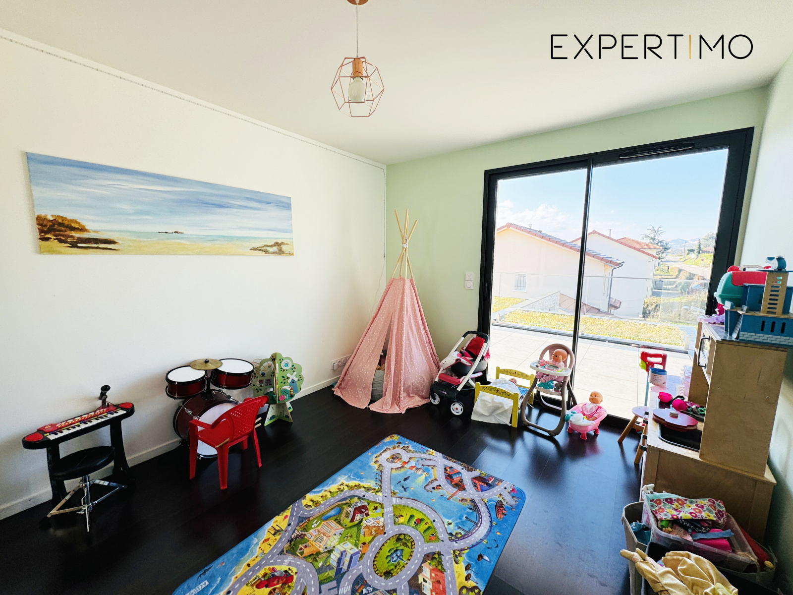 À l’étage un grand couloir dessert 3 grandes chambres lumineuses toutes équipées de rangements donnant sur une terrasse ainsi qu’une grande salle de bain comprenant douche à l’italienne et baignoire intégralement équipé.