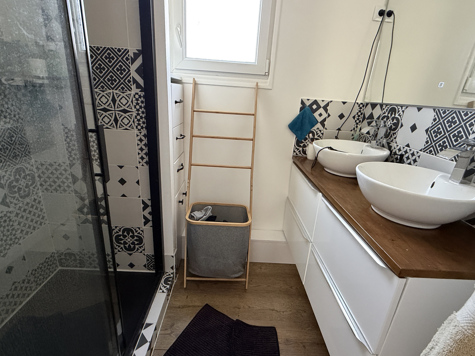 La maison propose une vie de plain-pied avec une suite parentale disposant de sa salle d’eau et de placards. Sur ce même niveau, vous trouverez également trois autres chambres, une salle d’eau indépendante, un toilette séparé ainsi qu’un espace buanderie.