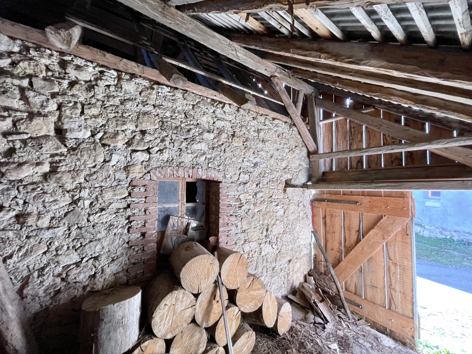 Hangar attenant, à l’arrière de la maison (porte au niveau de la route) - beau potentiel d’aménagement