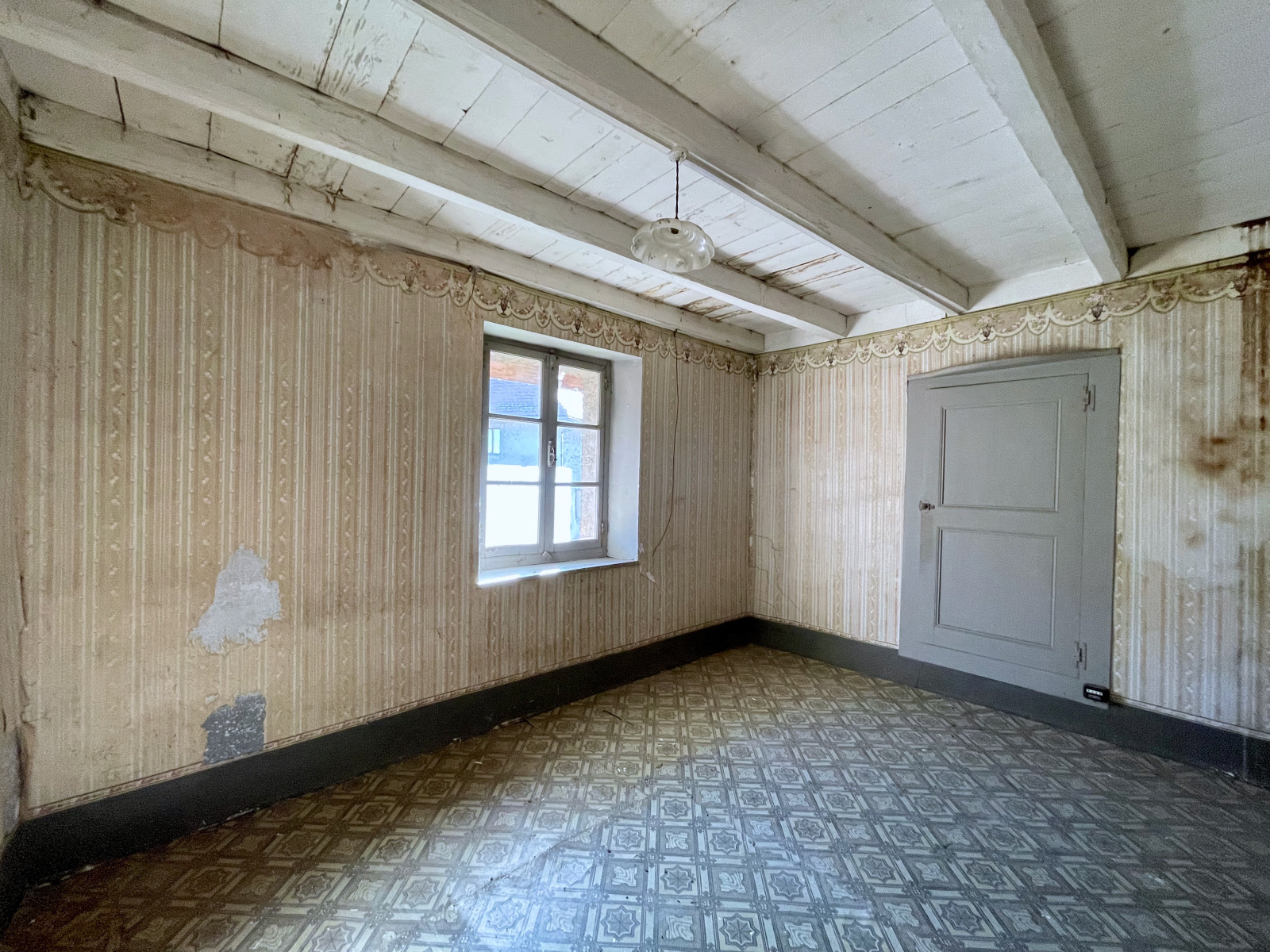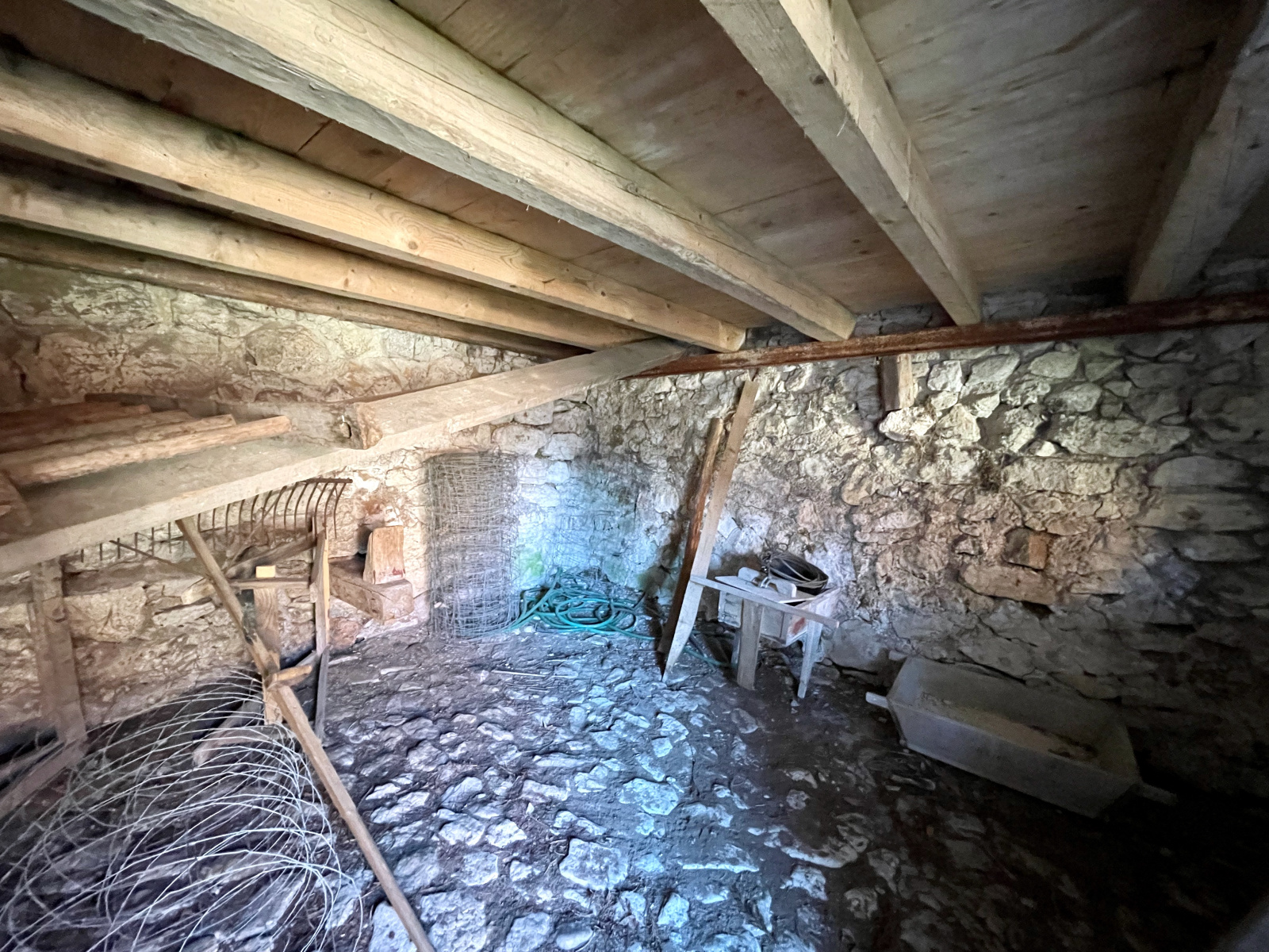 - RDC (env. 40 m2 habitable - HS Plafond 2,4 m) - répartis en 2 pièces (cuisine 21,5 m2 et séjour 19 m2) + Atelier à aménager (31 m2) avec mezzanine (14 m2)