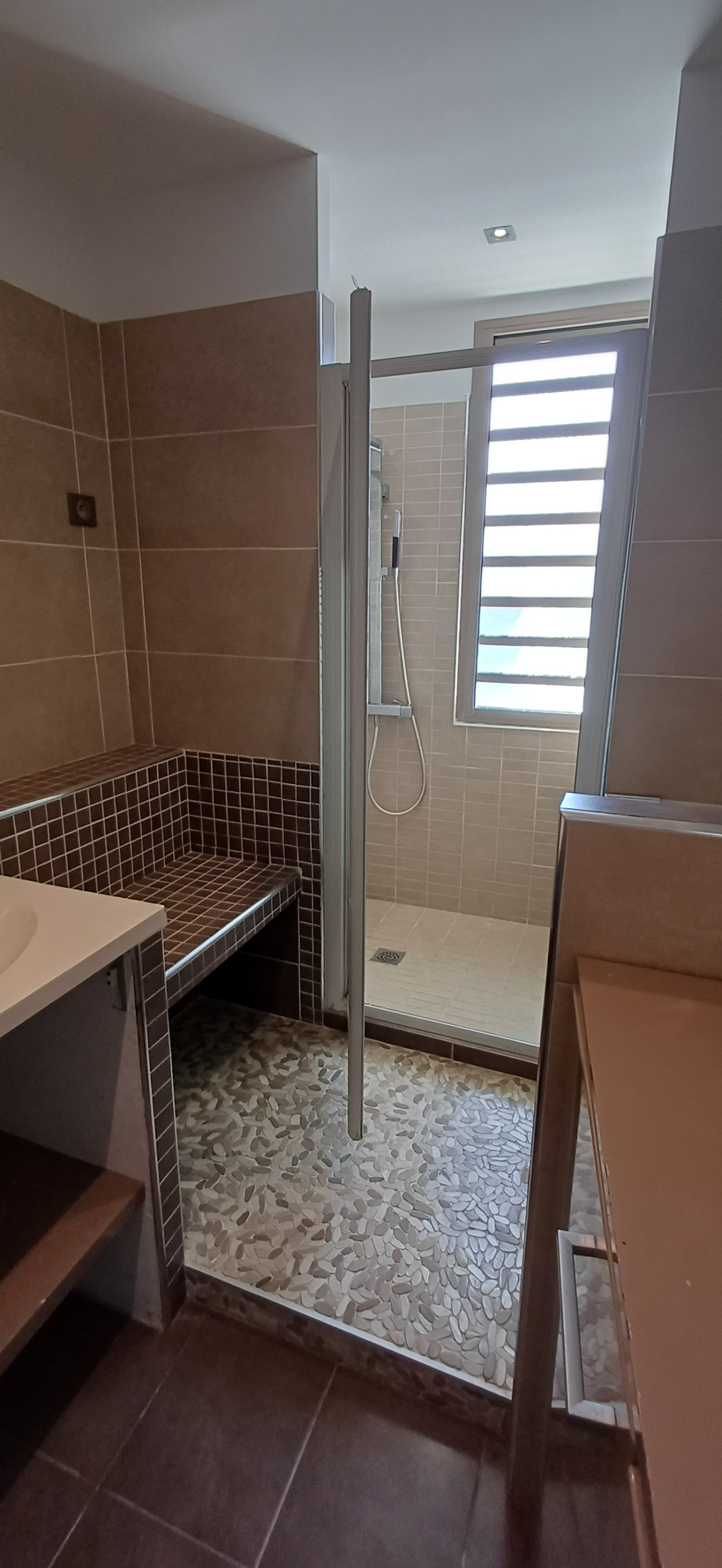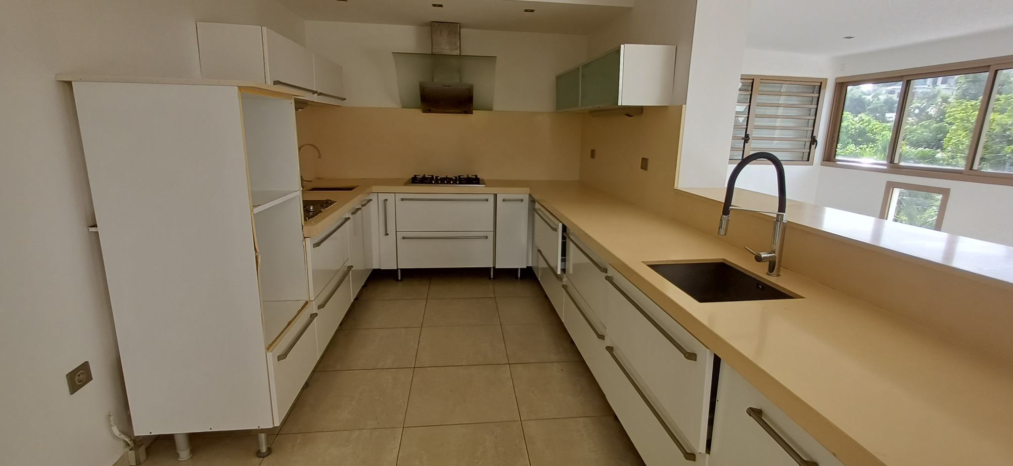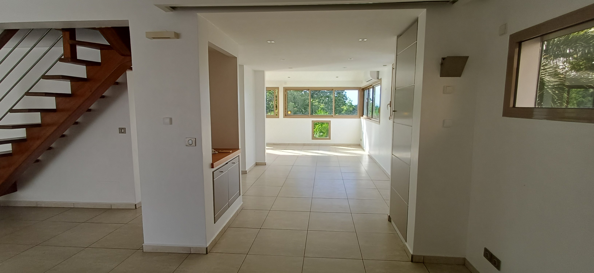 Vous trouverez au rez-de chaussée un triple séjour climatisée , une cuisine toute équipée, 1 coin wc avec lave-main