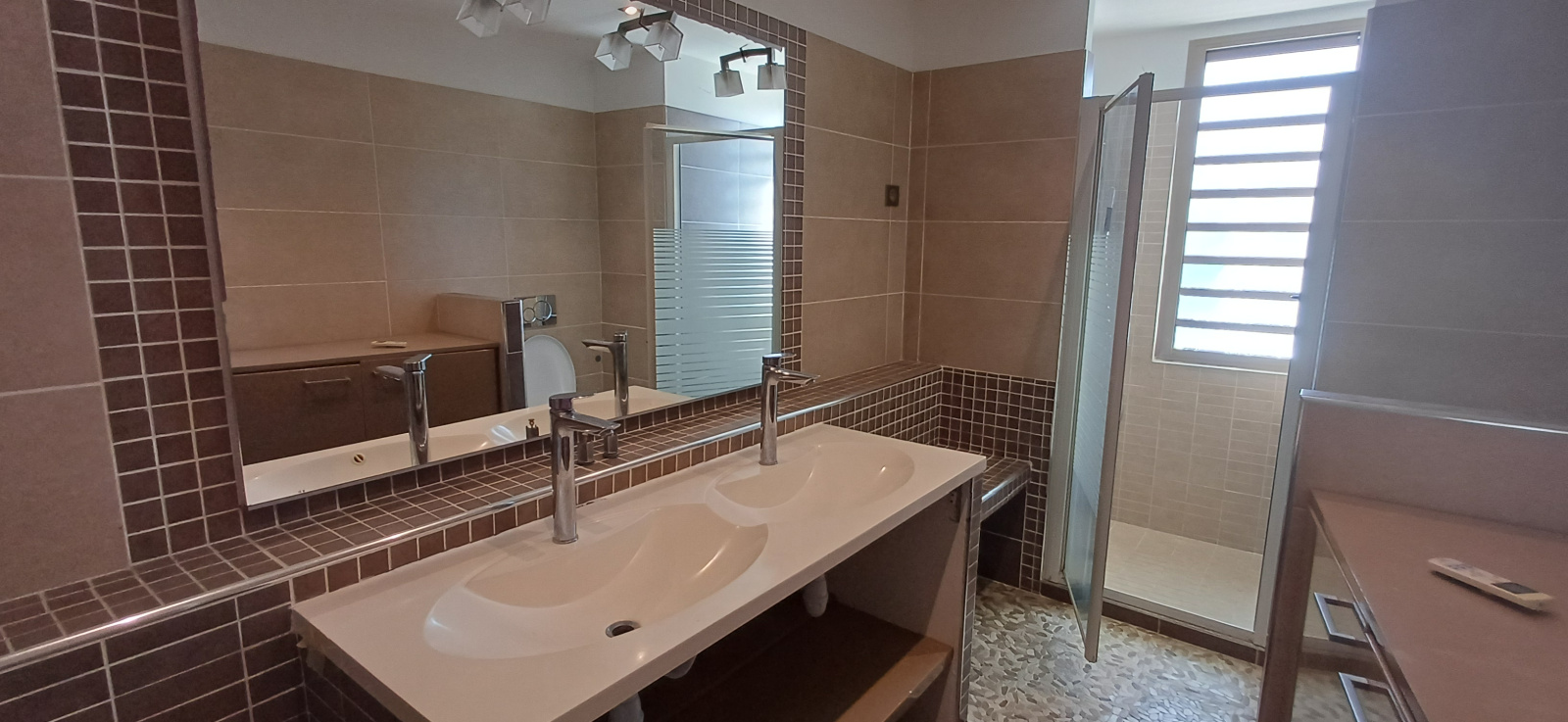 Au rez-de-jardin : 1 buanderie -1 grand séjour climatisé - 2 chambres climatisées - dressing - 1 salle d'eau avec wc