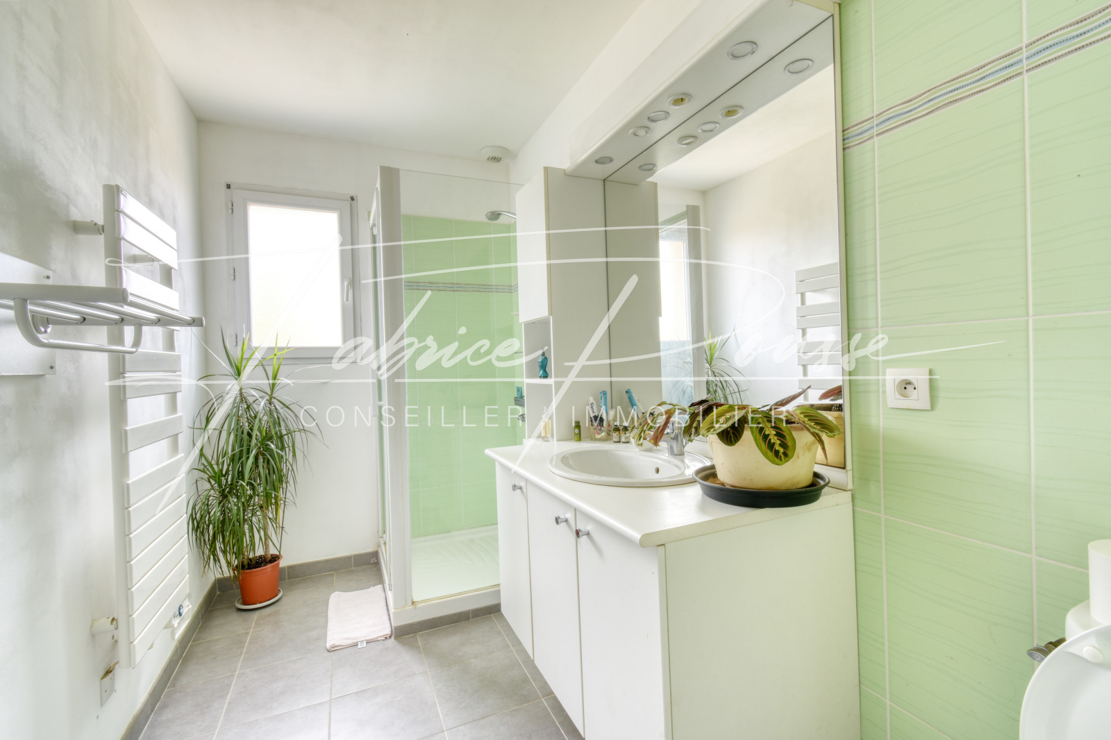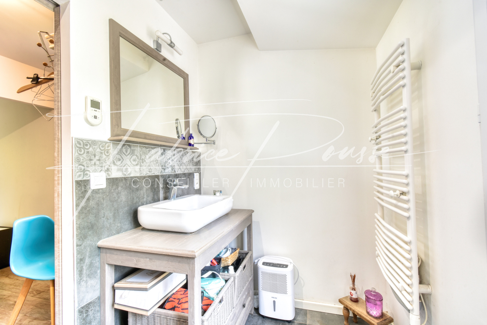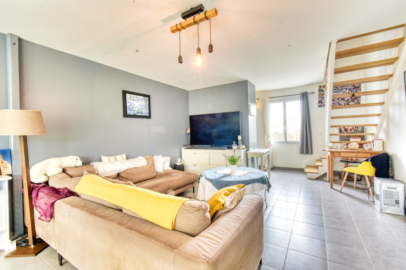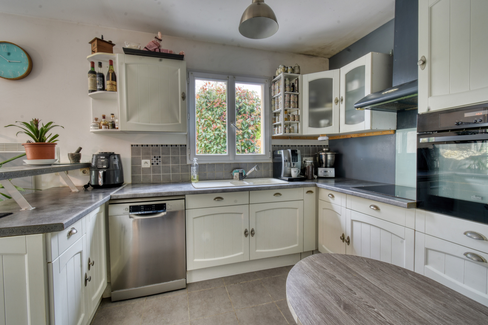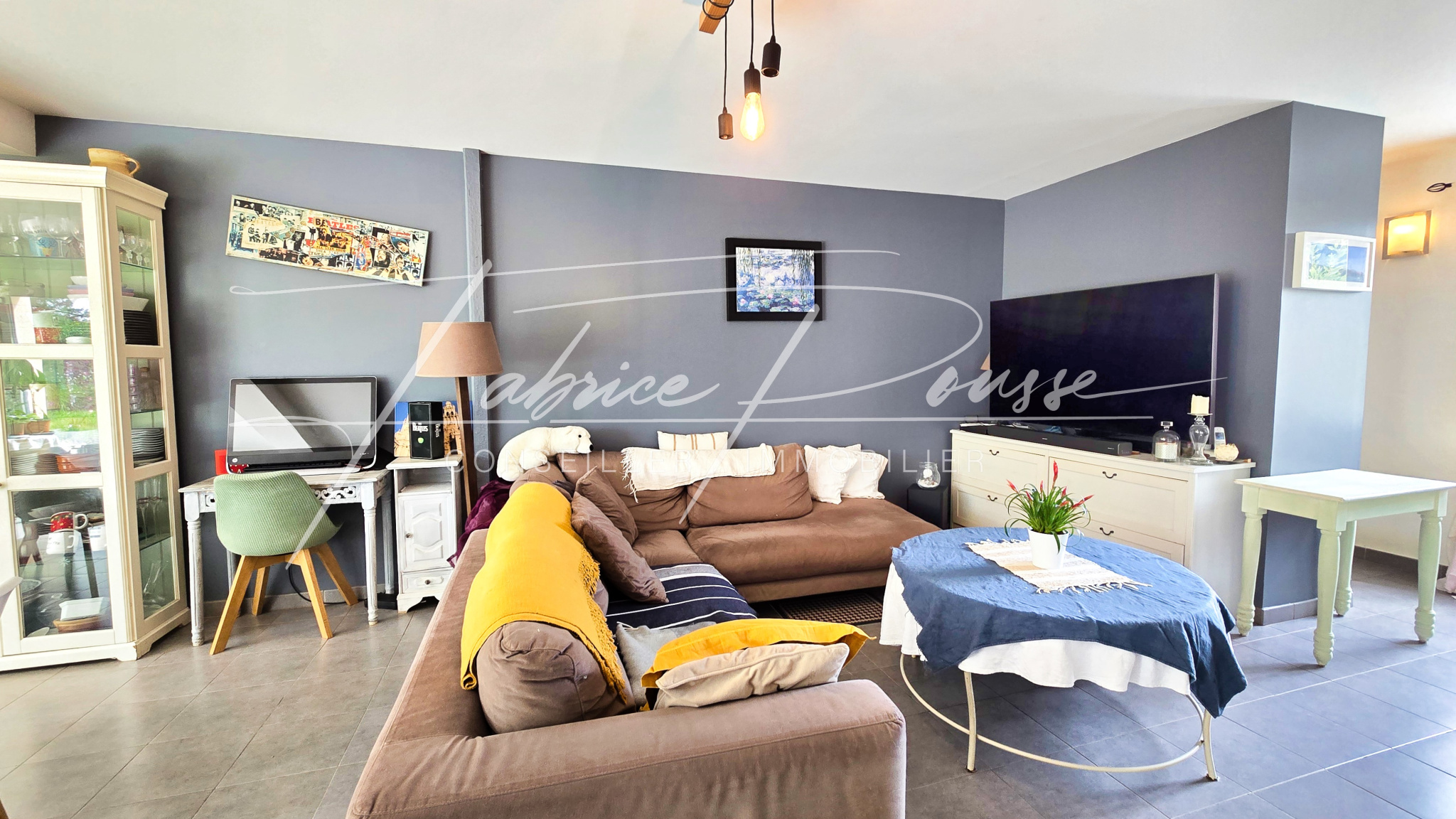 Une fois l'entrée dépacée, vous allez découvrir la pièce de vie d'environ 38m2 lumineuse avec ses deux baies. Cuisine ouverte de 10m2 donnat sur une petite buanderie.