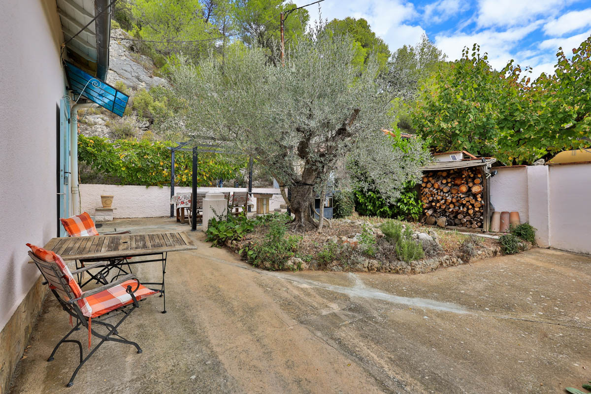La propriété est nichée contre la falaise, elle se trouve à proximité des grottes troglodytes. Vous pouvez vous rendre à pied au village ou faire l'une des nombreuses balades. Dans le jardin, vous trouverez de beaux arbres comme un olivier de 400 ans. Au niveau inférieur, il y a une zone gazonnée, avec la possibilité d'installer une piscine. Il y a également un chalet en bois avec électricité qui peut être utilisé comme une chambre d'appoint pour les invités. Le jardin est entièrement clôturé.