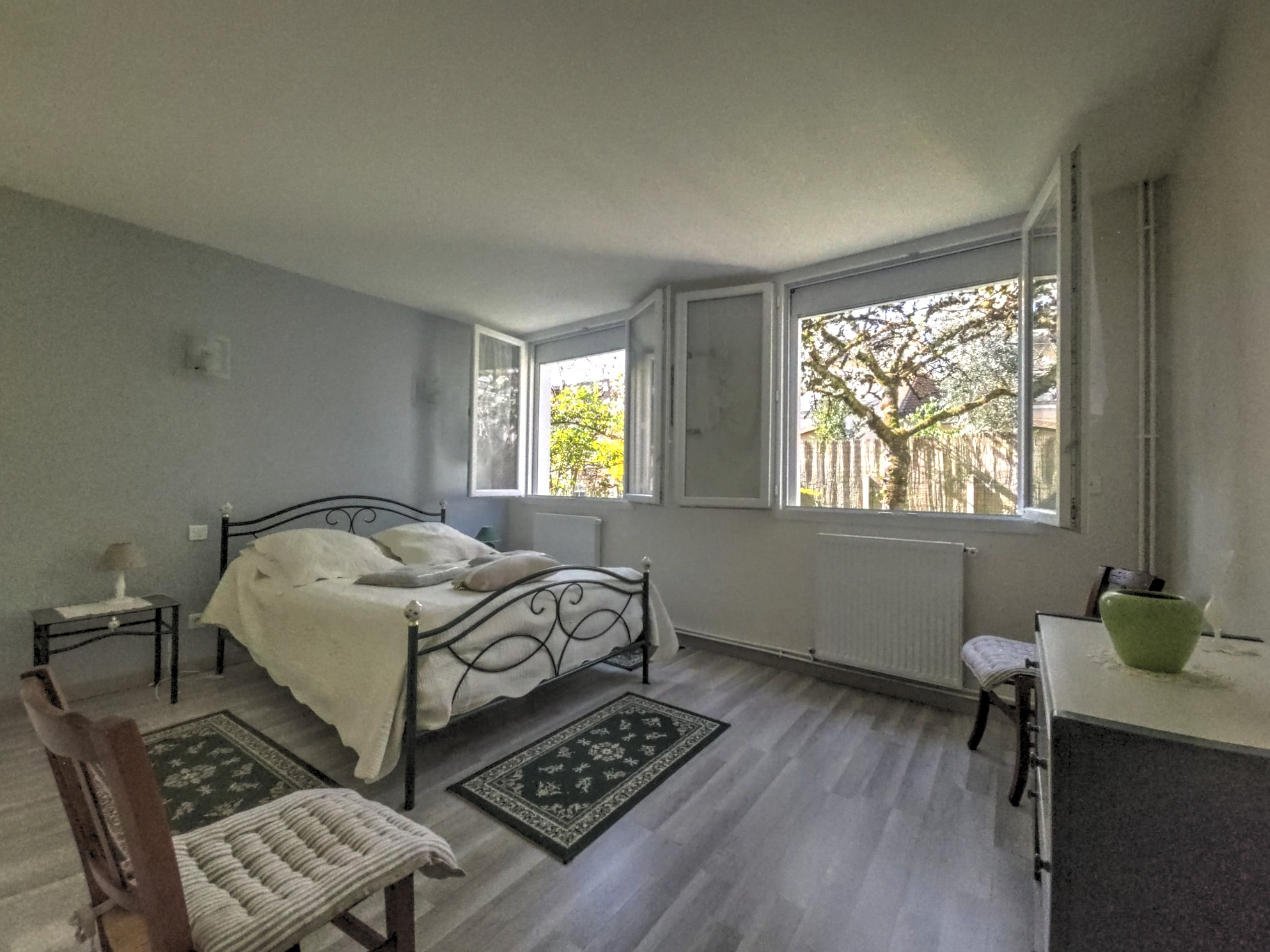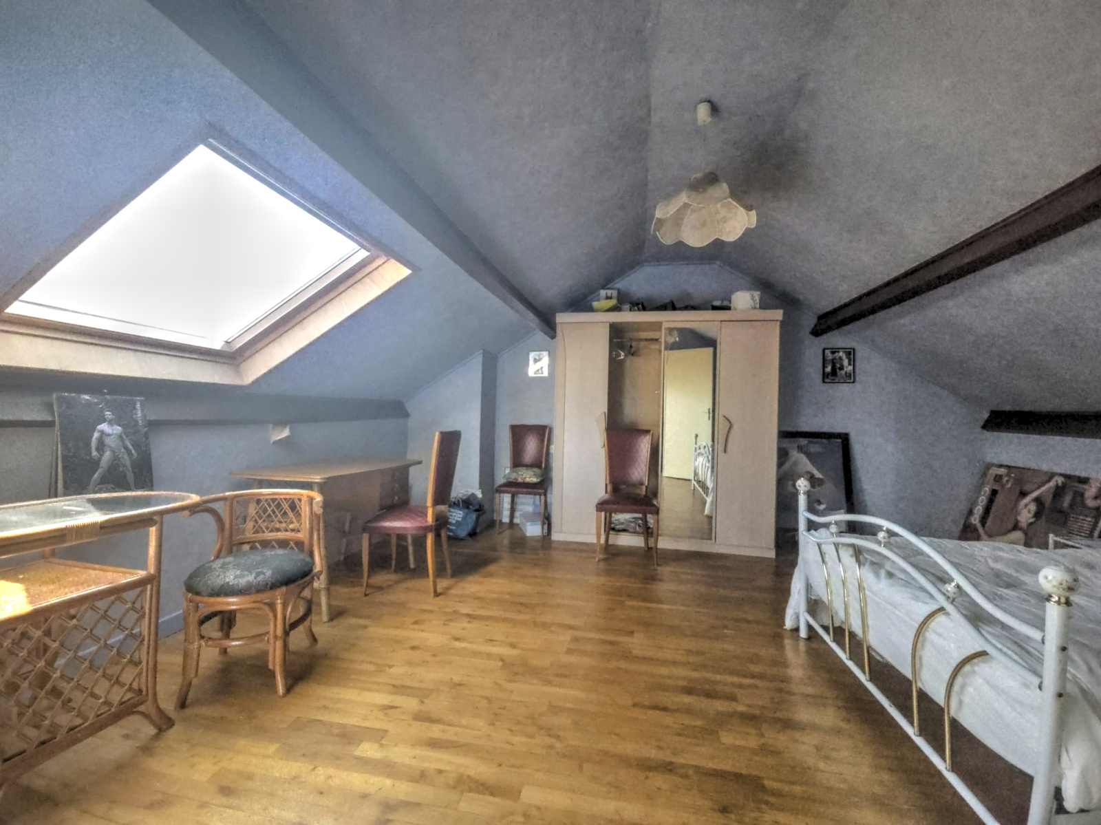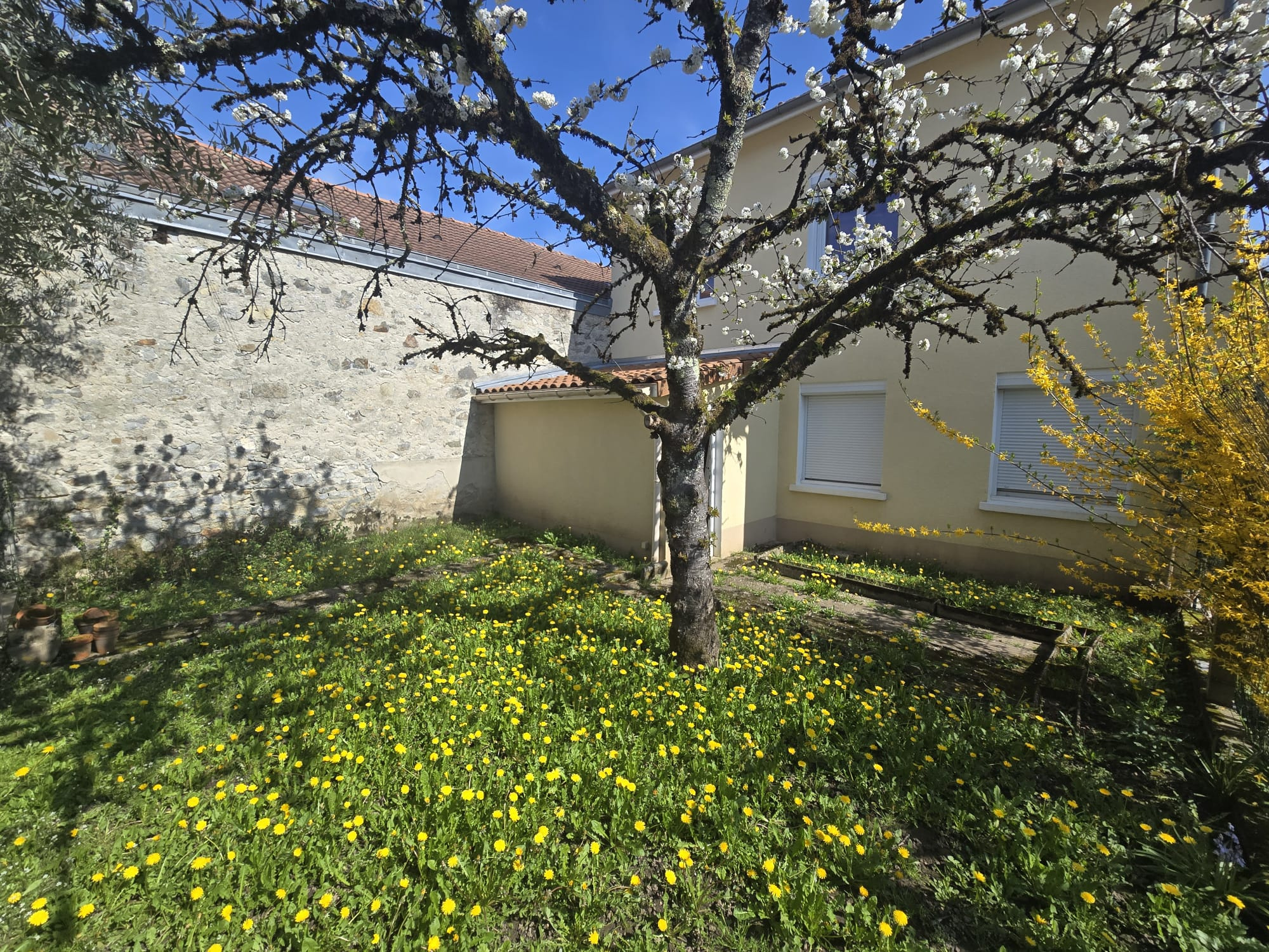 À l’étage, le séjour et la cuisine offrent des espaces lumineux et agréables. Ce niveau dispose également d’une salle d’eau, d’une salle de bain et d’un WC.