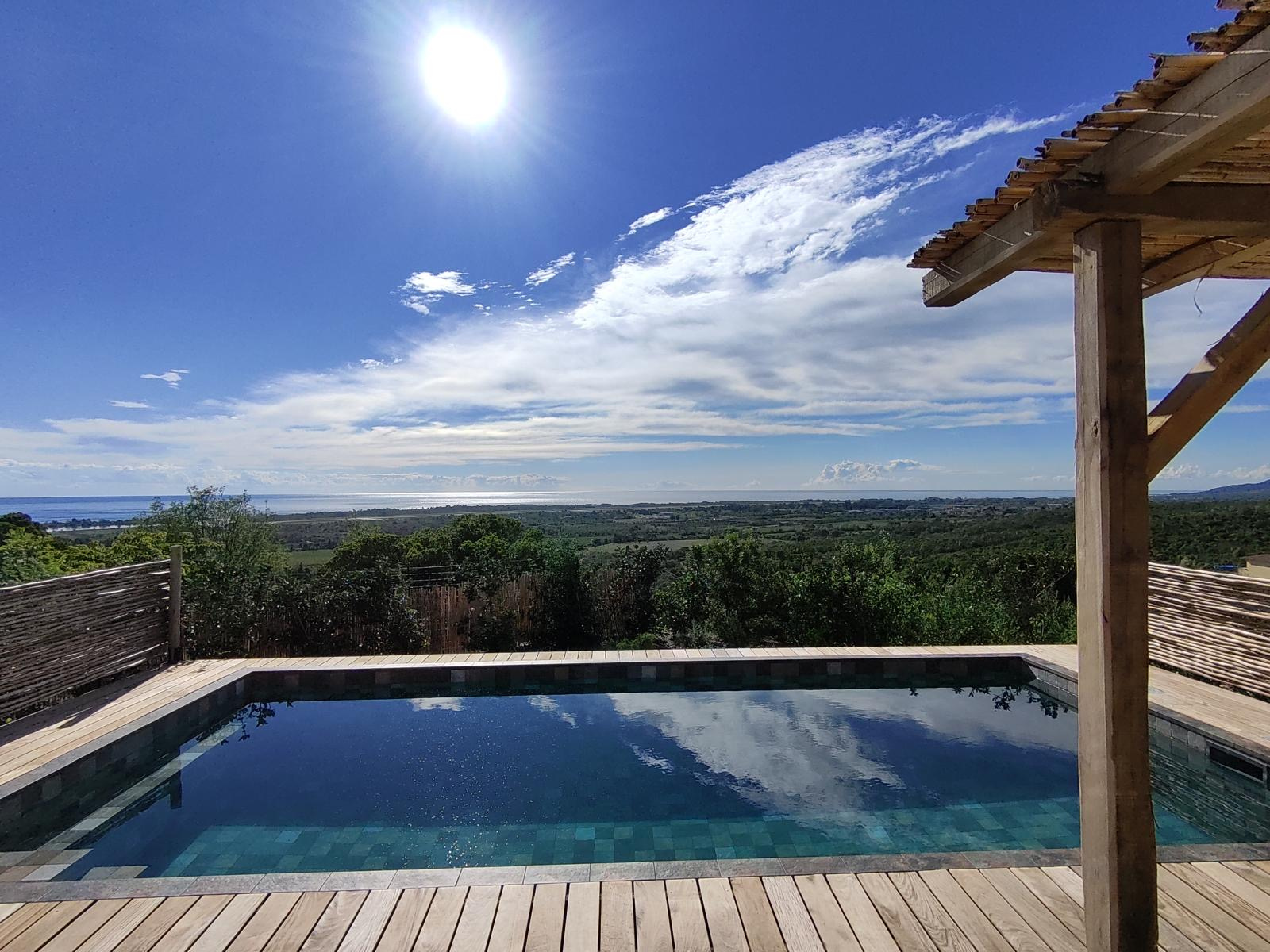 Dans un lieu très calme, a 10 mn de la plage et de toutes les commodités, cette bergerie T4 d’environ 136 m², vous offre une vue sur la mer, une piscine et des prestations de hautes qualités.