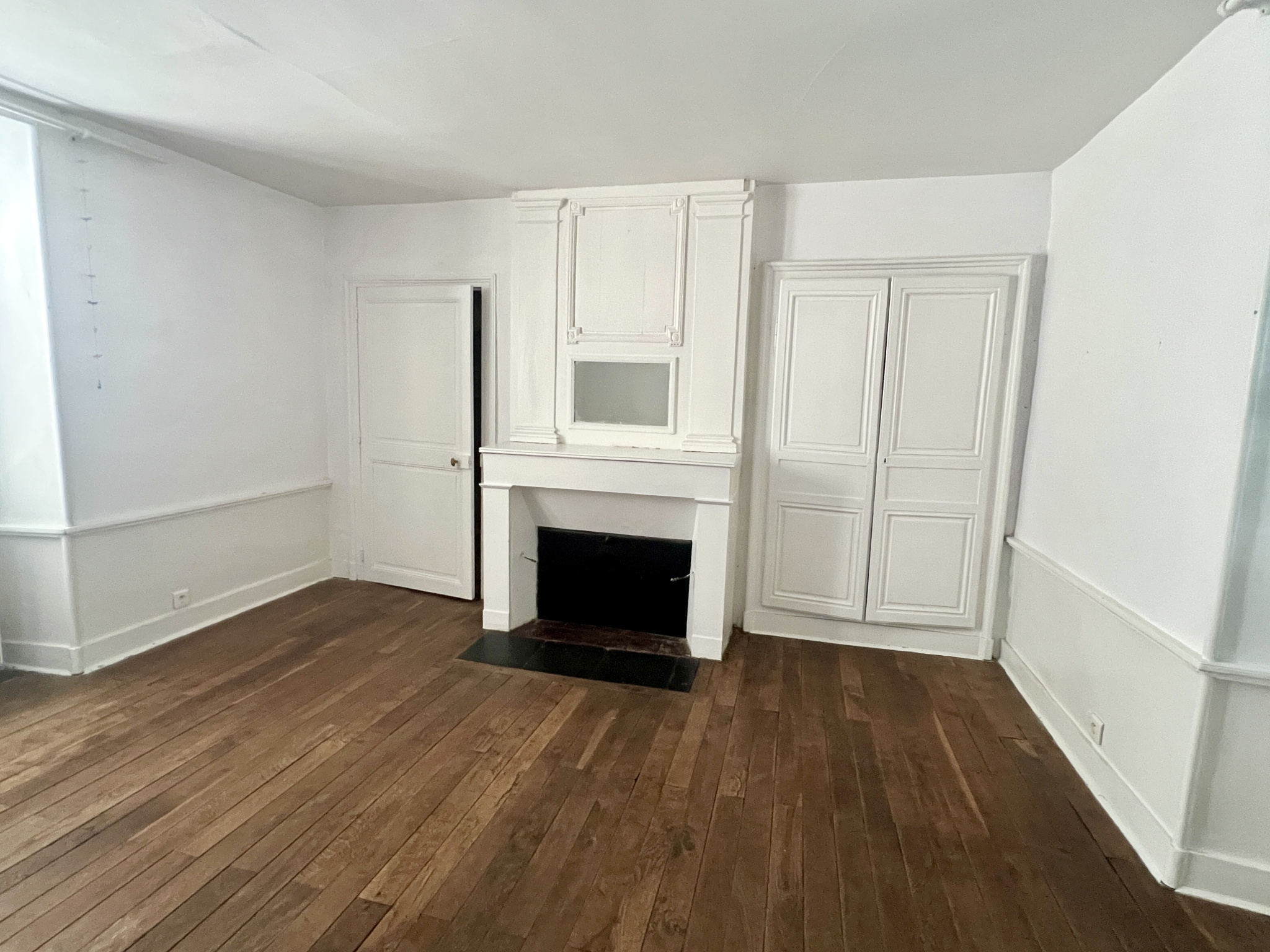 Espace de réception : un salon surélevé avec plancher bois et cheminée, mais également une salle à manger de caractère, elle aussi dotée d'une cheminée.