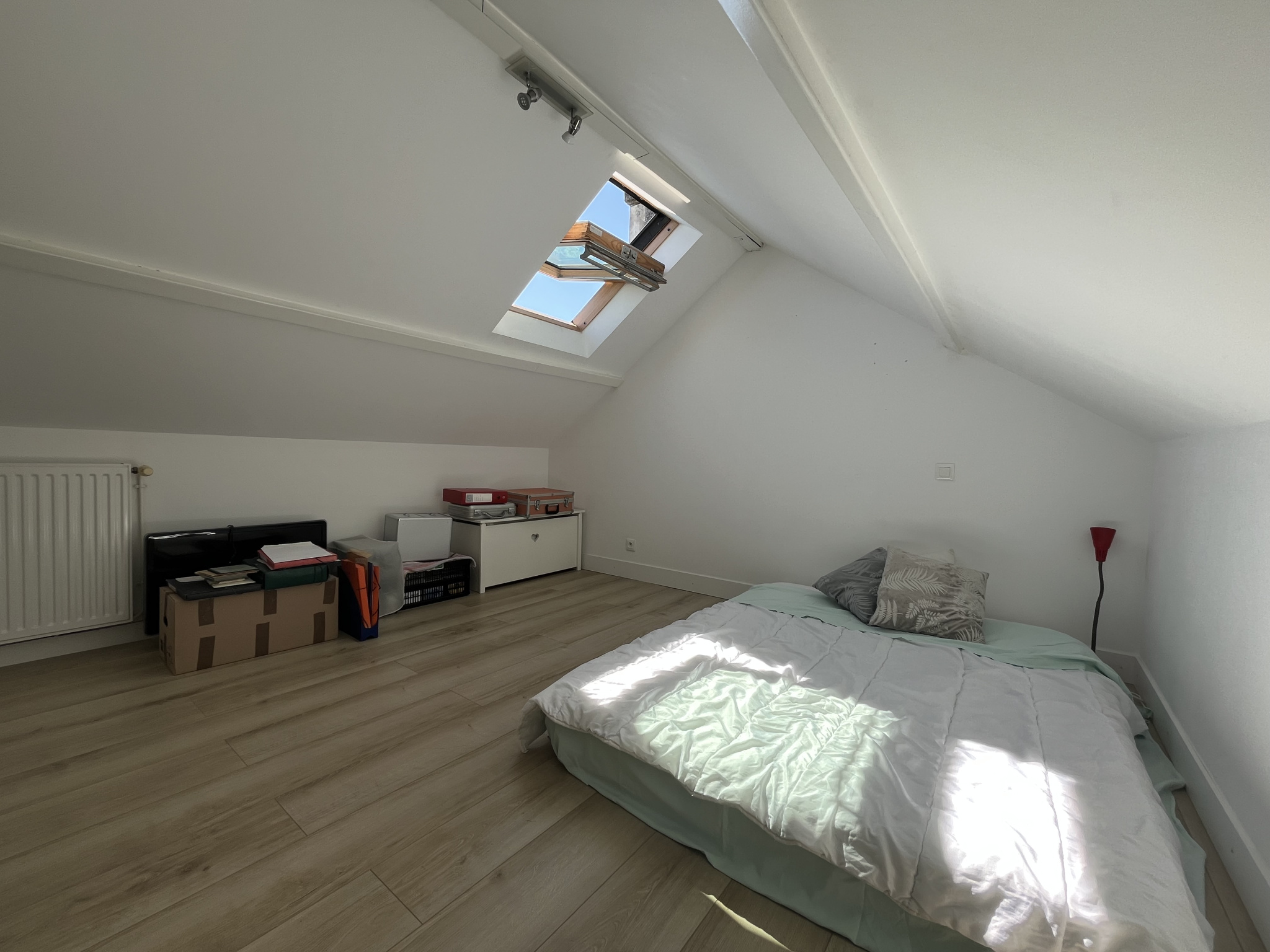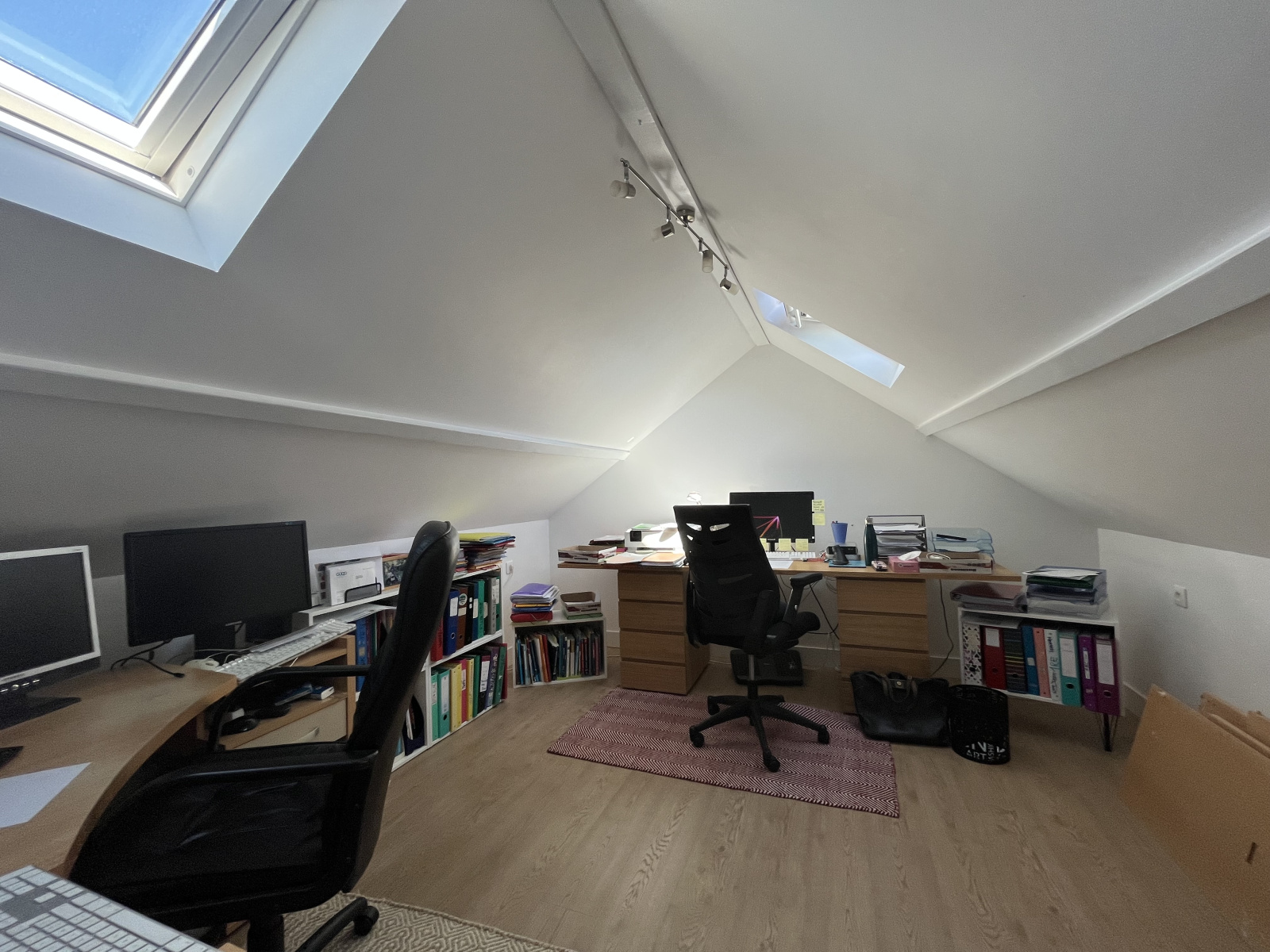 Au 2ème étage mansardé, 2 Chambres ou Bureaux de 13 m2 au sol, avec Velux neufs de 2023. Présence d'une Cave très saine avec Sol en pierres.