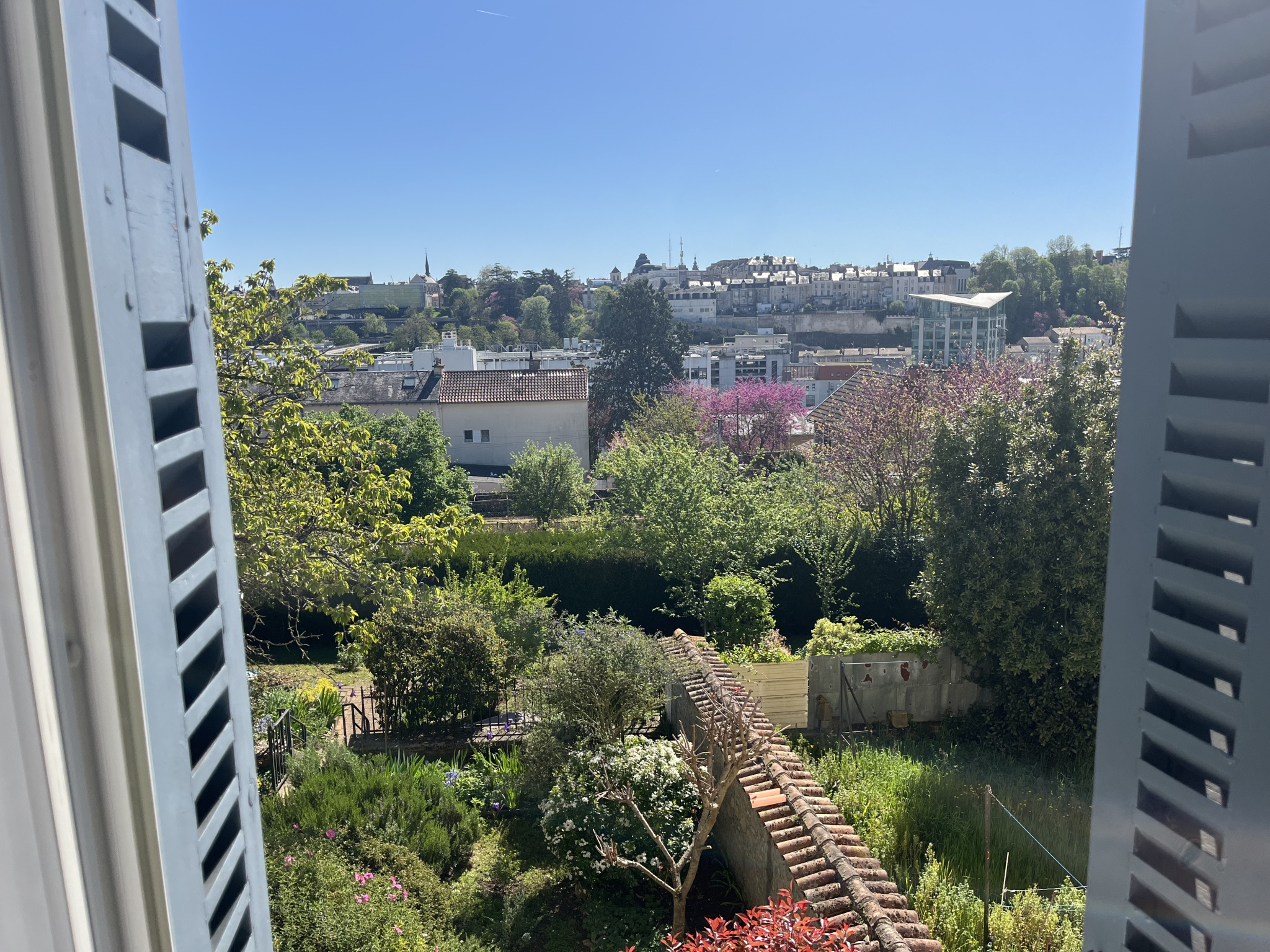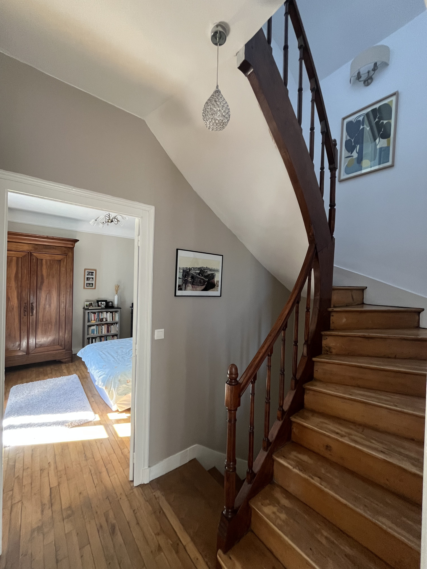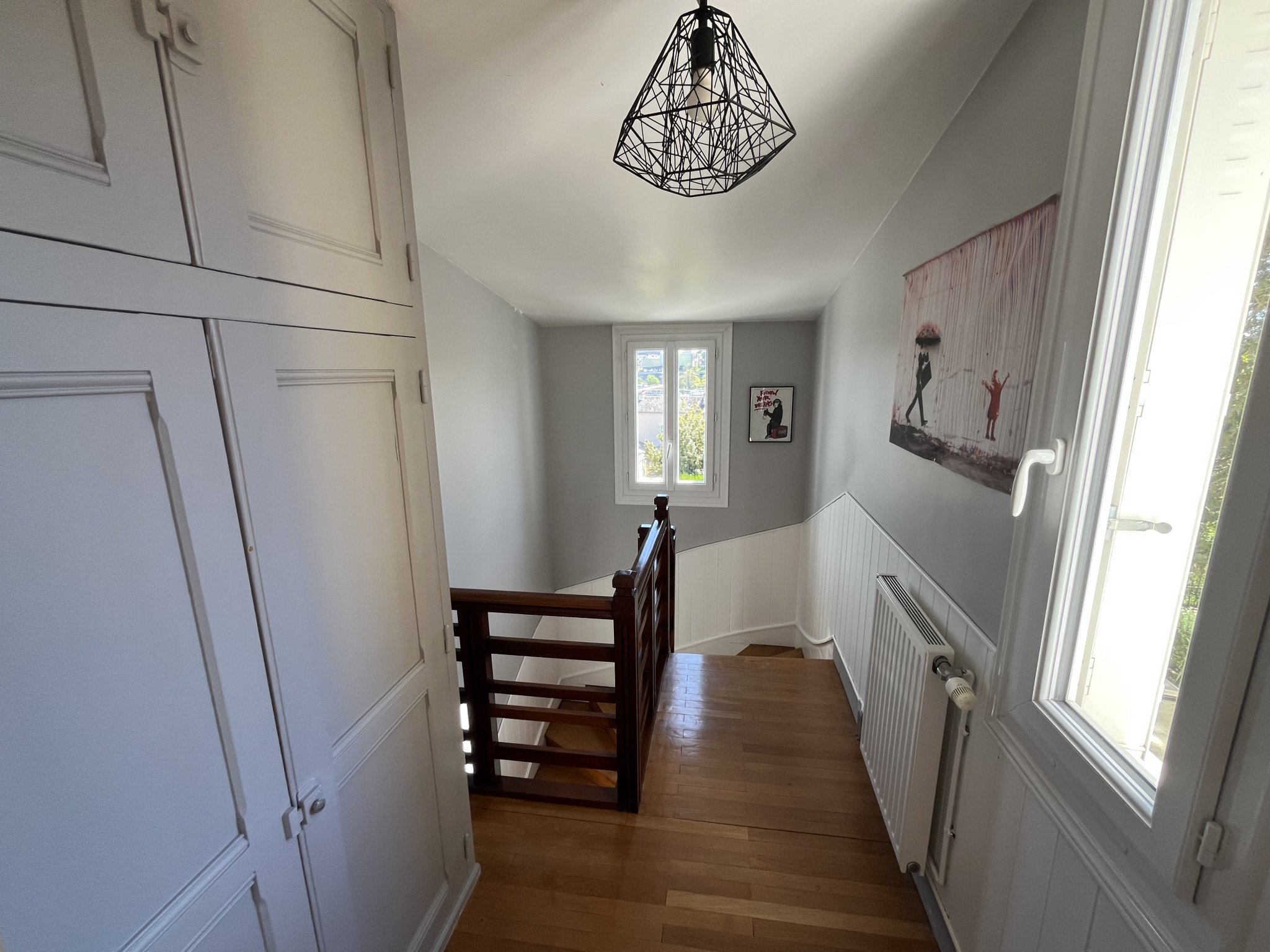 Deux escaliers desservent la maison et permettent une circulation indépendante si besoin. Le premier étage se compose de 2 Chambres dont la Parentale de 15 m2 environ avec Parquets massifs en chêne, Cheminée décorative et Vue panoramique sur le centre-ville ! La seconde chambre de 17 m2 dispose d'un petit balcon vue sur le Jardin. Un large couloir agréable et lumineux dessert une Salle d'eau spacieuse et un second WC séparé.