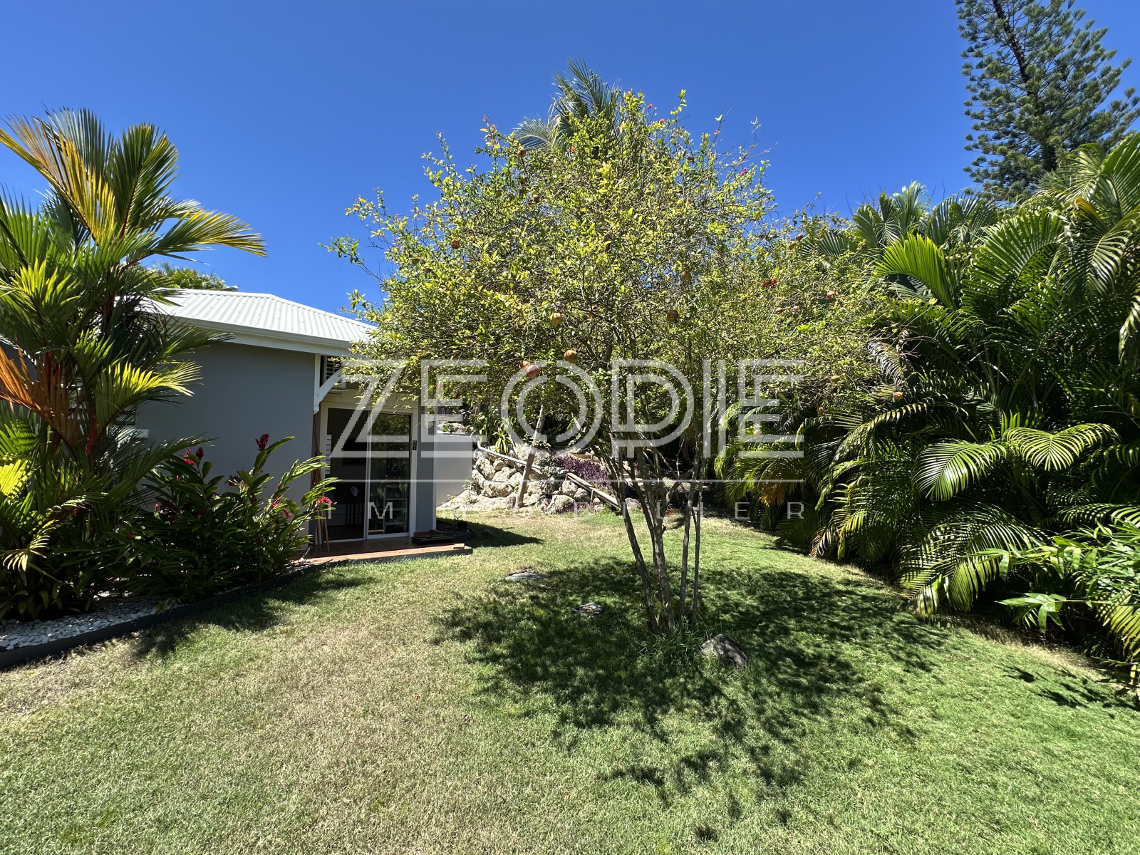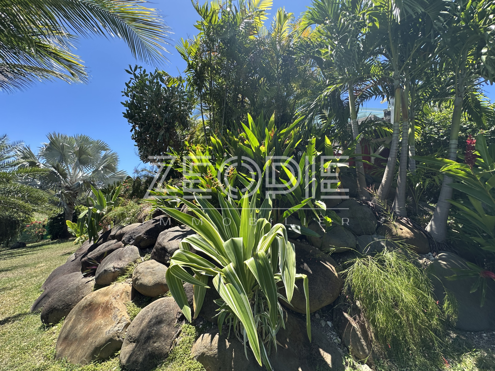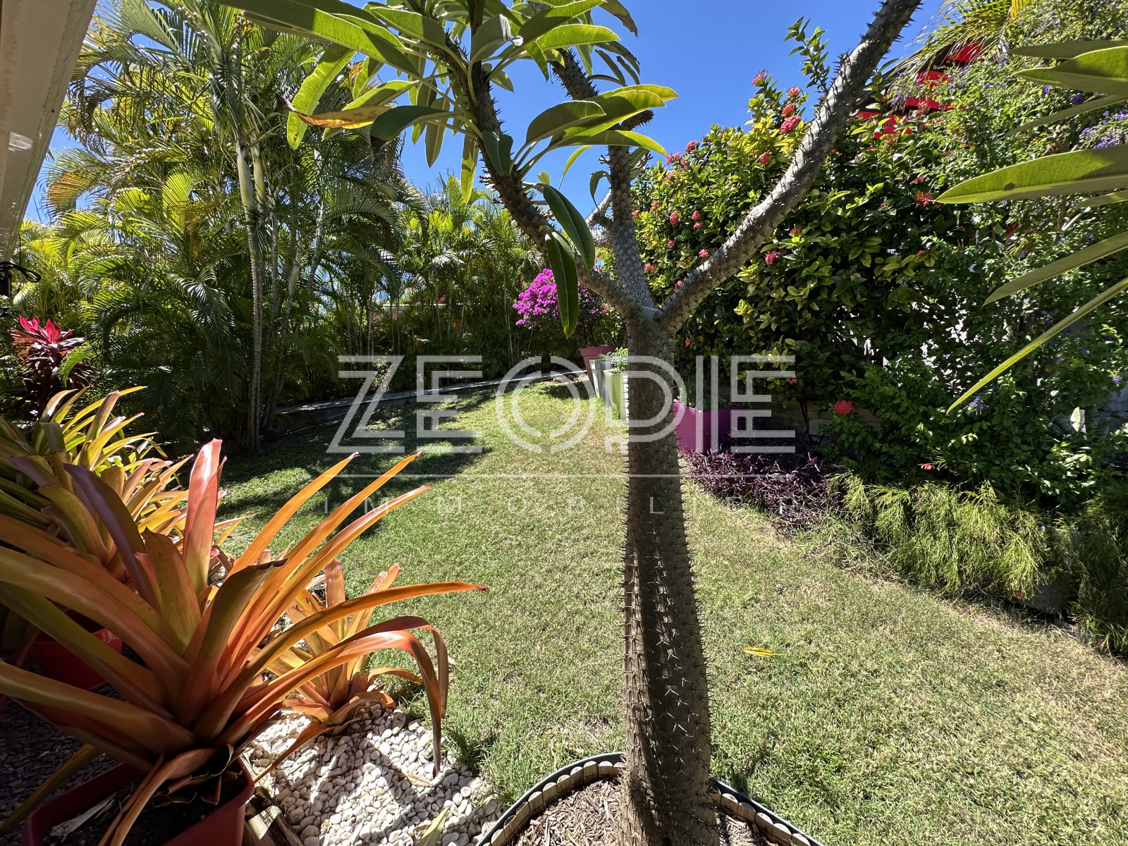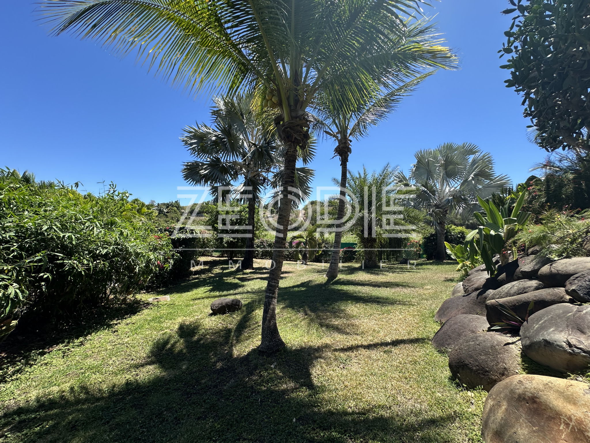 Le bien est situé dans un cadre de carte postale offrant un véritable coin de paradis pour toute la famille avec son parc paysagé et richement arboré comprenant baobab, palmiers bismarks, bougainvilliers...