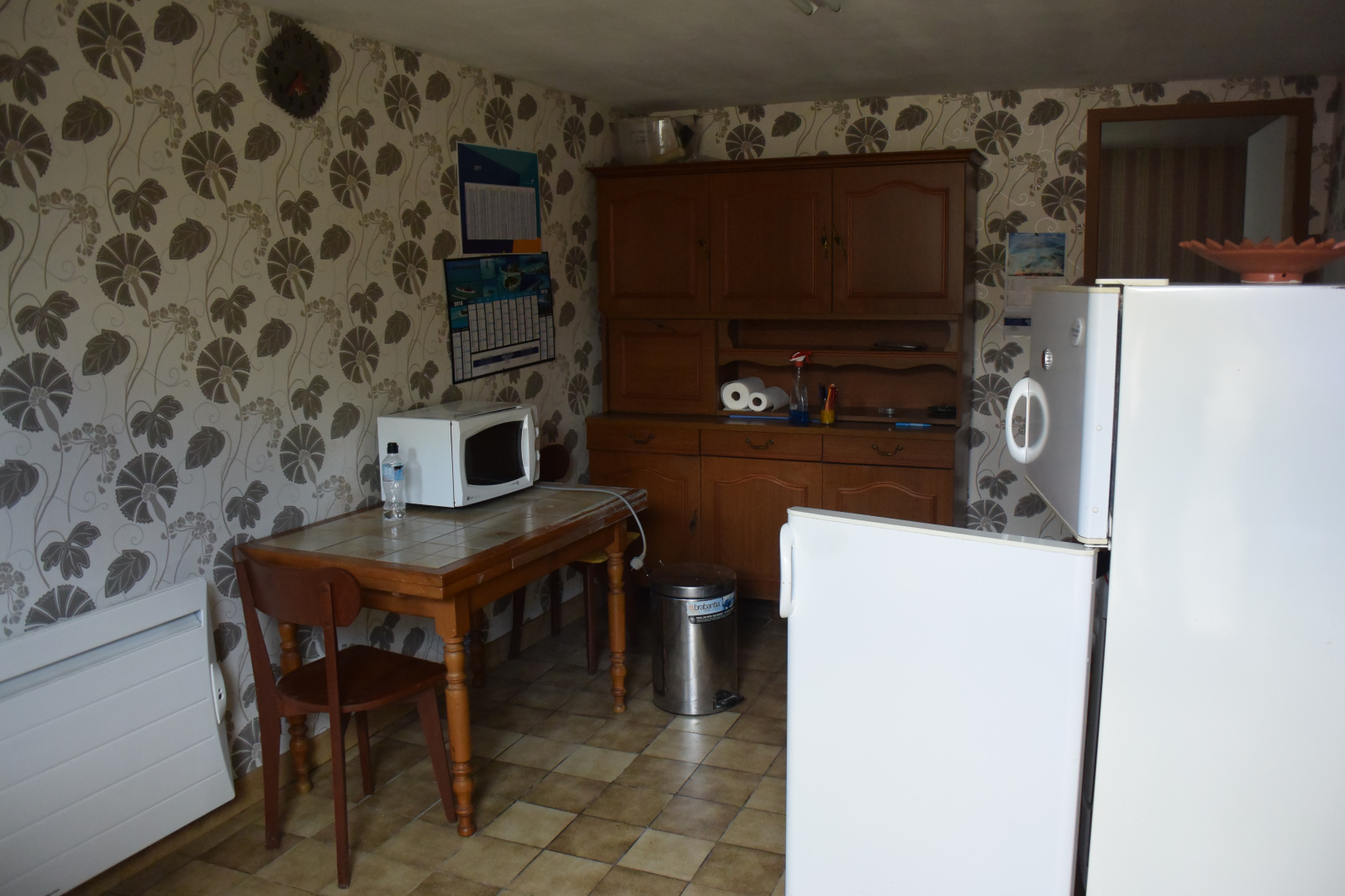 IDEAL POUR PREMIER ACHAT ou INVESTISSEUR LOCATIF, une maison à rénover comprenant: séjour, cuisine, une chambre, salle d'eau et wc. Greniers au-dessus. Remises attenantes et garage. Cour devant, et grand terrain derrière la maison. Gros Travaux à prévoir !