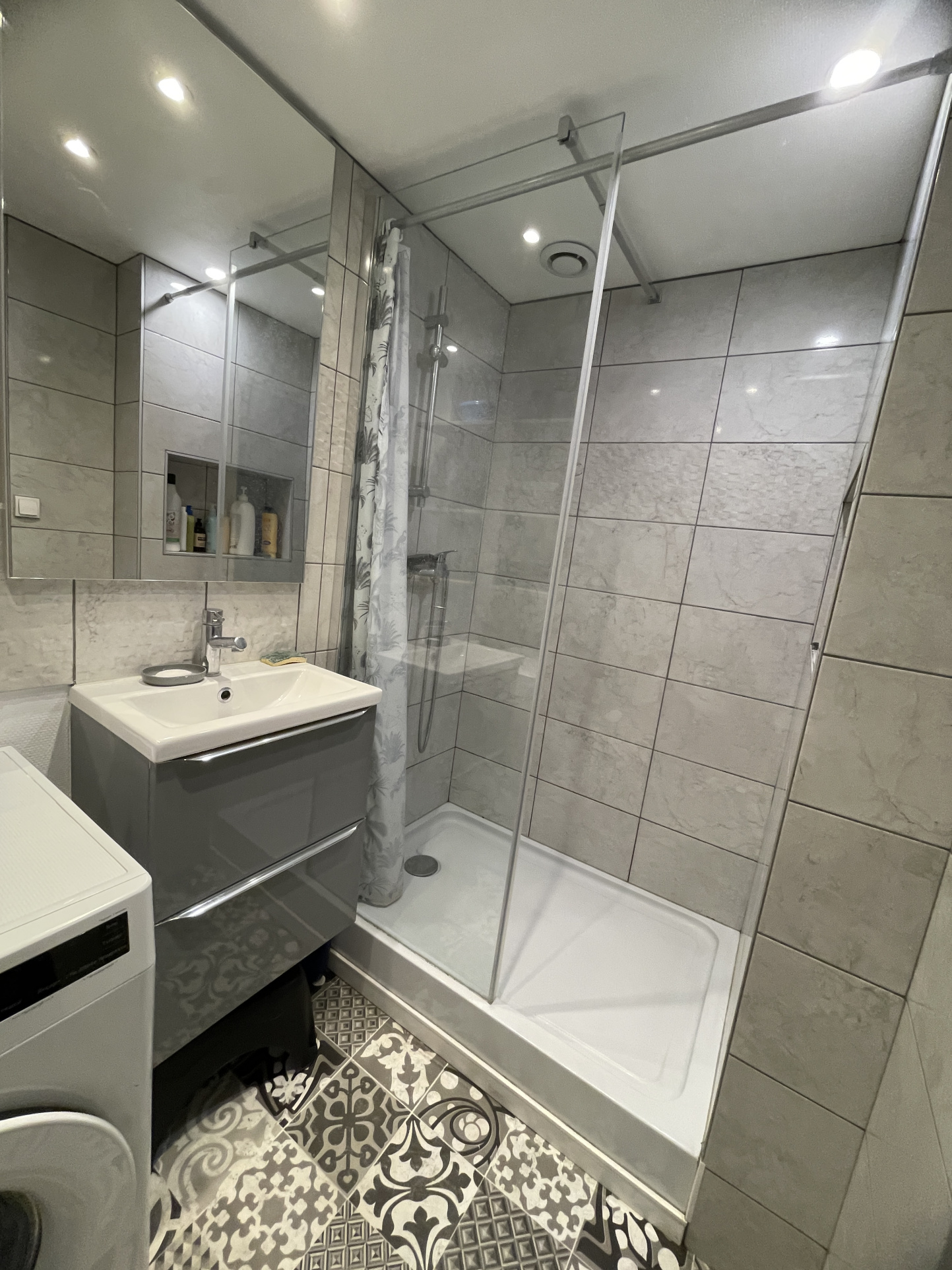 La salle de bains moderne et le WC indépendant ajoutent à la fonctionnalité de cet appartement où chaque détail a été optimisé.