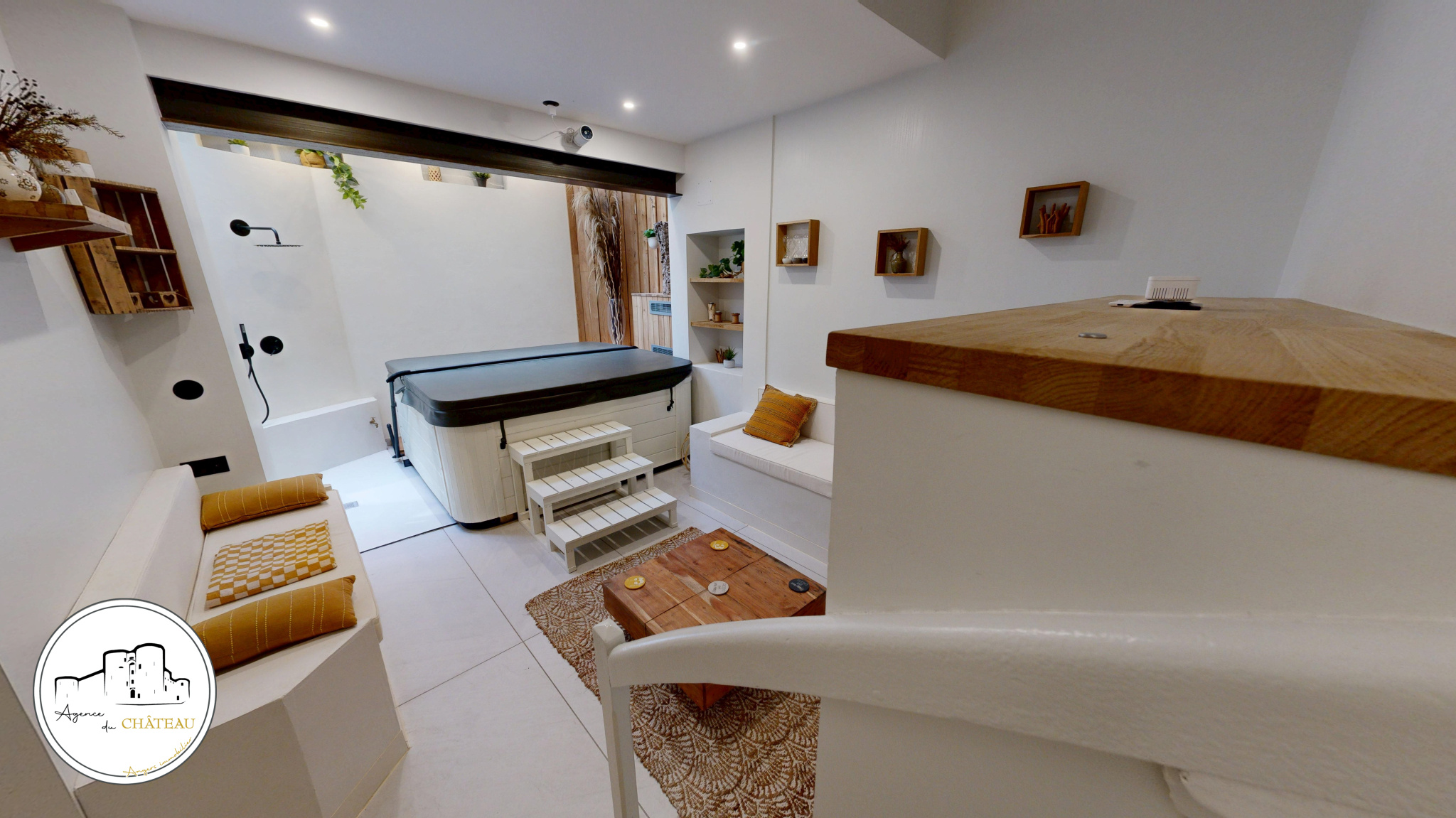 En complément, cet appartement dispose d'une première pièce détente secrète avec jacuzzi, douche et Wc, ainsi qu'une cave aménagée attenante à l'appartement, de 17m2.