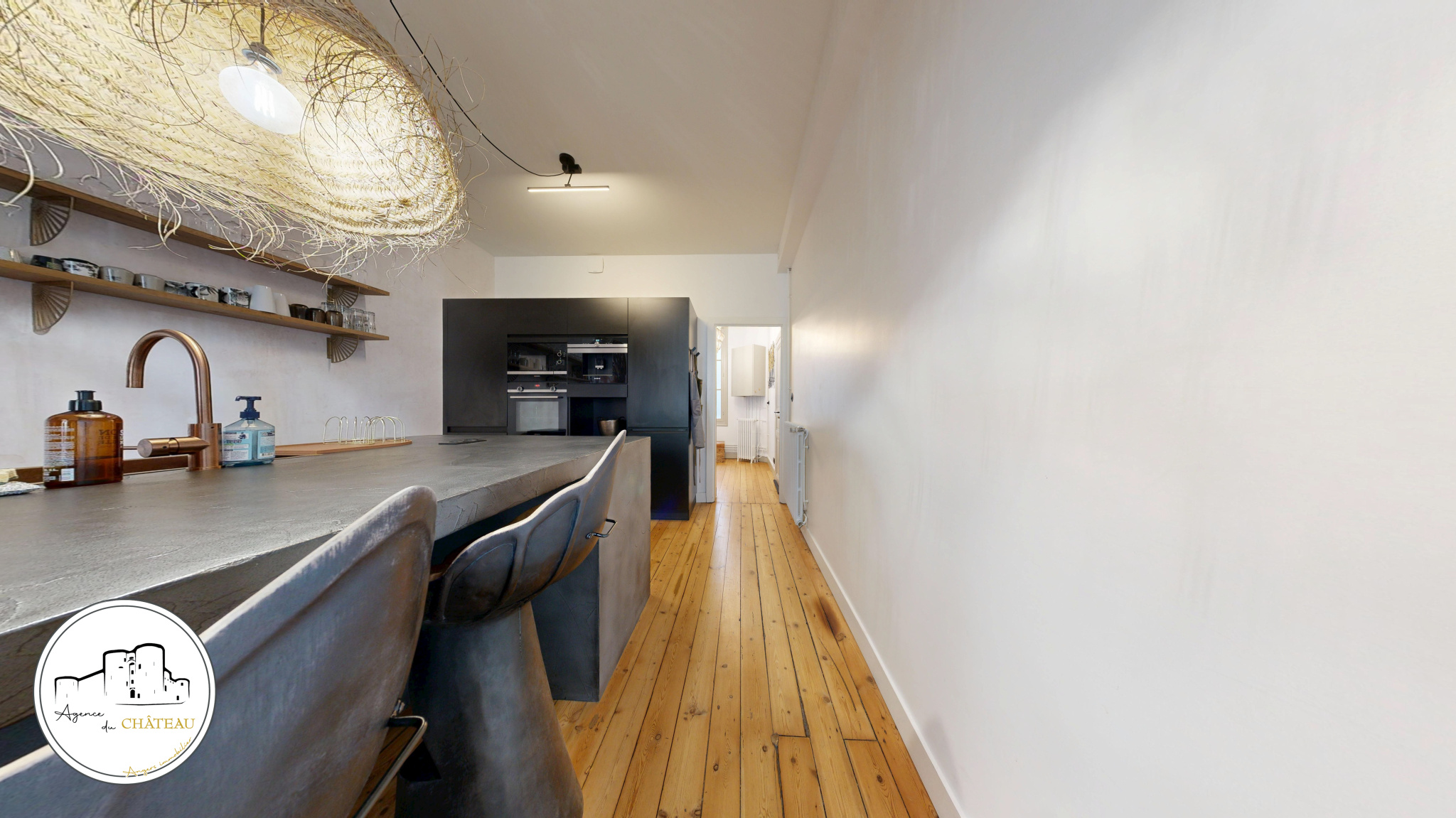 L'appartement est composé d'une cuisine design aménagée et équipée autour d'un superbe îlot central, dans son prolongement, un salon-séjour avec possibilité d'une chambre d'appoint/bureau, un long couloir vous mènera vers une vaste suite parentale cosy avec salle de bain.