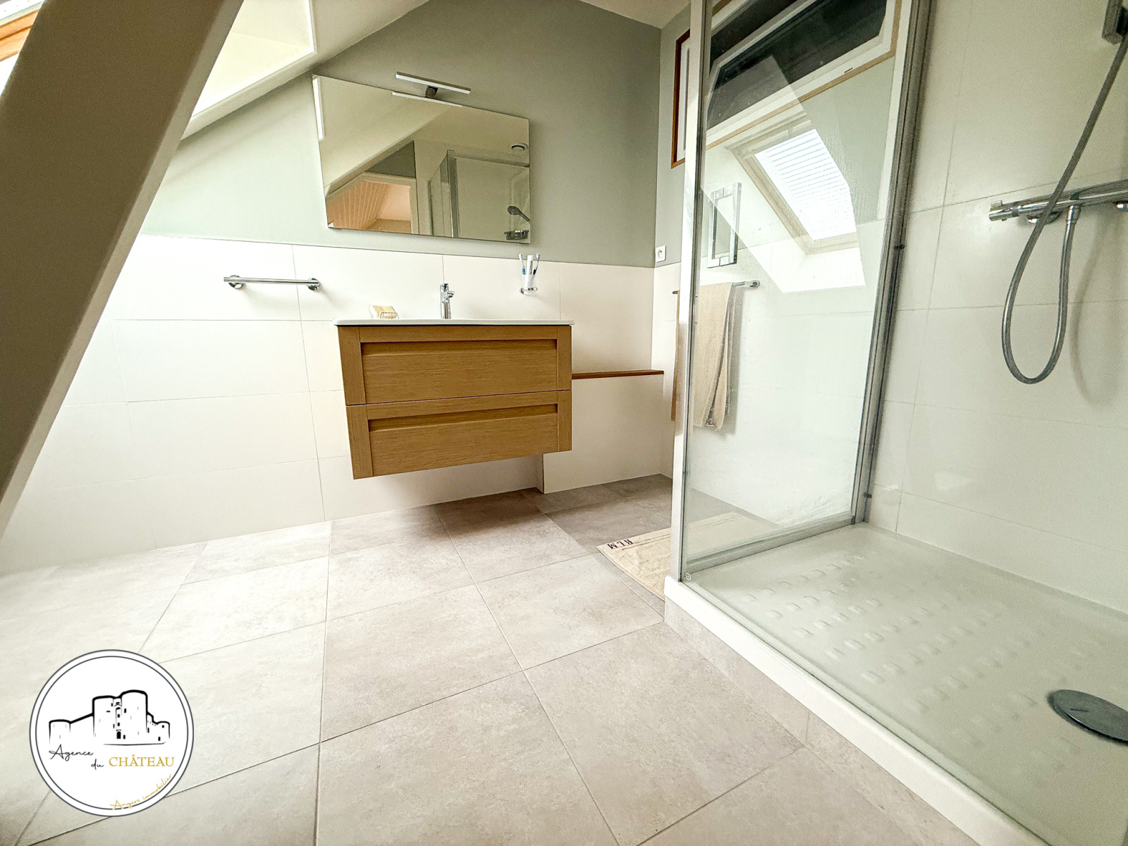 À l'étage, un palier dessert 4 chambres, dont une suite parentale avec dressing et salle d’eau attenante. Une salle de bains avec WC complète l’étage.