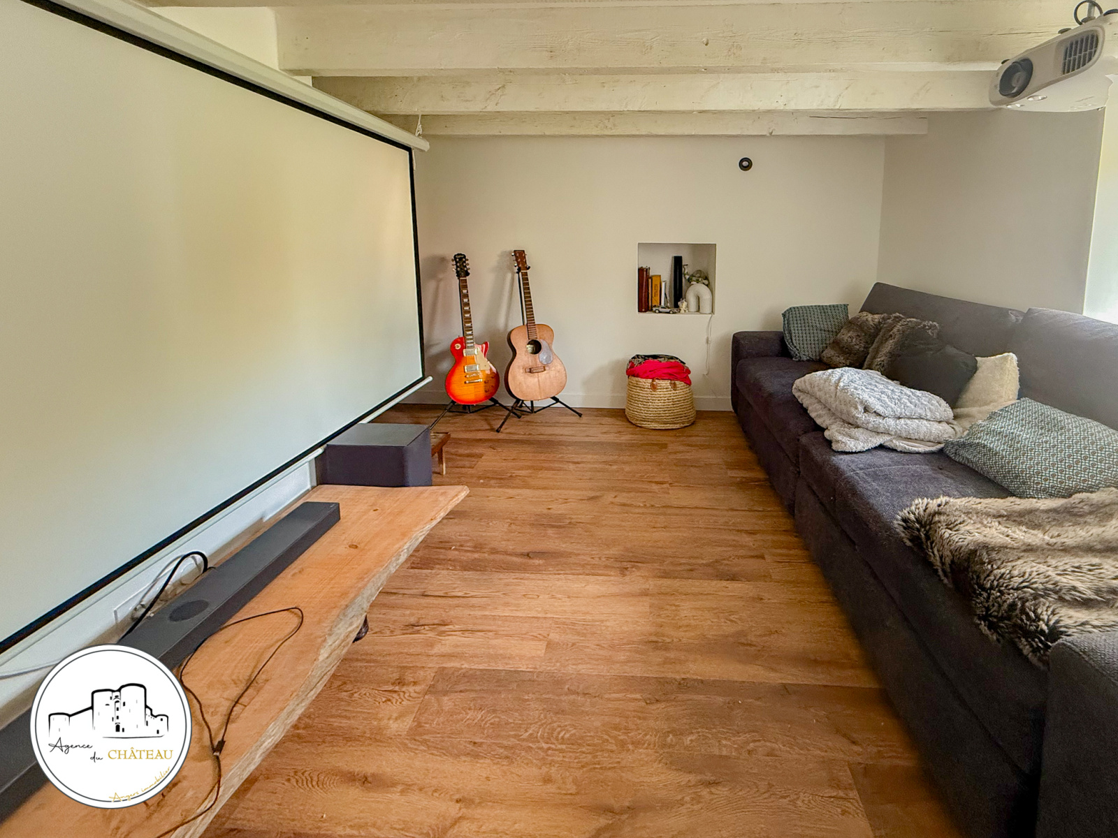 Ce bien dispose donc également d'une chambre d'ami/ salle cinéma, d'une vaste buanderie, ainsi qu'une salle de bain avec wc au premier niveau,