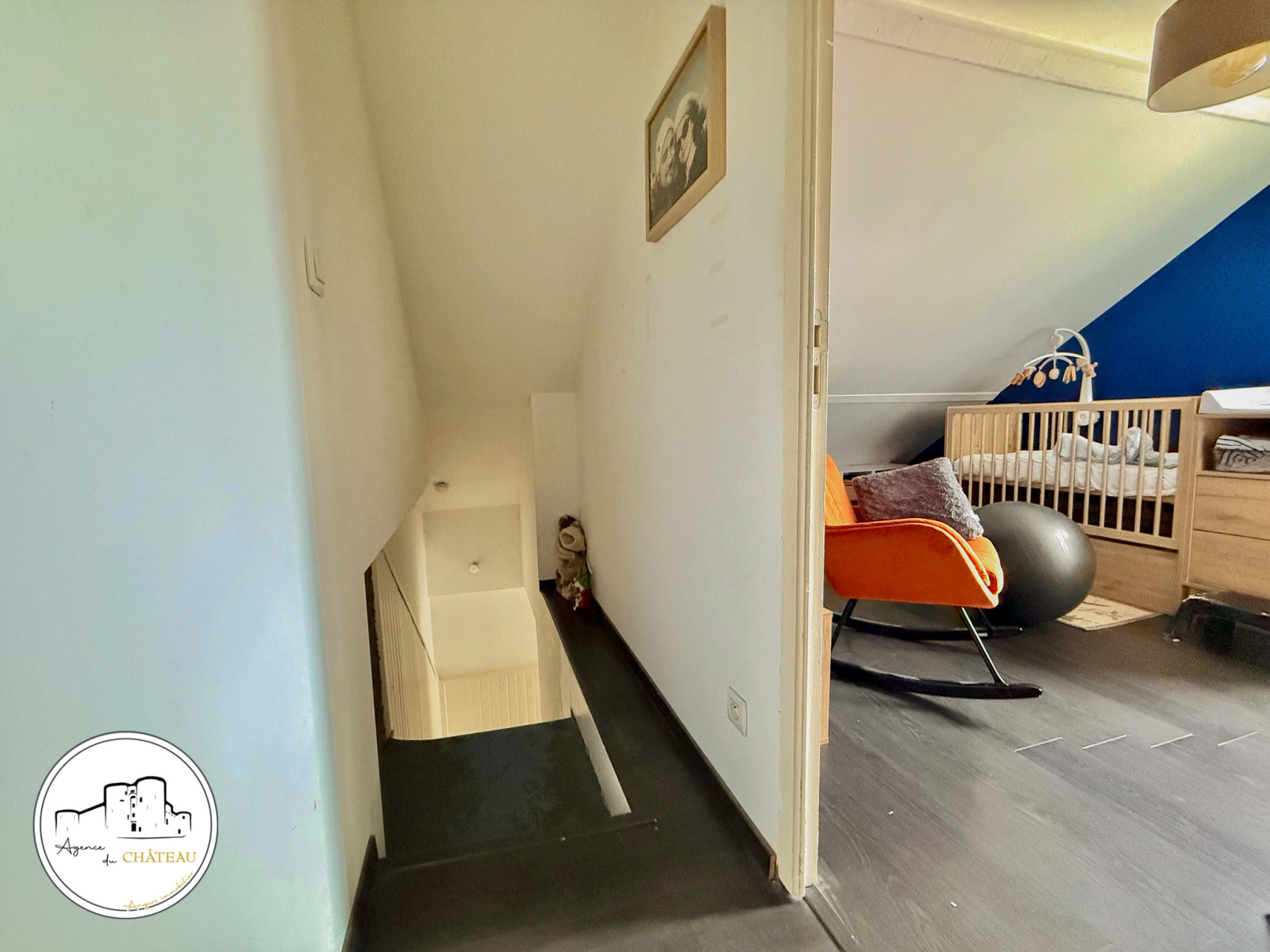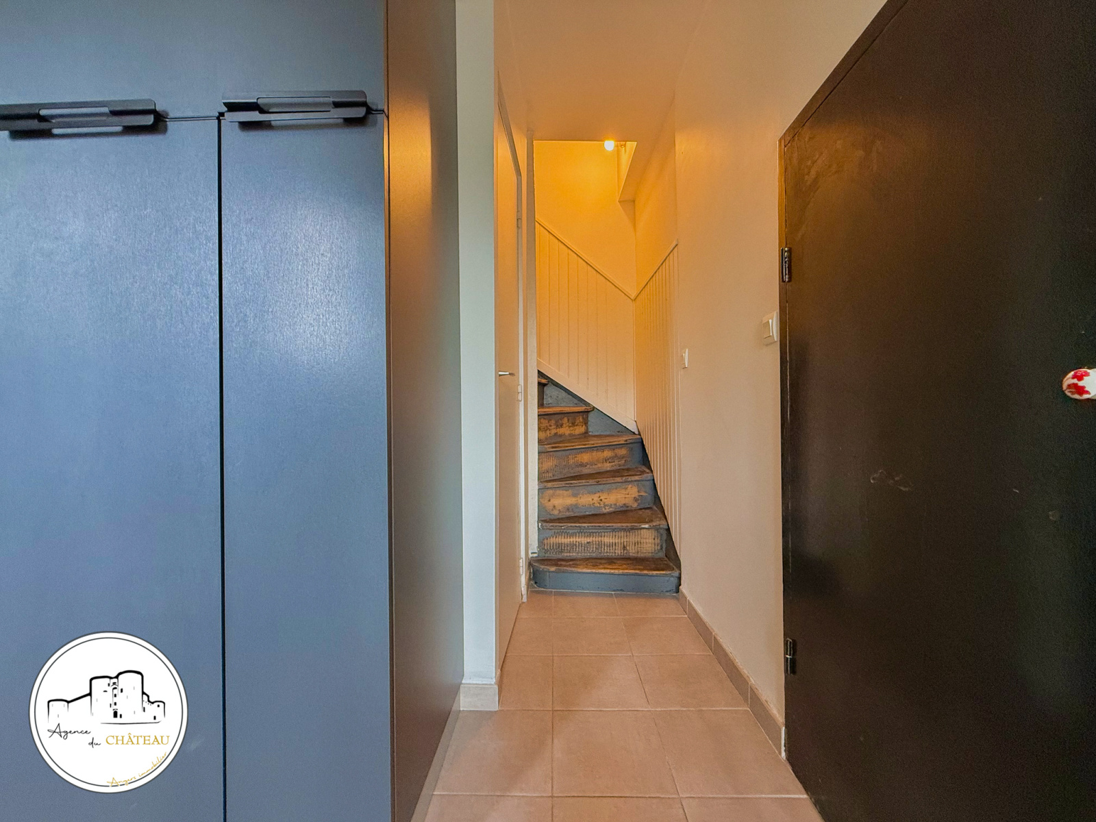 Vous serez accueillis par une entrée vitrée, pour ensuite y trouver sur votre gauche une cuisine entièrement équipée donnant sur un salon cosy et un accès au premier niveau. En face, se trouve un escalier desservant 2 chambres au 3ème niveau.