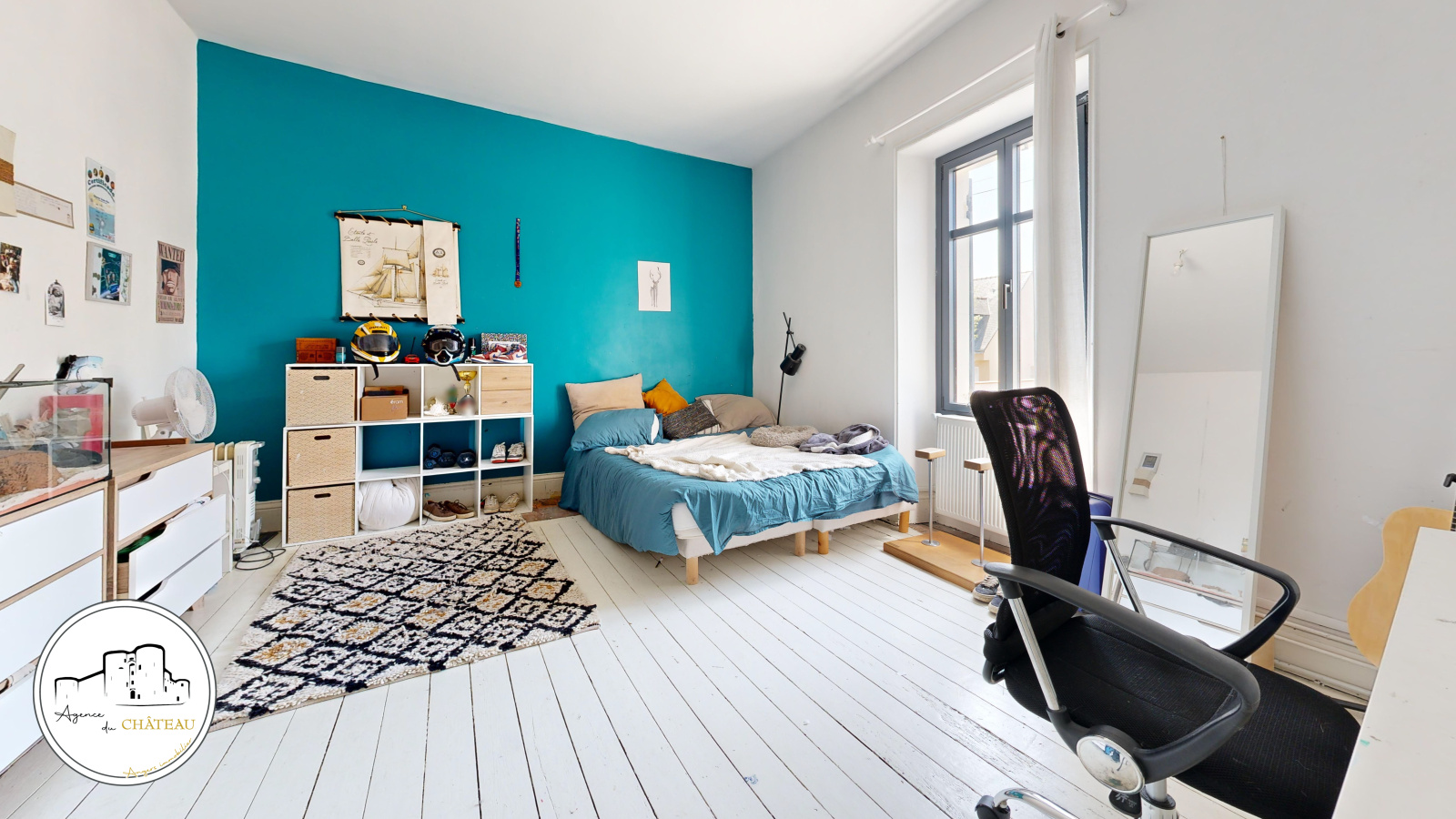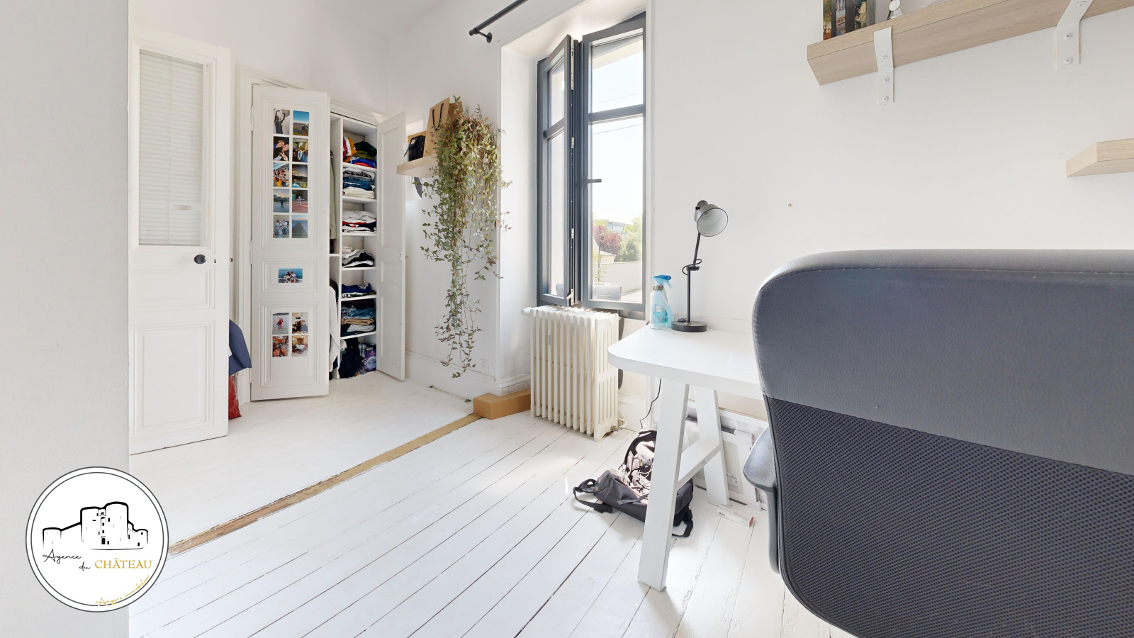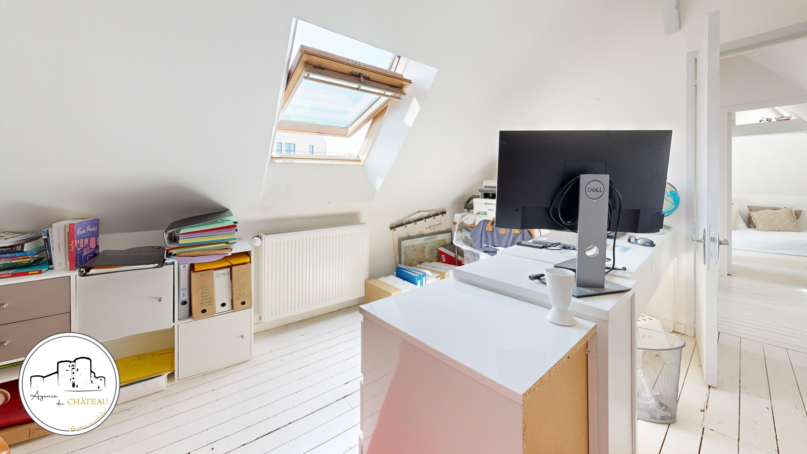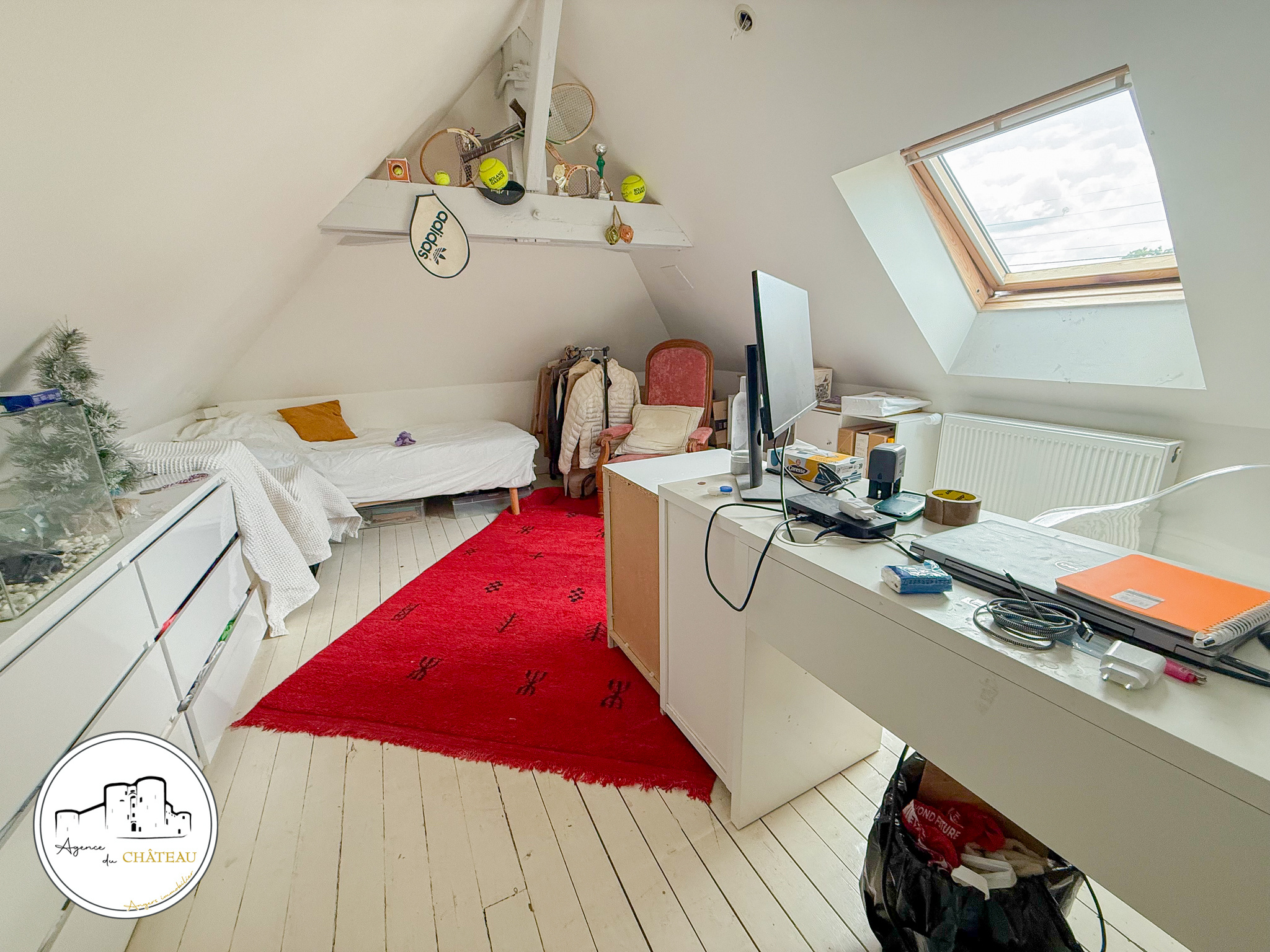 À l’étage, le palier dessert trois chambres dont une avec salle d’eau privative. Le deuxième étage a été intelligemment aménagé pour accueillir une quatrième chambre ainsi qu’un bureau.