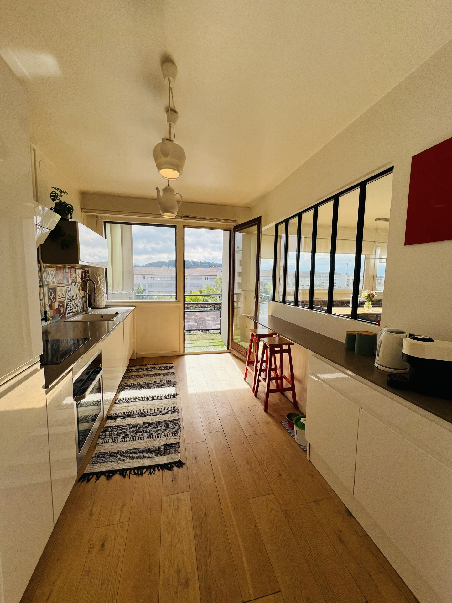 Bel espace de vie de 31m2 avec une cuisine intégralement équipée semi-ouverte sur un lumineux séjour, donnant sur un balcon de 6m2 environ, sans vis-à -vis avec une vue dégagée sur les massifs environnants. Une entrée avec placard desservant deux chambres dont une avec dressing et la seconde dotée d'un balcon donnant sur la cour intérieure de l’immeuble. Salle d'eau avec douche à l’italienne et toilettes indépendants. Une cave en sous-sol complète ce bien. Chauffage et eau chaude compris dans les charges de copropriété. Possibilité de location de place de parking à proximité. Aucun travaux à prévoir, appartement coup de coeur qui mérite votre visite de toute urgence!