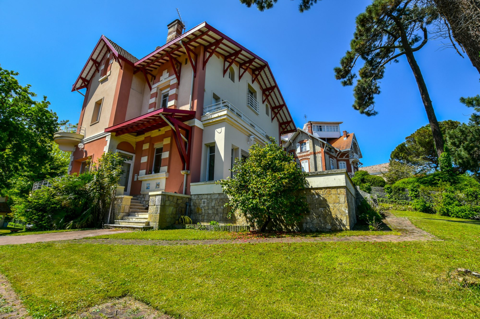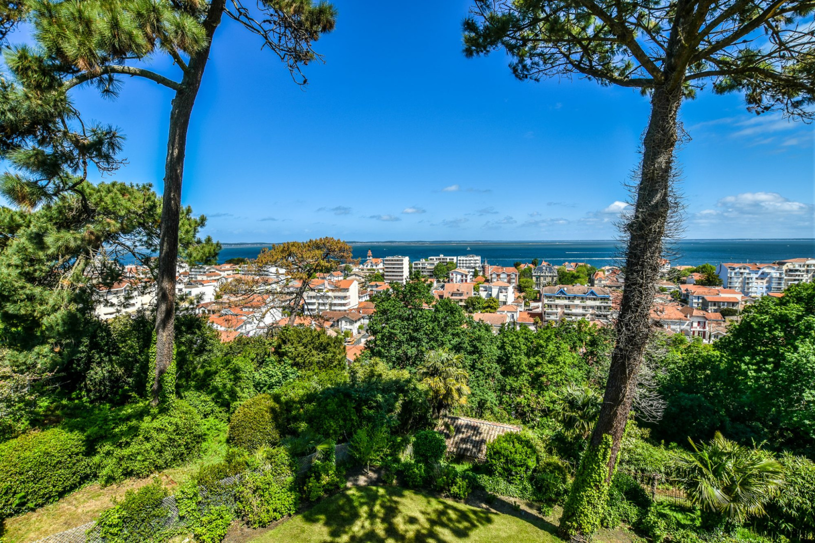 Vue fabuleuse sur le Bassin d'Arcachon Au coeur du quartier historique protégé d'Arcachon dans un environnement chic et élégant, à l'abri de toute nuisance, tout proche du centre et de la plage avec une vue à couper le souffle sur le bassin d'Arcachon, somptueuse propriété traversante avec onze chambres et une villa indépendante avec deux chambres, édifiées sur un vaste parc arboré d'une superficie d'environ 2 100 m2 avec quatre garages. Finitions haut de gamme, chauffage central gaz, belle exposition ensoleillée, arrosage automatique, alarme, portes de garage électriques et portail automatique. Rez de chaussée : Trois salons, une salle à manger, cuisine indépendante aménagée et équipée, une pièce et wc indépendant. 1er étage : Une suite parentale avec vue sur le Bassin d'Arcachon avec sa salle de bains et son dressing, deux chambres, salle de bains et wc indépendant. 2ème étage : Six chambres dont trois avec une pièce supplémentaire attenante, salle de bains et wc indépendant. Rez de jardin : Trois garages dont un garage double, bodéga, débarras, cave à vins, salle de bains et wc indépendant Assurément l'une des plus belles propriétés d'Arcachon... D'autres photos ainsi qu'un descriptif détaillé et complet du bien sont à votre entière disposition sur simple demande. Groupe DIÉ IMMOBILIER - Guillaume Dié - 06 86 28 96 72 - commercial@die-immobilier.net