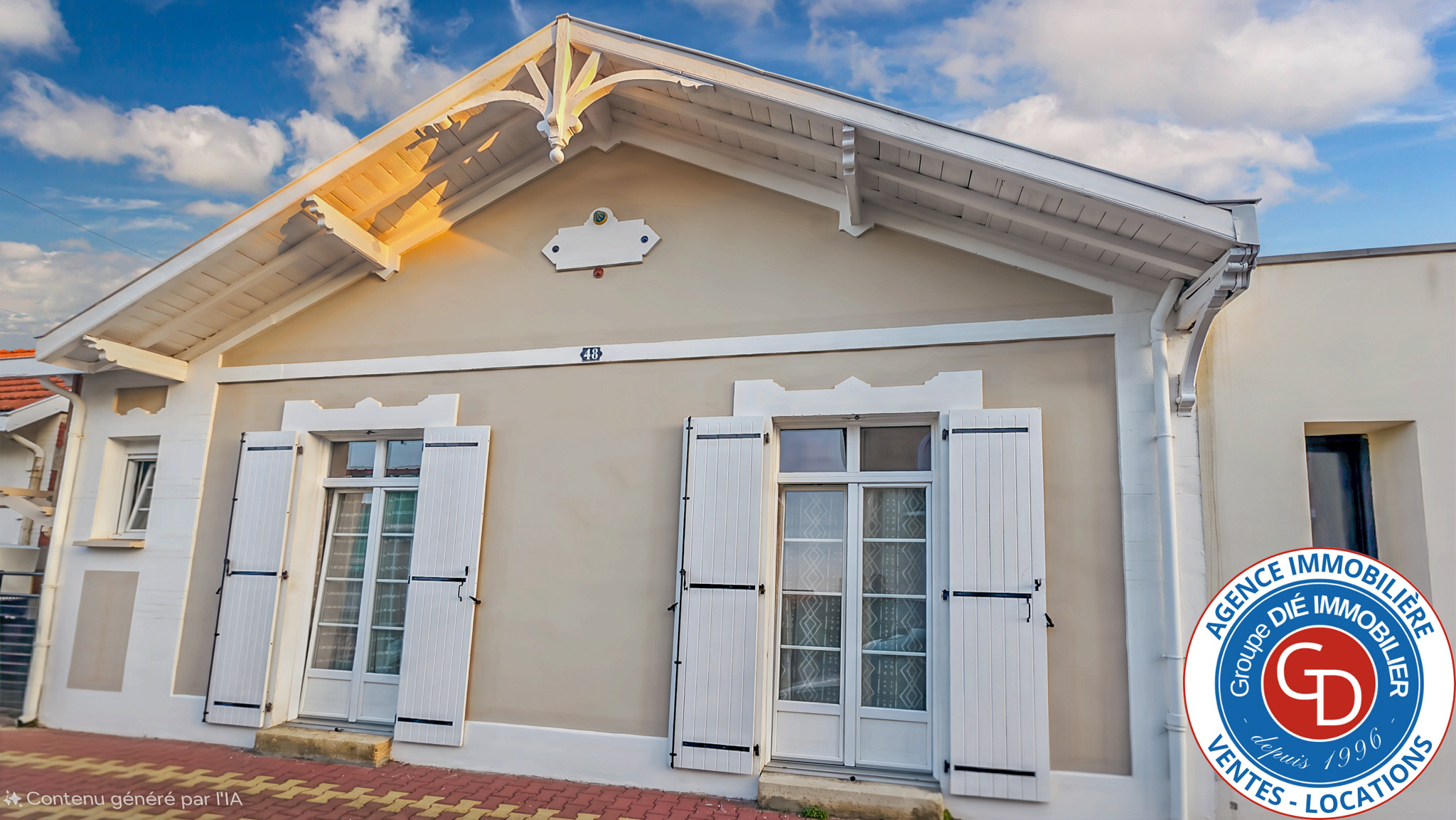 A Arcachon, dans le quartier de Saint-Ferdinant - Ville d'Automne, le Groupe DIÉ IMMOBILIER a l'honneur de vous présenter une jolie villa (93 m2) de plain-pied et traversante avec 3 chambres et grande terrasse.