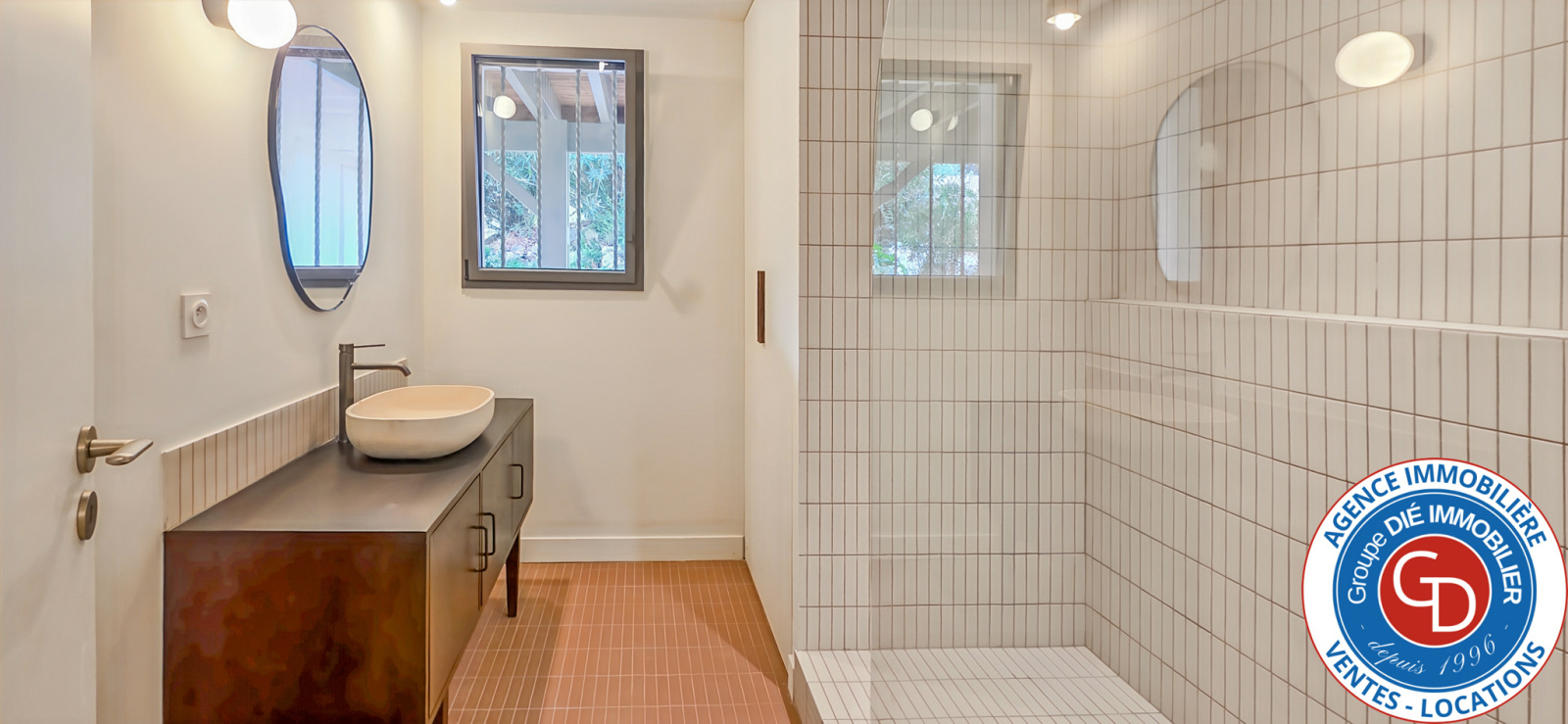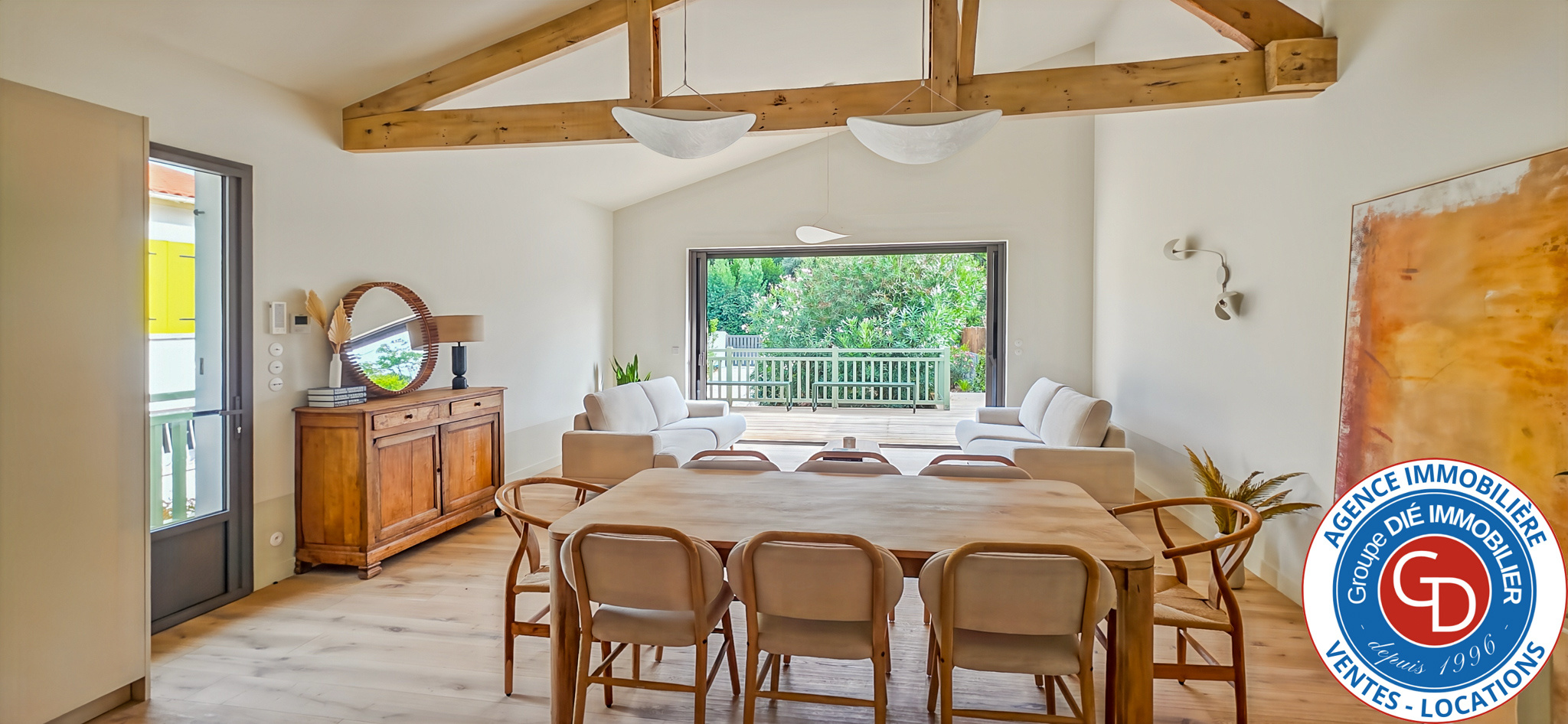 Arcachon, dans le quartier recherché des Abatilles, le Groupe DIÉ IMMOBILIER a l'honneur de vous présenter une magnifique villa entièrement rénovée avec des finitions d'exception, édifiée sur une parcelle de terrain d'environ 400 m2.