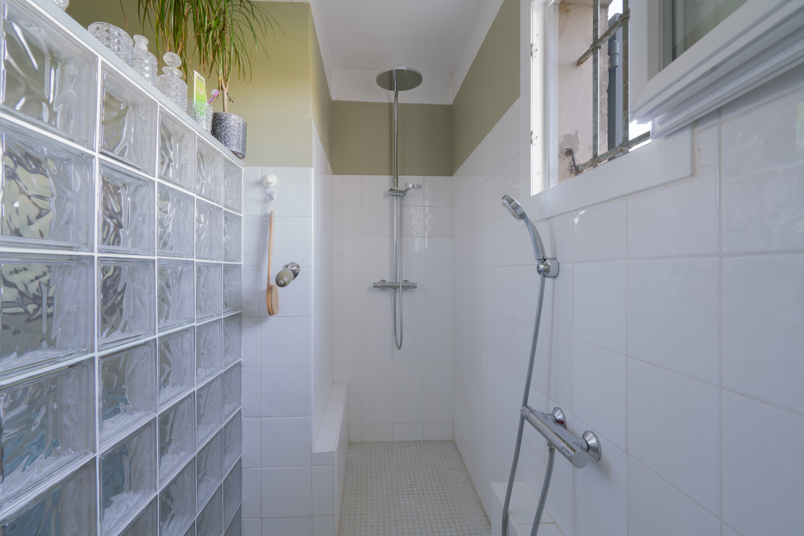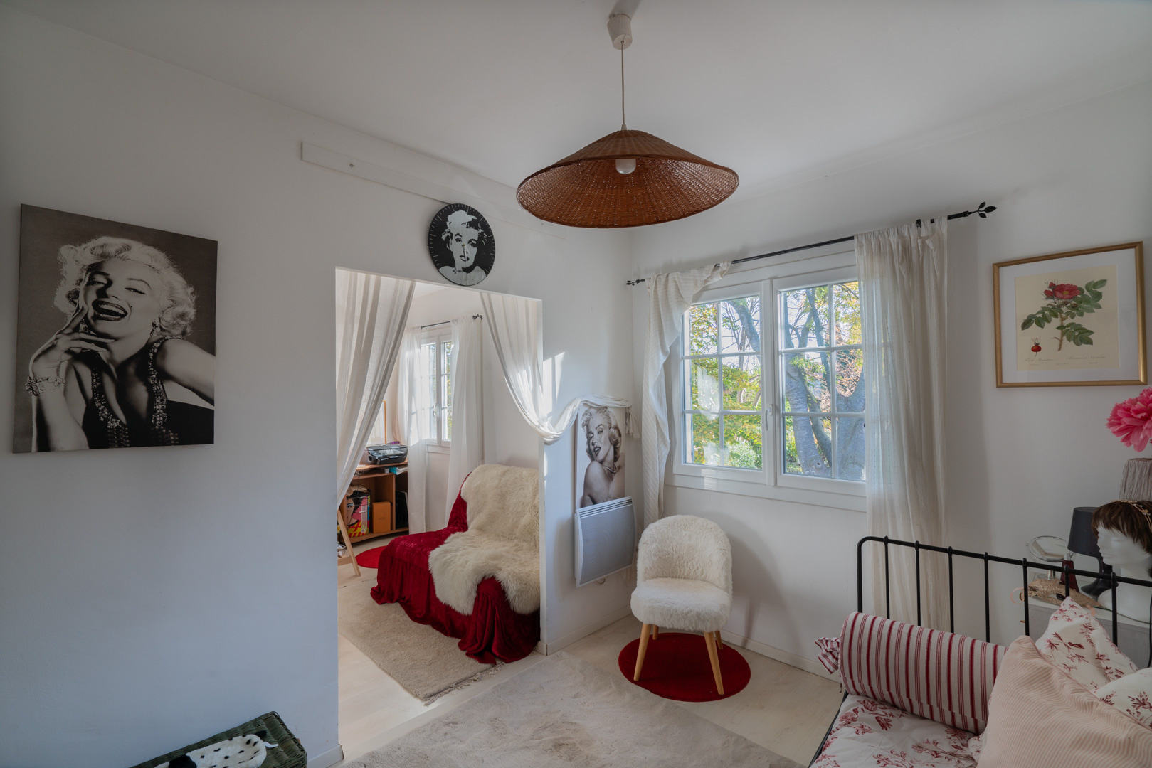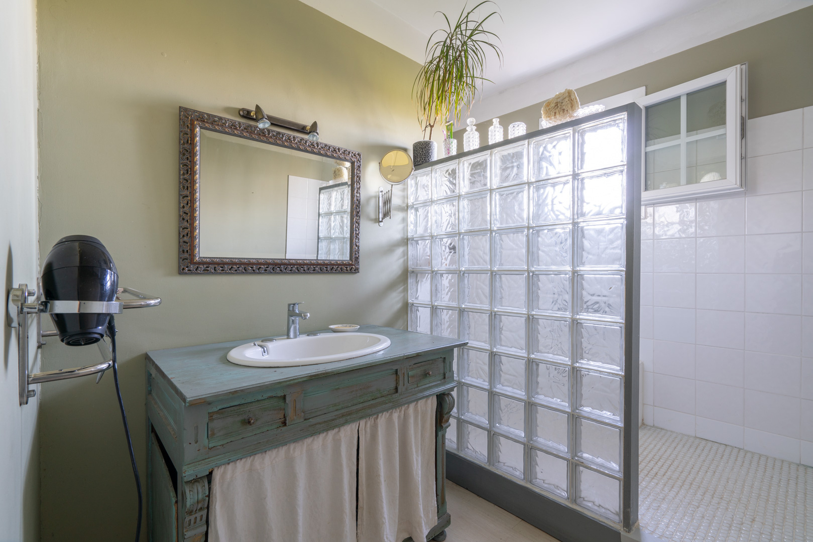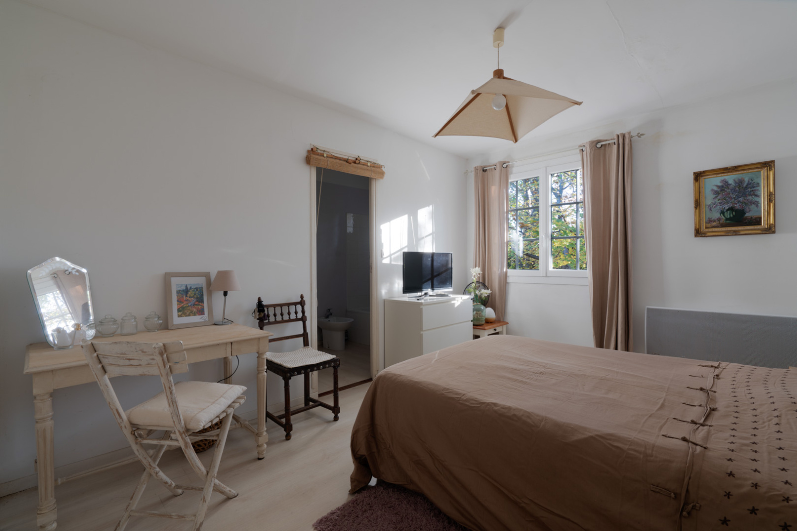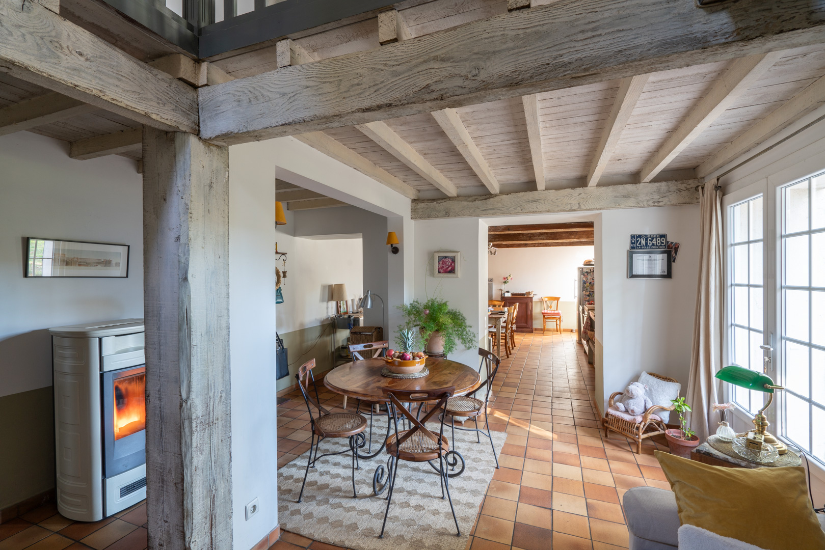 A l'étage, en mezzanine, un grand bureau conduit à un couloir qui dessert les chambres, les salles de bains, les salles d'eau et les wc.