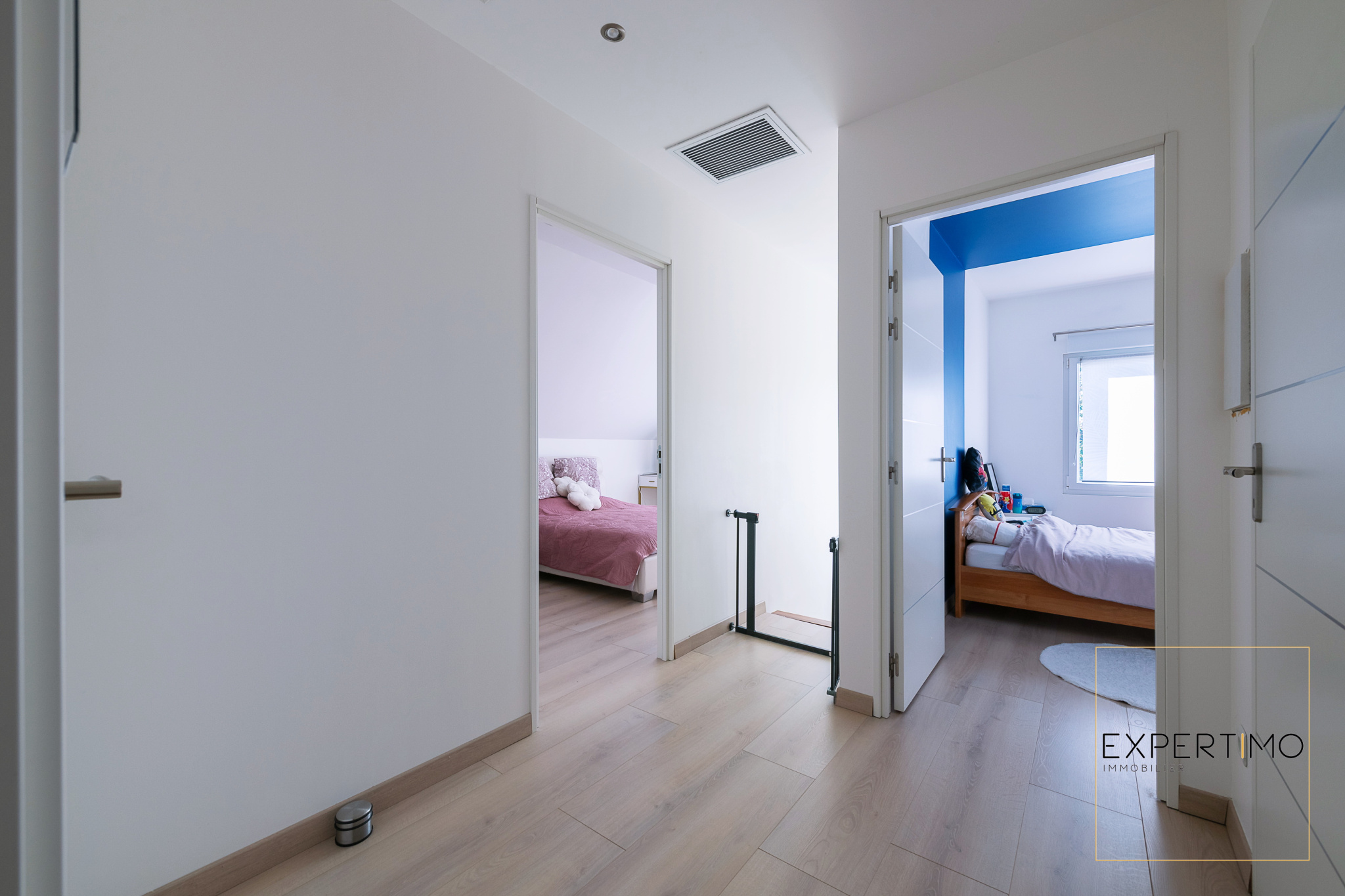 A l’étage, vous profiterez d’une très belle suite parentale de 30m2 avec dressing très bien équipé et une salle d’eau épurée et moderne. Deux grandes chambres, des toilettes séparées et une seconde salle d’eau complètent ce niveau.