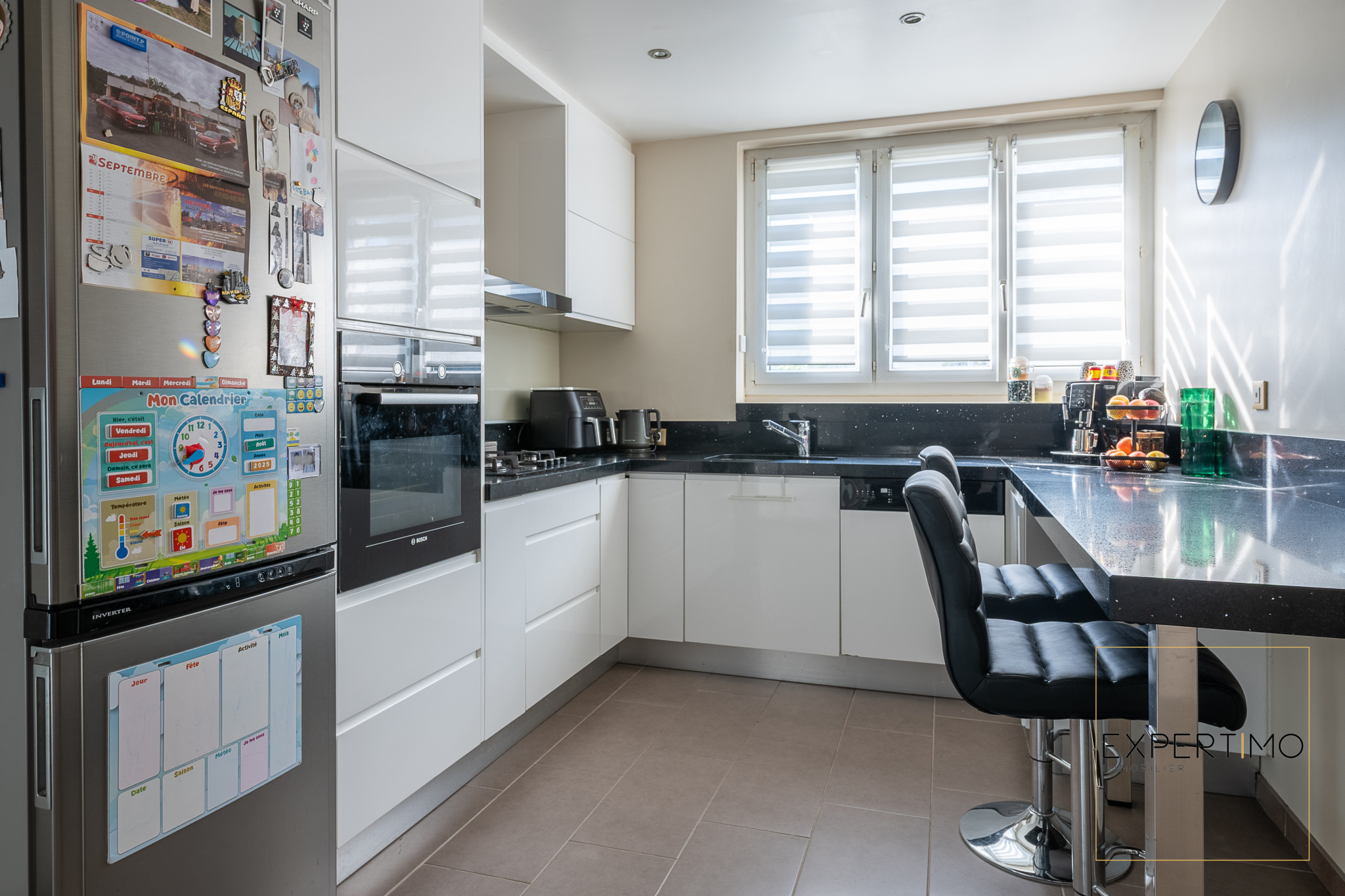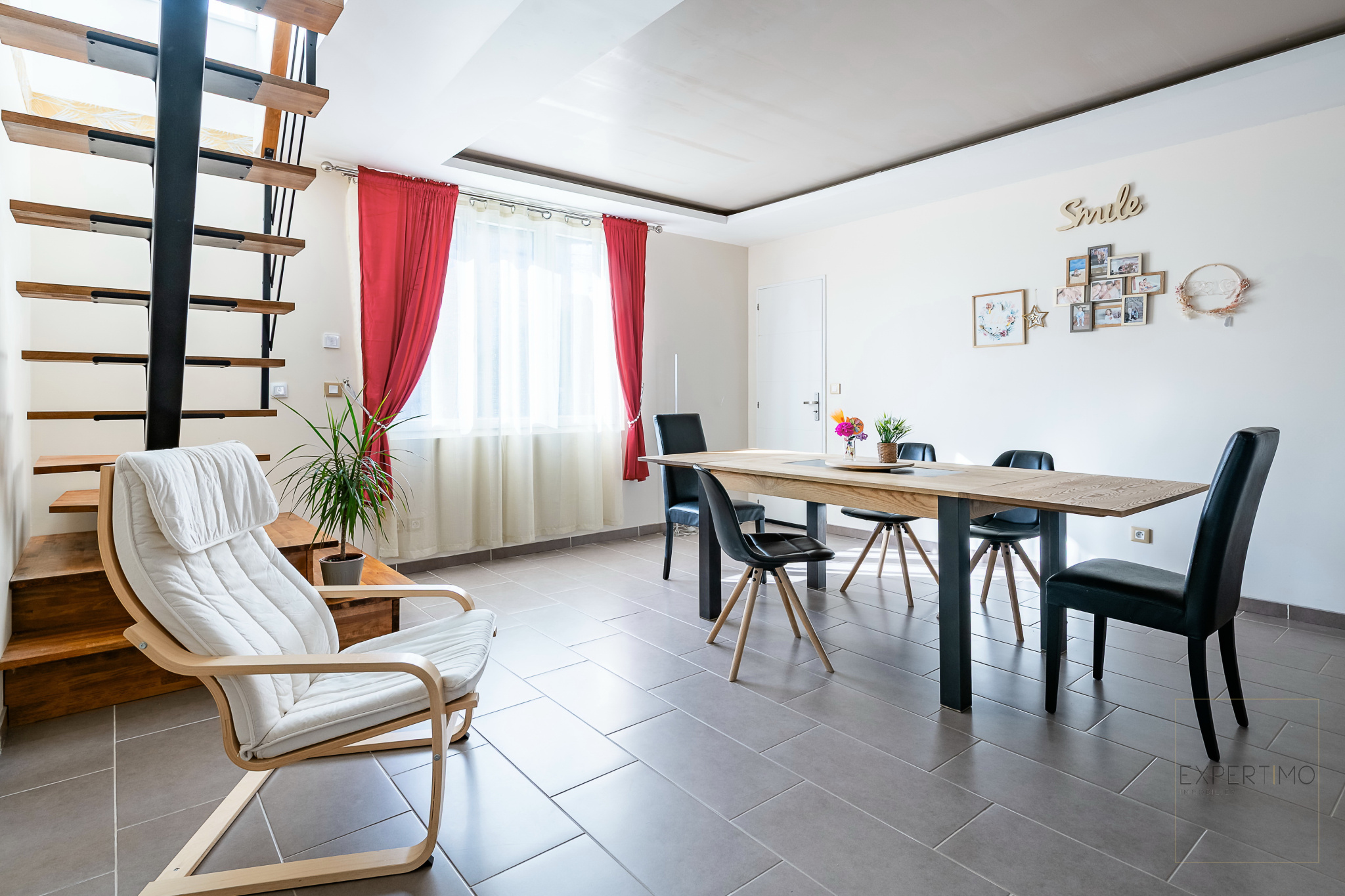 Le pavillon, non mitoyen offre 142m² de surface au sol et 124m² habitables. Il est non mitoyen. Orienté Est-Ouest. Il a été entièrement rénové en 2020 avec beaucoup de goût, une distribution intelligente, sans perte de place et offrant de grands volumes et des rangements. Et si vous préférez une cuisine fermée, le cloisonnement est simple à faire. Le garage pour un véhicule est en partie aménagé en bureau offrant une petite pièce de plus.