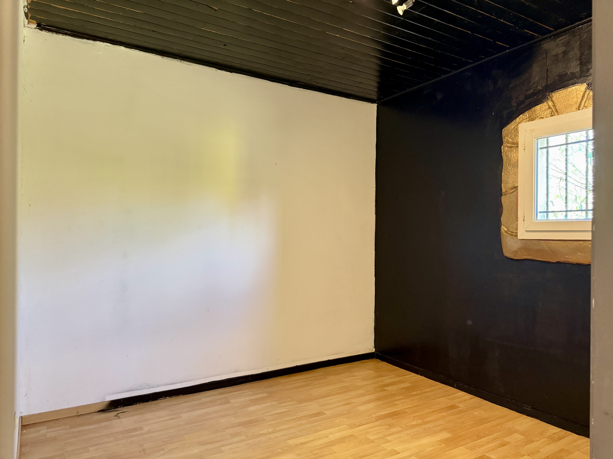 Une pièce supplémentaire de 9 m2 (non comprise dans la surface habitable) a été aménagée dans une partie du Garage et peut être utilisée comme 4ème Chambre d'appoint, Bureau ou Atelier selon les besoins. Possibilité également de réaménager l’ensemble en Garage de 25 m2 env.