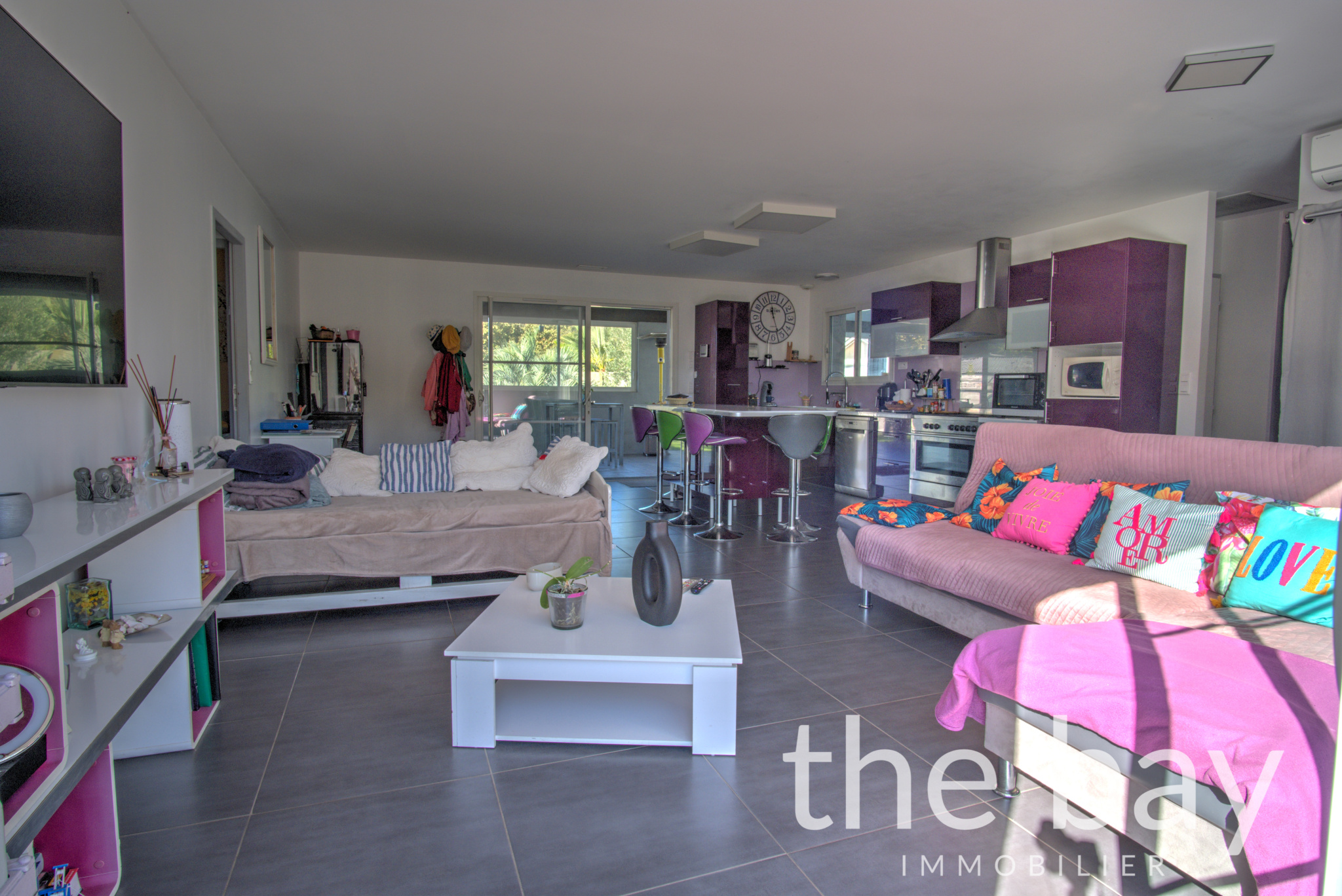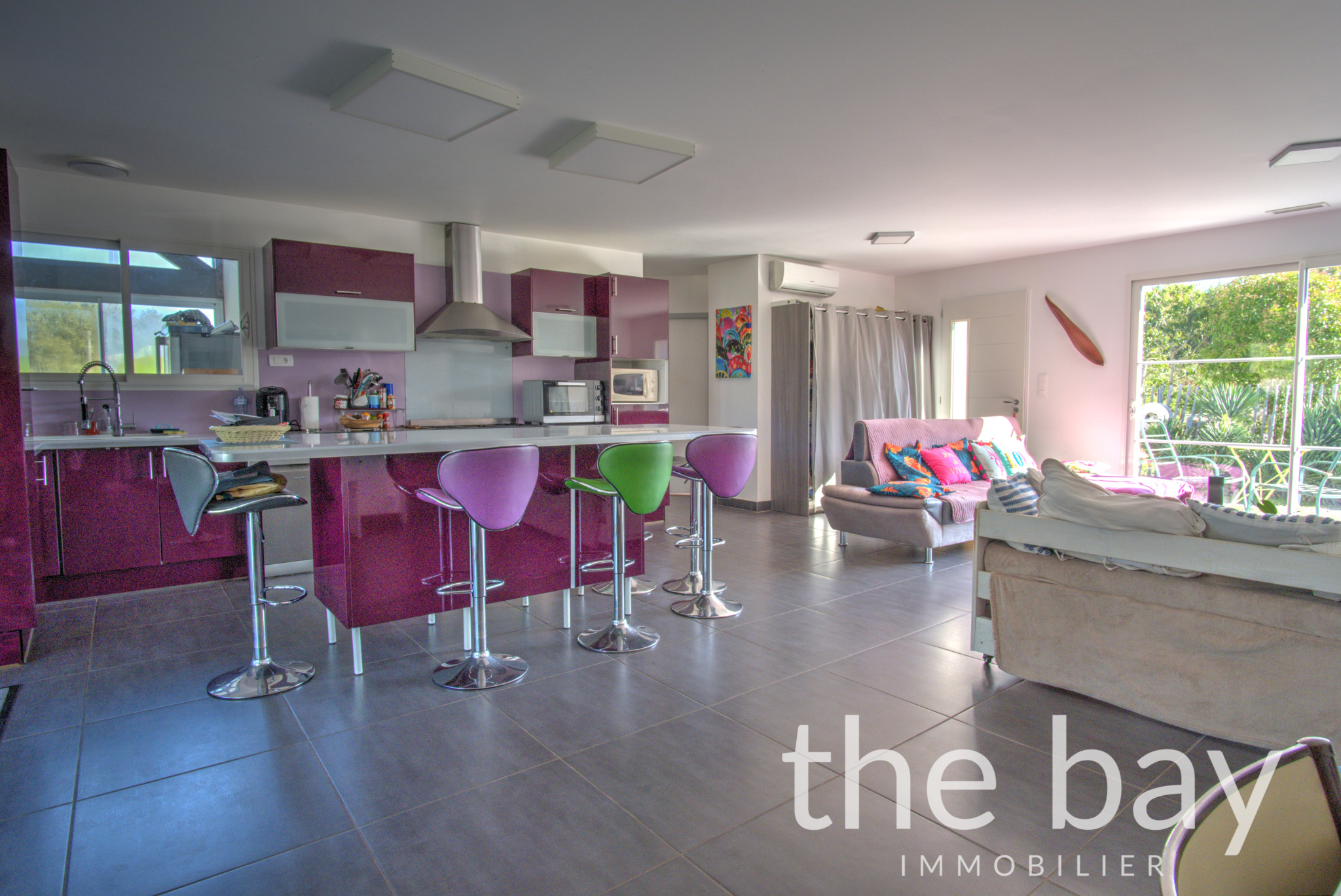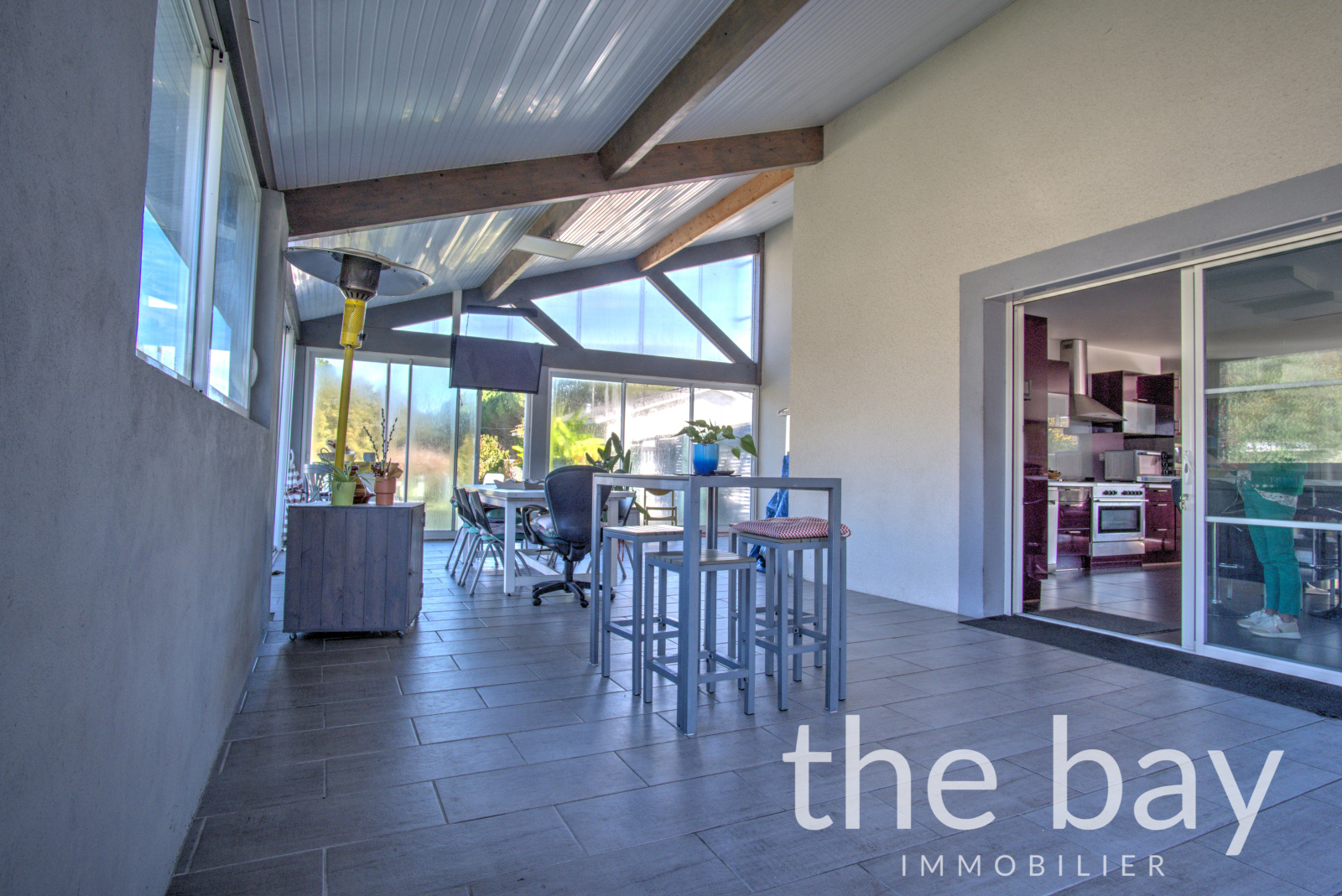 La maison bénéficie également d’une immense véranda semi-ouverte de 75 m², offrant un espace de vie supplémentaire permettant de profiter de l’extérieur tout au long de l’année.