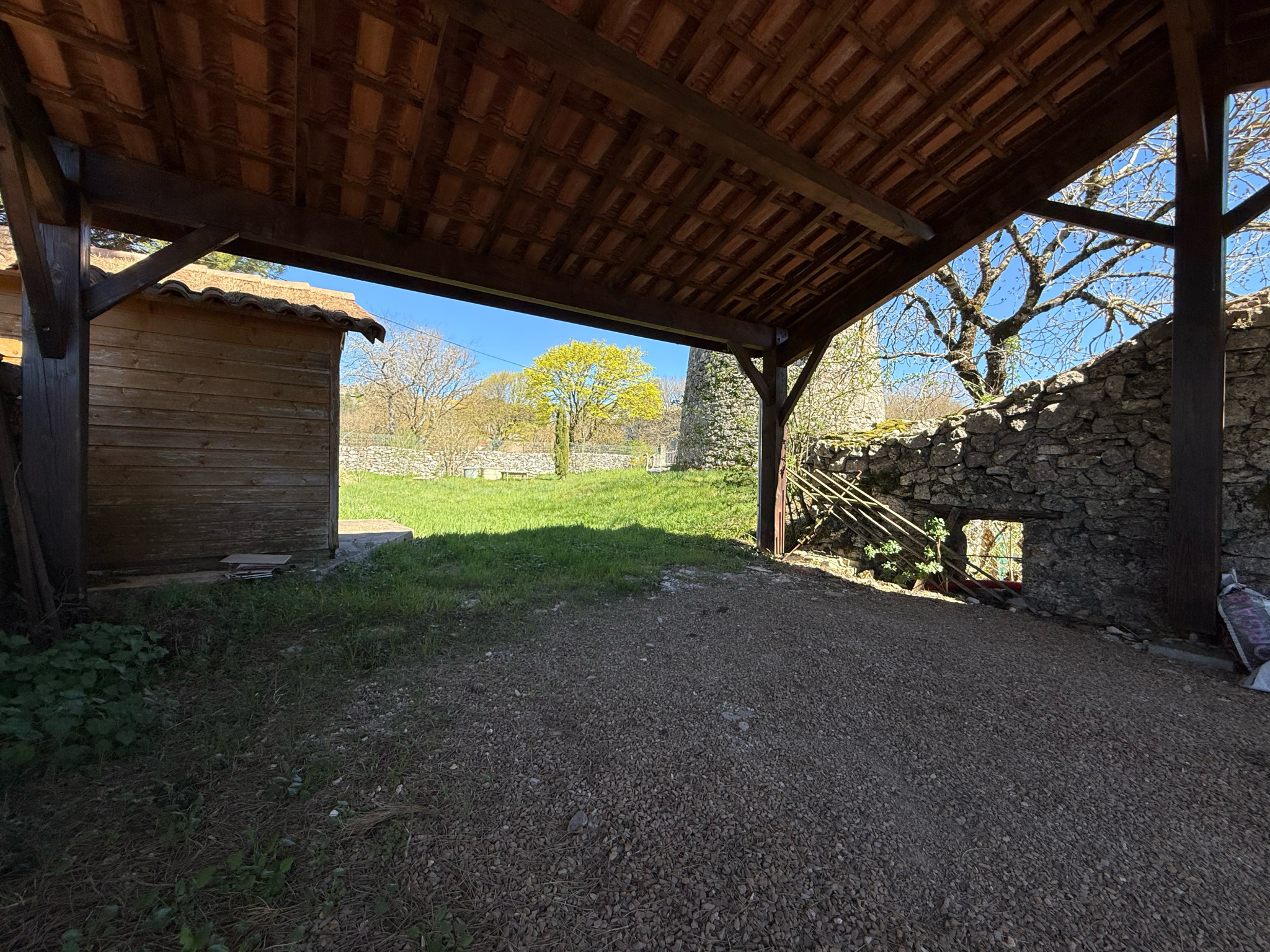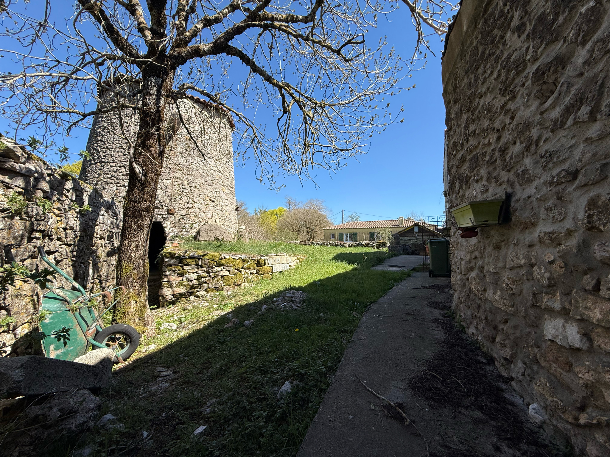 Au milieu du terrain trône un ancien moulin en pierre magnifiquement restauré (murs et toiture), une véritable œuvre d’art au cœur du jardin qui fait tout le charme de cette propriété.