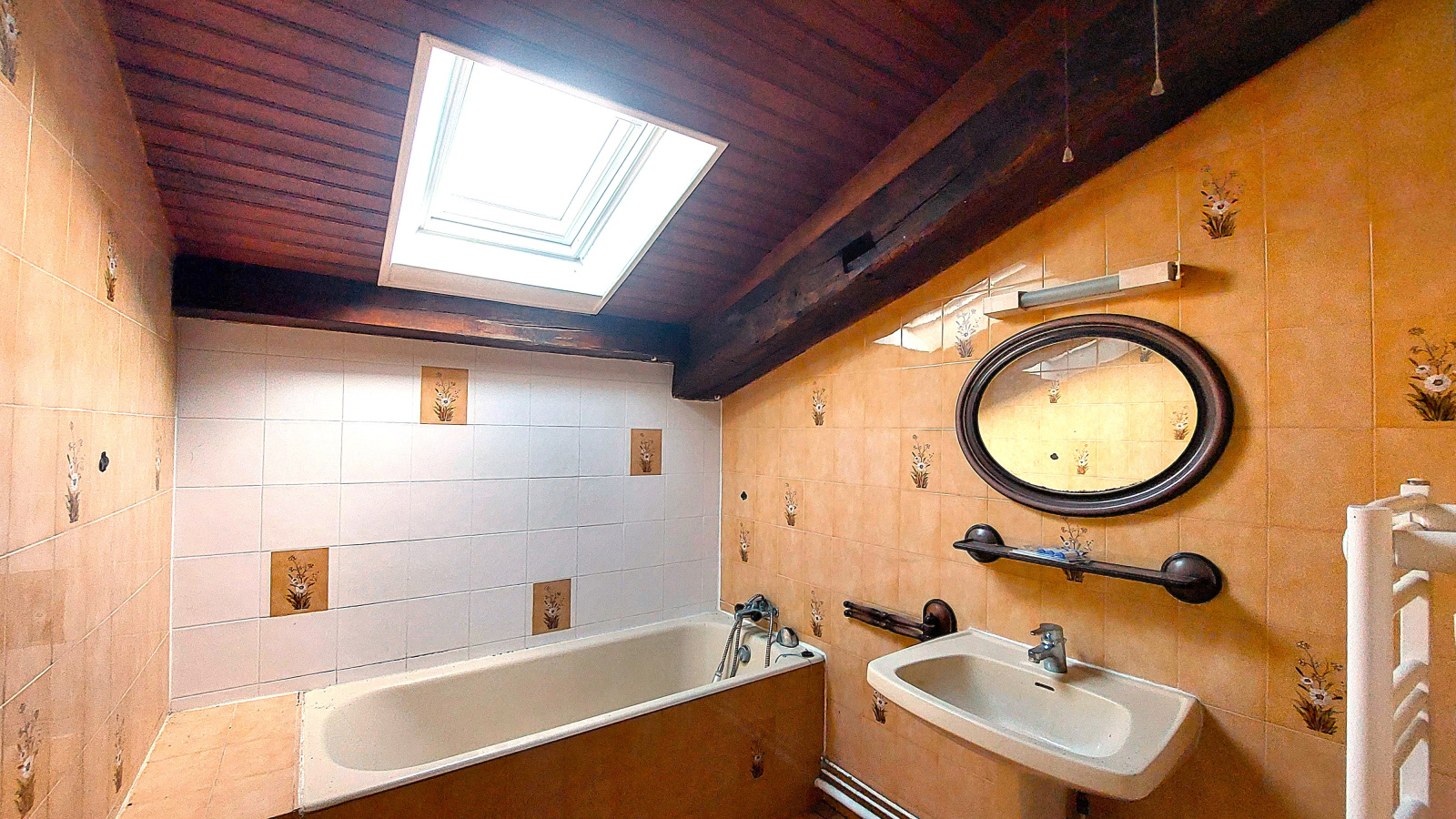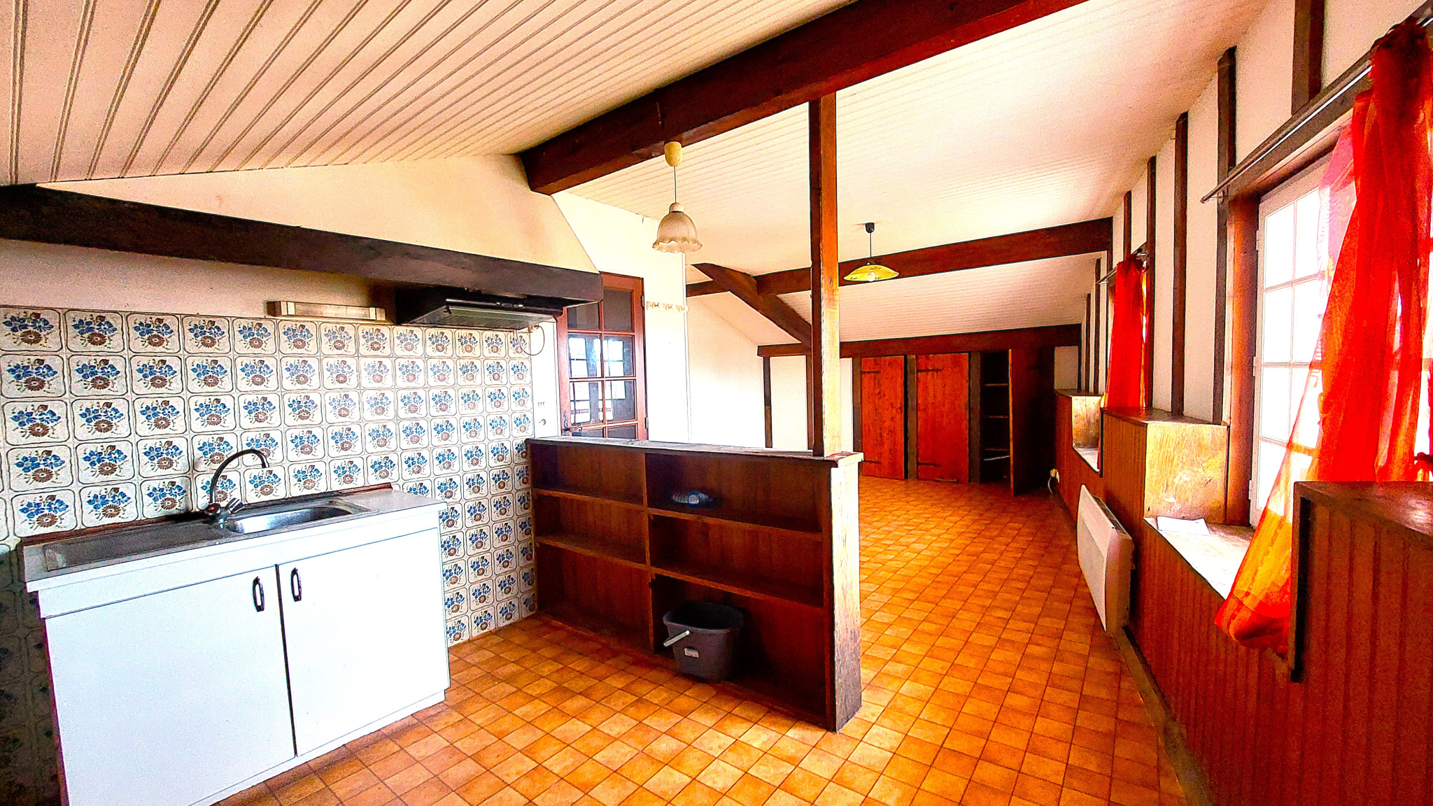 Appartement T2 ancien de 49.60 m² habitables, accessible au second étage sans ascenseur. Il comprend une entrée avec des placards, un séjour-cuisine de 27 m², une chambre de 14 m², une salle de bains, un WC et des combles de rangement de 15 m² au sol. Habitable en l'état, des travaux sont à prévoir selon vos envies. Il est à noter qu'il n'y a pas de balcon, ni de terrasse extérieure. Parking public proche. Le bien est dans un immeuble de six logements dans lequel une copropriété est en cours de création. A pied des commerces, écoles, transports, services communaux et de santé, et des activités sportives dans un village dynamique. A 20 minutes des portes de Bayonne.