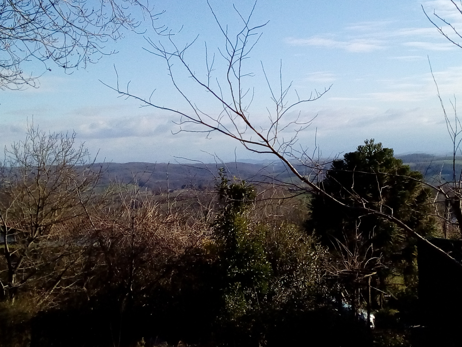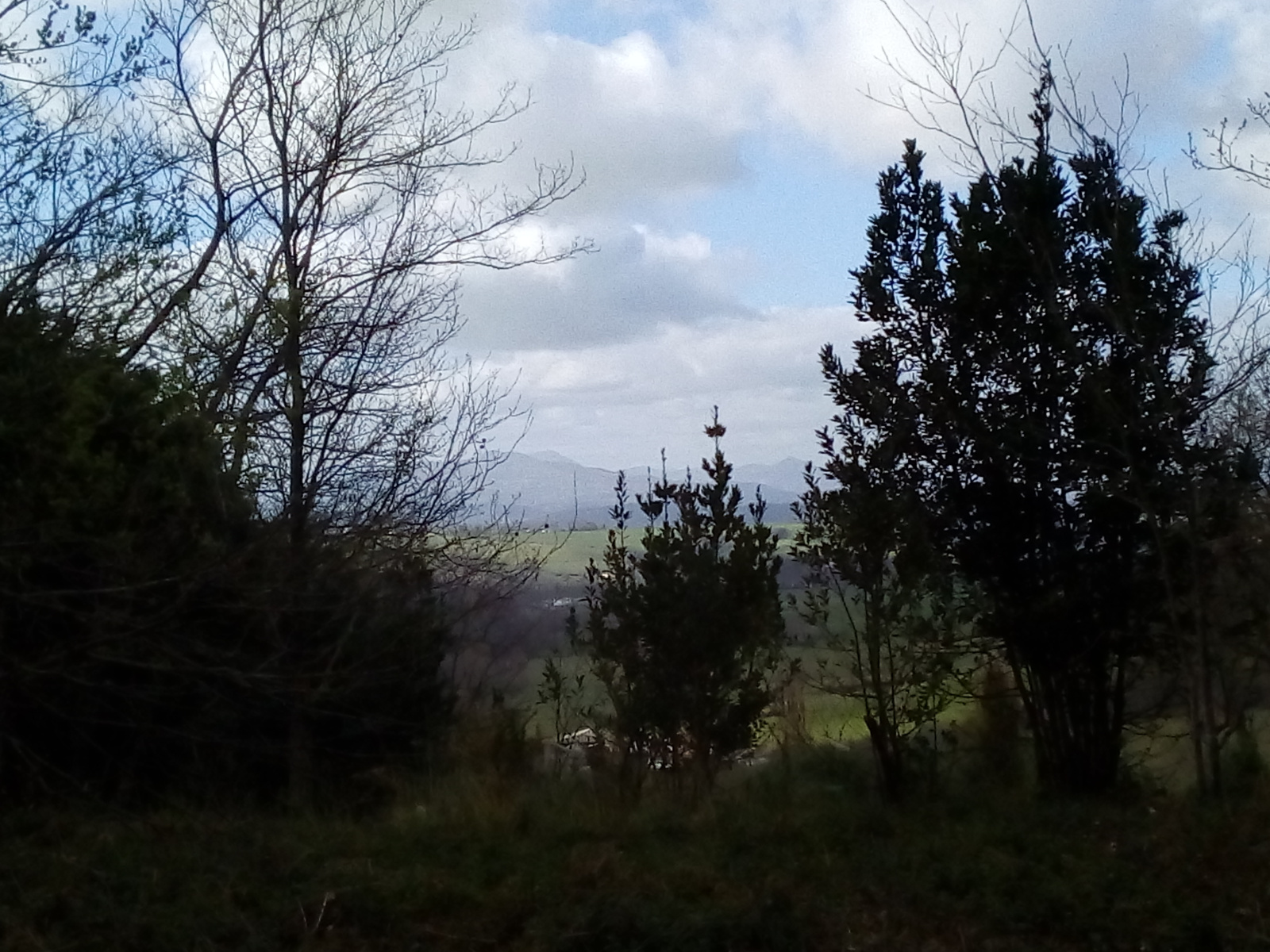Vue magnifique sur la chaine des Pyrenées aves des chênes centenaires