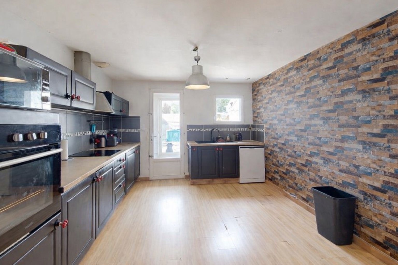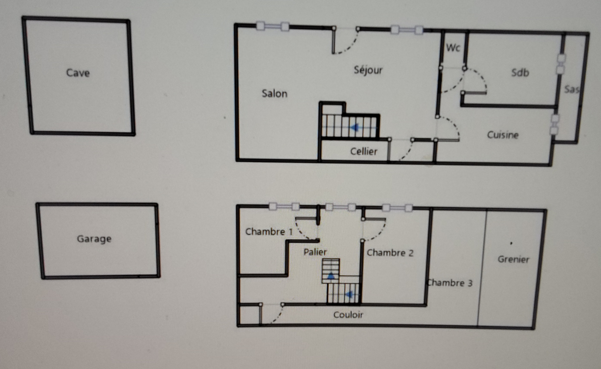 Séjour salon, cuisine équipée, trois chambres, une salle de bains, un wc, une jolie cave enterrée, une cour privative.
