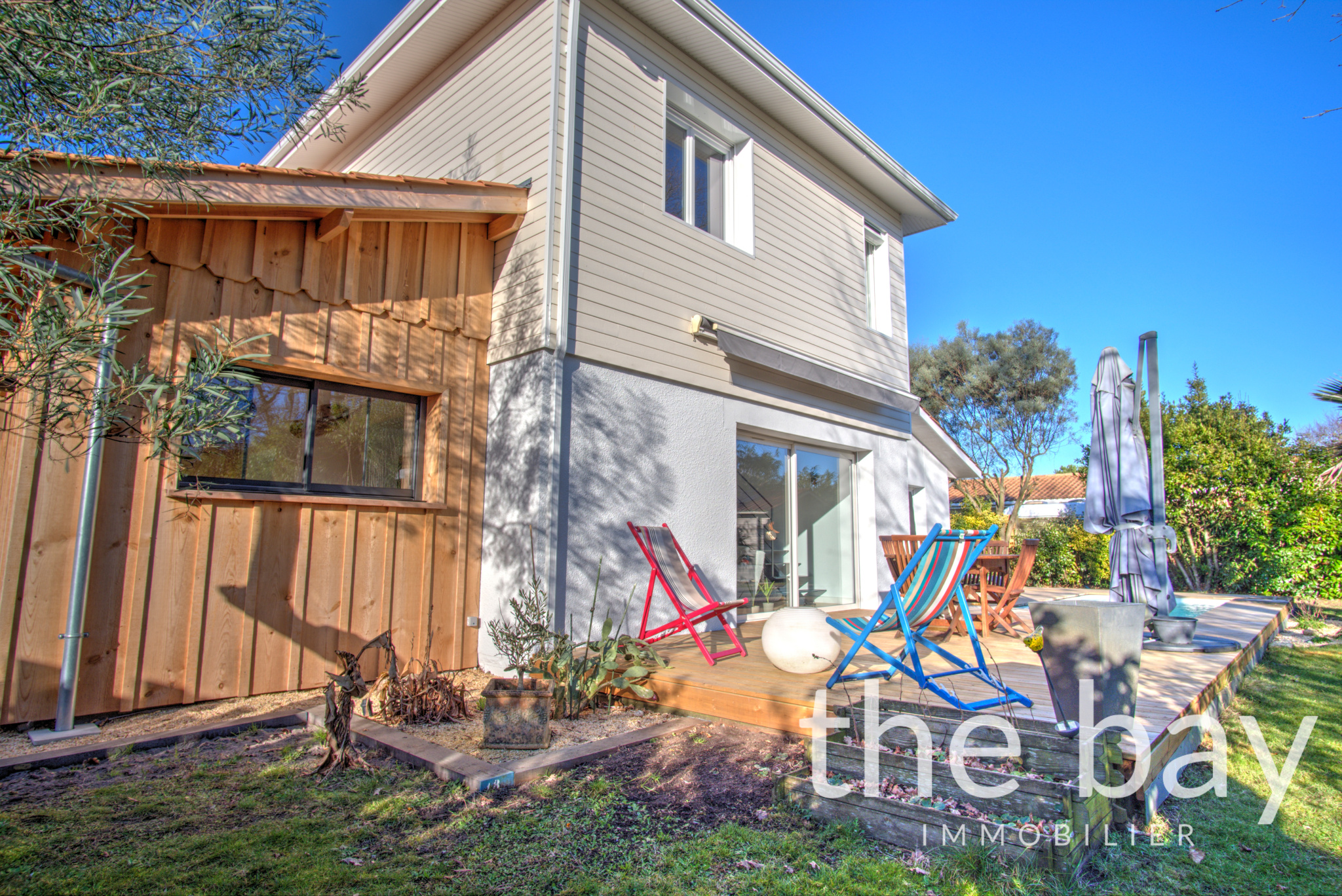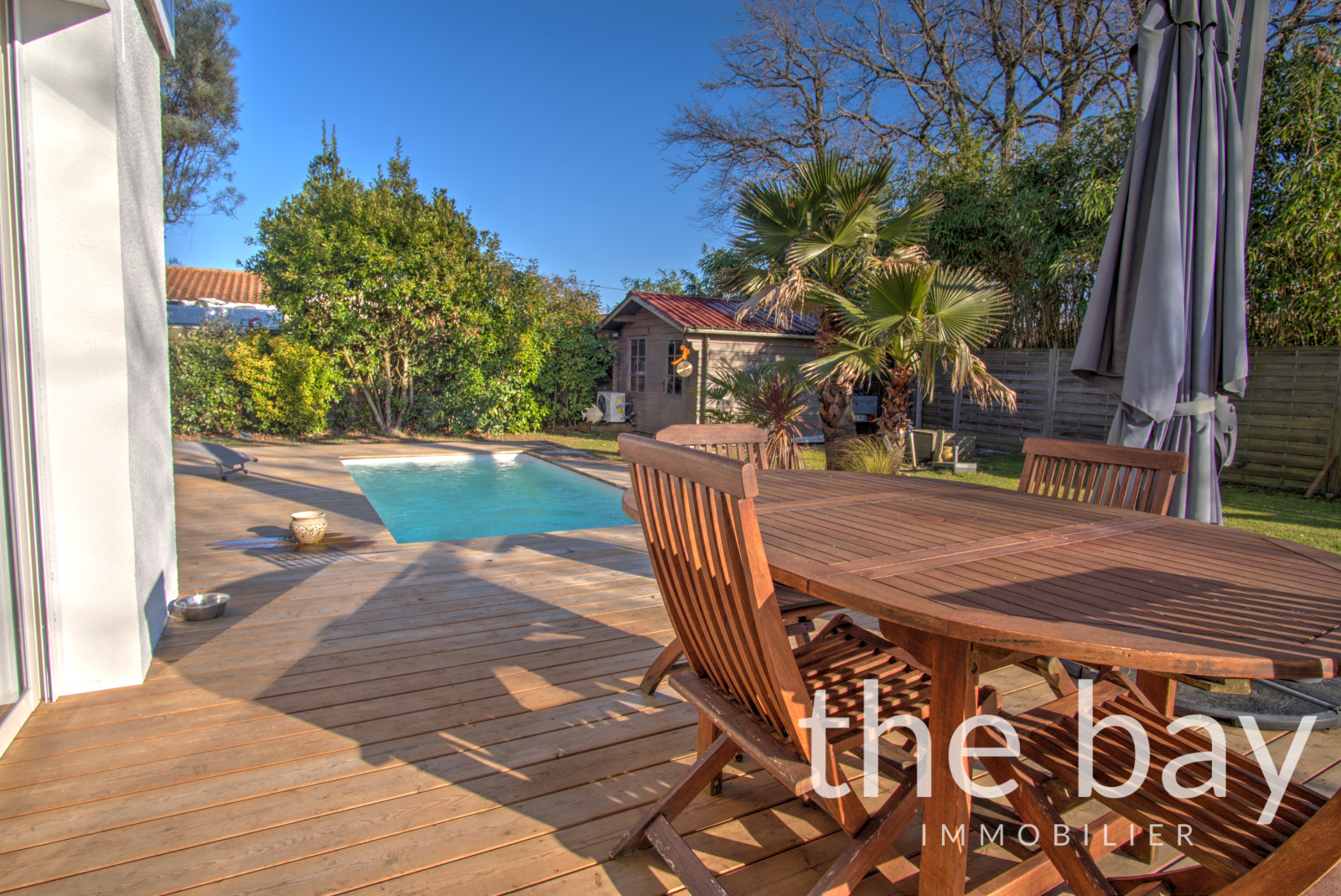 À l’extérieur, vous profiterez d’une très belle terrasse entourant une piscine chauffée, d’un jardin entièrement arboré et d’un abri.