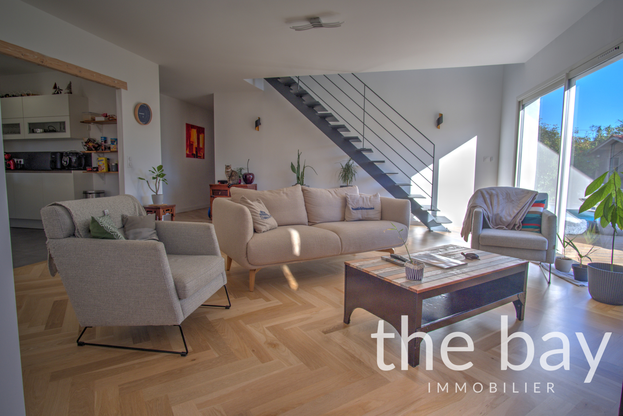 En parfait état, cette villa propose une vaste pièce de vie comprenant un salon, une salle à manger prenant place dans une extension récente, ainsi qu’une cuisine ouverte.