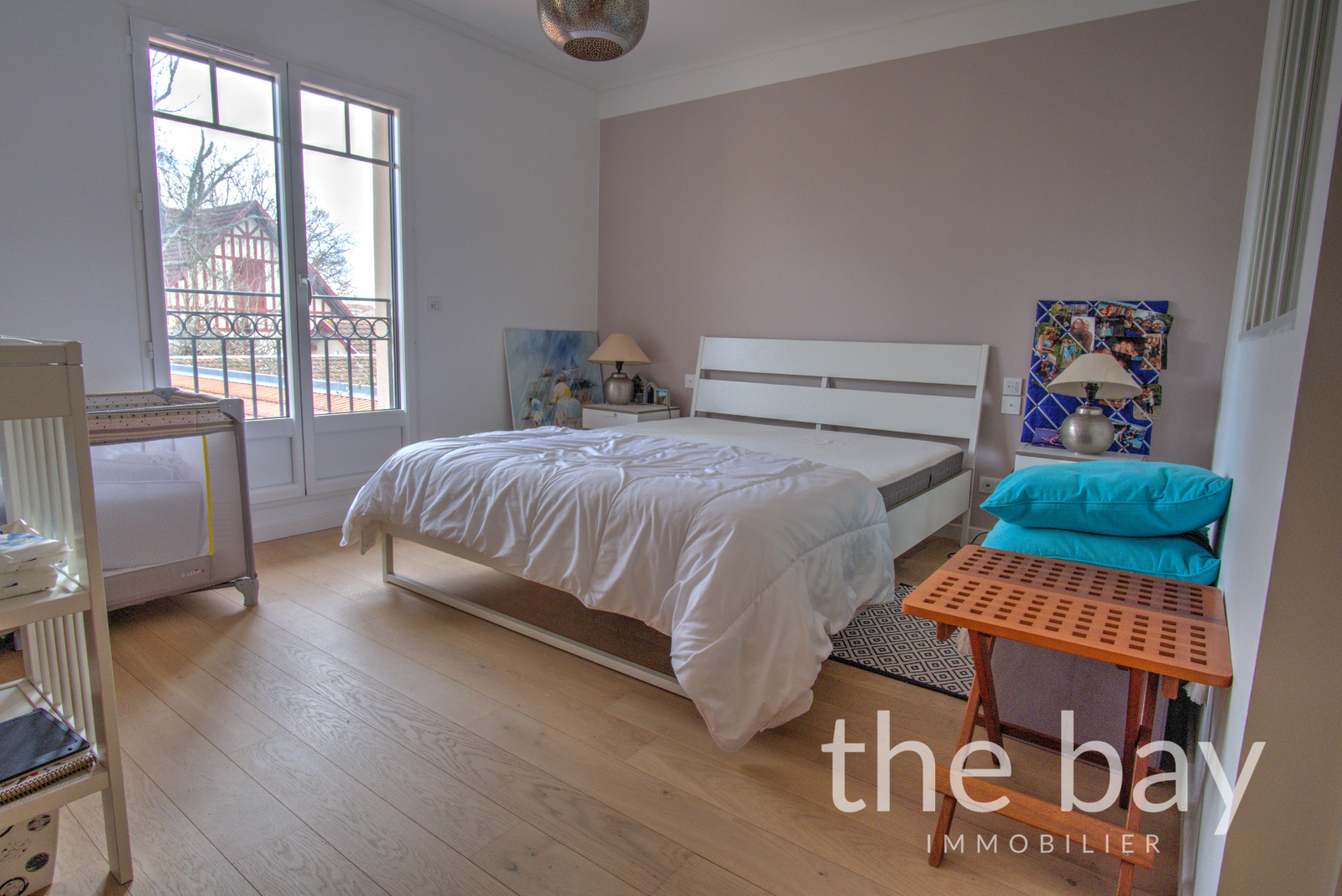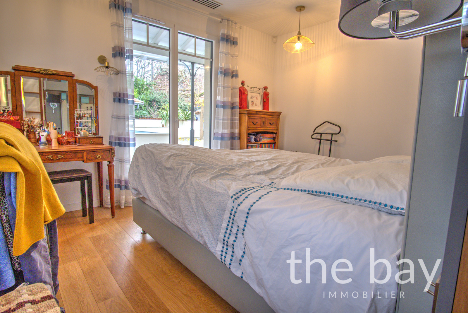 Le rez-de-chaussée accueille également une suite parentale, volontairement à l’écart, garantissant confort et intimité. Elle se compose d’une chambre spacieuse, d’un dressing, d’une salle d’eau et de sanitaires privatifs.