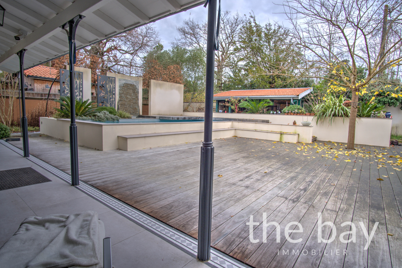 Développant environ 240 m² habitables, cette propriété harmonieuse et parfaitement aboutie a été pensée pour profiter pleinement de la douceur de vivre du Bassin, aussi bien en résidence principale qu’en villégiature.