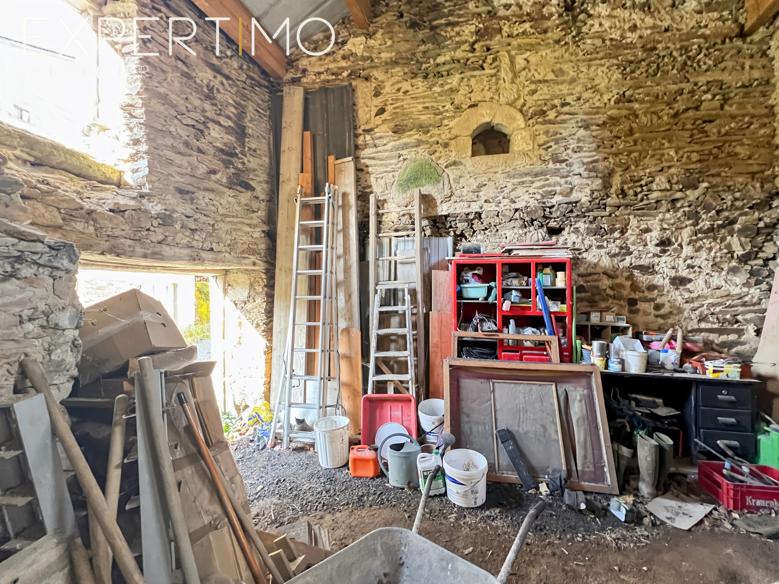 A l’étage, vous disposerez d’une mezzanine avec bureau, d’une chambre et d’un WC. Possibilité de créer une troisième chambre.
