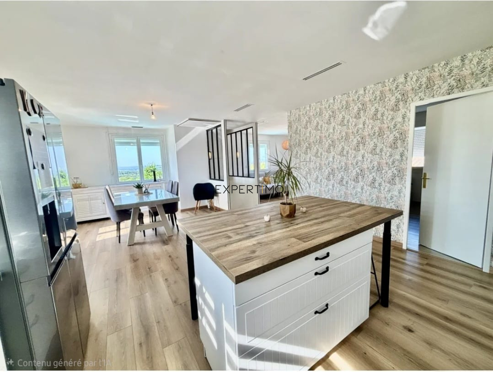 A l'étage, la maison propose un salon-séjour lumineux avec une cuisine équipée ouverte, créant un espace convivial avec une belle terrasse. L'espace nuit se compose de deux chambres, d'une salle de bain avec douche et baignoire, ainsi que d'un WC indépendant.