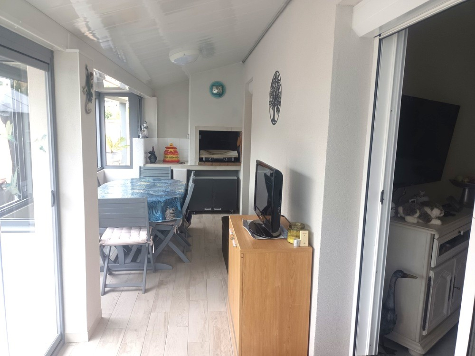 Descriptif : Sérignan ( 34410 ). Située à proximité du bord de mer ( 300 mètres environ) , maison plain-pied T3/4 d'environ 67,4 m2 ( 54,84 m2 hab + 12,56 m2 véranda ) composée : entrée, séjour / cuisine américaine / équipée, véranda, 2 chambres, salle d'eau / wc, buanderie. Clim gainable, double vitrage, volet roulant, isolation par l'extérieur, panneaux solaires. Excellent état général. Le tout sur un terrain clôturé d'environ 210 m2 avec portail automatisé. Proximités tous commerces et écoles. Taxe foncière 726 € dont 143 € d'ordures ménagères. Investissement sûr pour sa retraite !