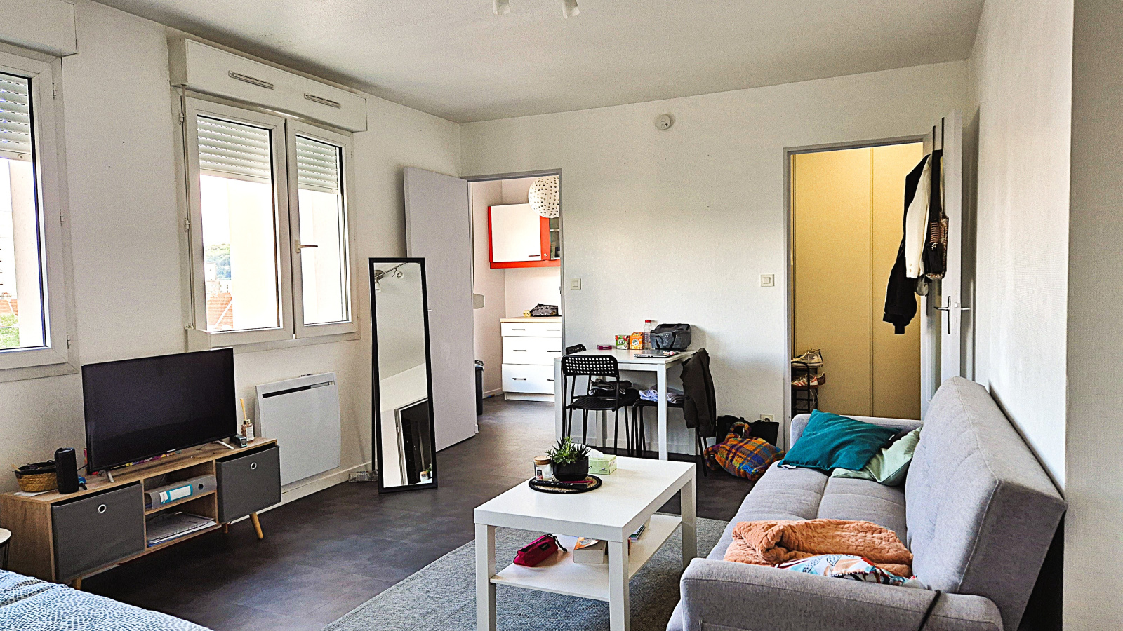Situé au quatrième étage de la résidence "Le Corum", côté parking (au calme), au 3C rue Xavier Marmier, cet appartement T1 de 32m2 avec cuisine, salle d'eau et WC separés, récemment rénové (notamment la salle d'eau), profite d'une belle note "D" au DPE, ce qui est rare pour les petites surfaces. Il ne souffre d'aucun vis à vis. Sa cave privée est un bonus bienvenu.