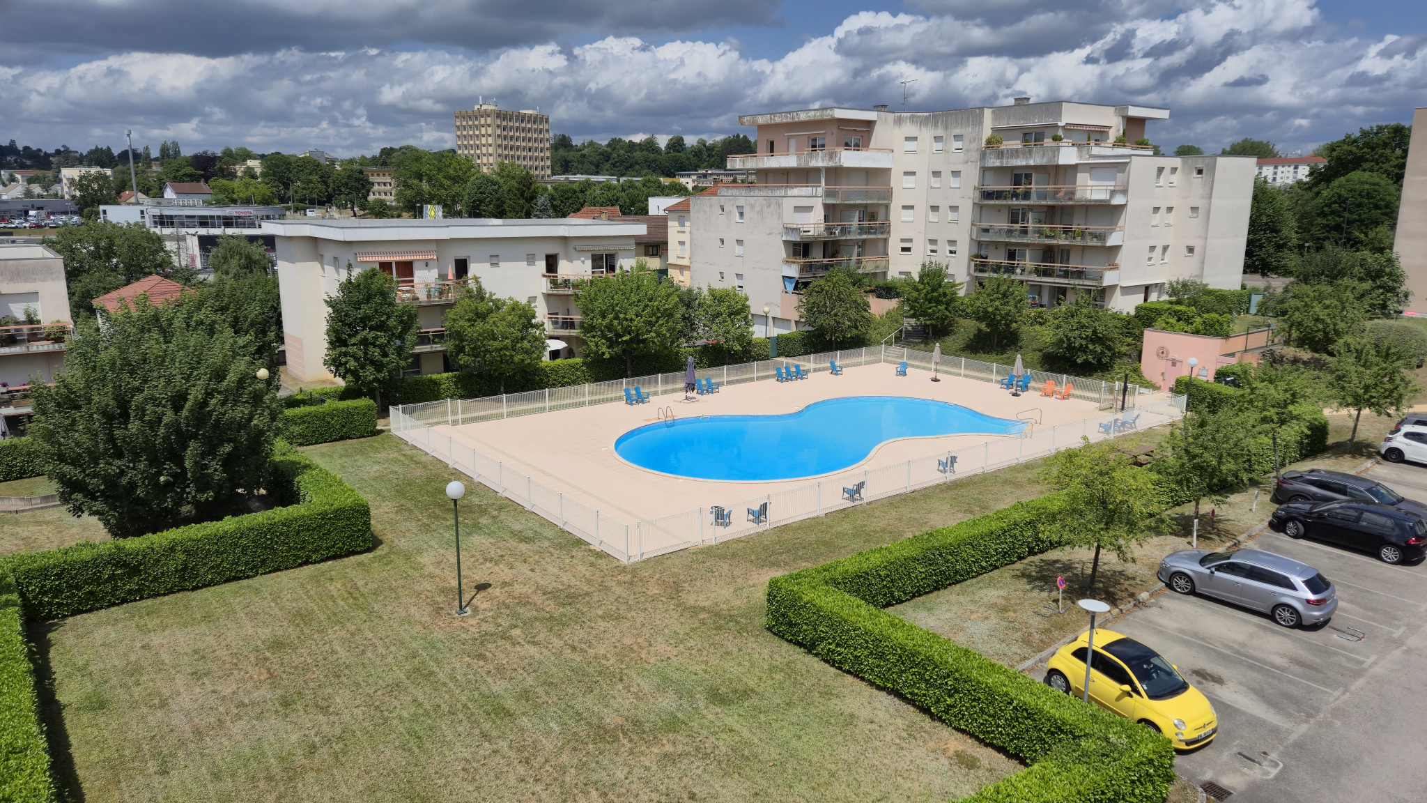 Cet appartement rénové haut de gamme, au 4eme étage d'un immeuble à taille humaine dans une résidence de prestige doublement sécurisée (portail automatique véhicules) située 9, rue des Saint-Martin à Besançon, bénéficie d'une belle vue panoramique sur la piscine