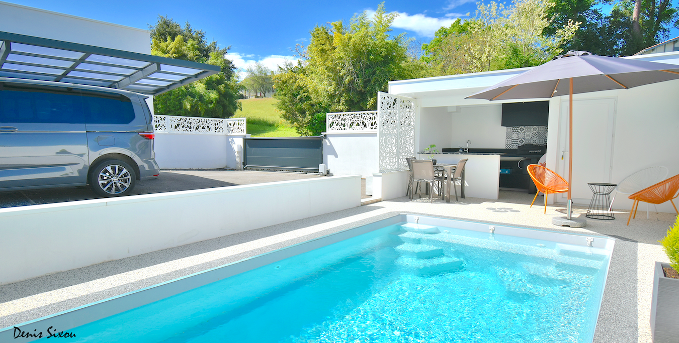 A vendre en exclusivité maison au calme à Boucau de 165 m2 sur une parcelle de 500 m2 située à 200 mètres des commerces et commoditès, ainsi que 1,5 kms de la mairie de Tarnos. Construite en 2019, elle vous séduira à tous points de vues. En entrant vous apprécierez la luminosité et ses volumes. Le niveau du bas se compose avec un wc indépendant à l'entrée de la maison, dans la continuité la pièce de vie de 40 m2 avec sa salle à manger donnant côté terrasse ainsi que son séjour très confortable. La première partie nuit possède deux chambres dont une belle suite parentale de 20 m2 et son dressing donnant sur la terrasse, la seconde avec un placard, un wc indépendant ainsi que une salle d'eau. Nous repartons vers la pièce de vie avec sa cuisine fermée de 15 m2 pouvant s'ouvrir grâce à une porte verrière, attenant un cellier avec l'accès sur un grand garage de 30m2 équipé comme suit : prises pour véhicules électriques de deux boitiers, aspirateur centralisé et adoucisseur d'eau, climatiseur réversible. Le petit plus à ce même niveau entre la pièce de vie et le côté nuit, un bureau indépendant. Pour accéder à l'étage vous emprunterez un bel escalier moderne, déssèrvant deux chambres avec chacune son placard, une salle de bain avec douche et baignoire, un wc indépendant. Sur l'espace extérieur une piscine chauffée au sel, une cuisine d'été et pool house, le tout doté d'un aménagement moderne et très bien entretenu. Pour compléter le tout, à l'arrière de la maison et à l'abris des regards vous trouverez une cabane de jardin, un carport est également présent à l'entrée et côté garage de la maison. Photos profesionnelles Denis Sixou