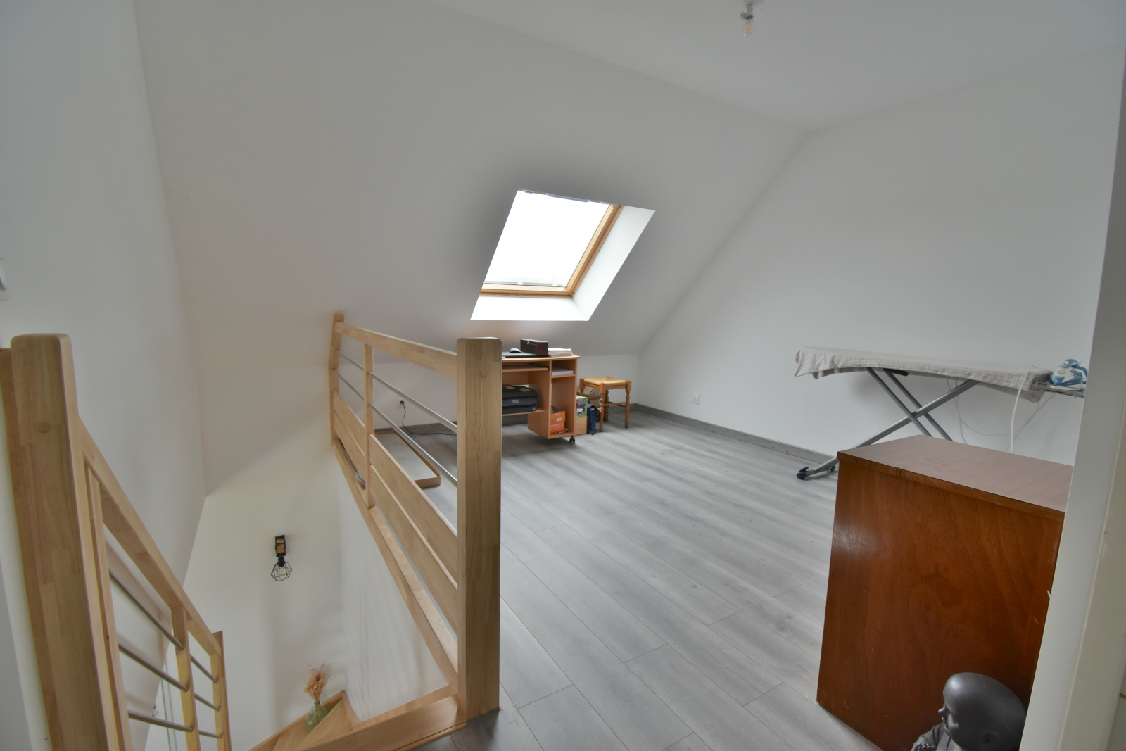 À l’étage, un palier de 15 m² distribue deux chambres de 13 et 17 m². Ces espaces, lumineux et fonctionnels, accueillent aussi une salle de bains, un WC séparé, idéale pour les enfants ou les invités.