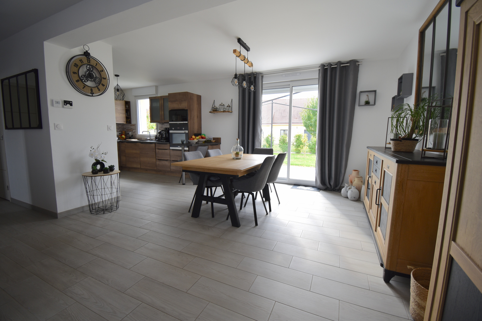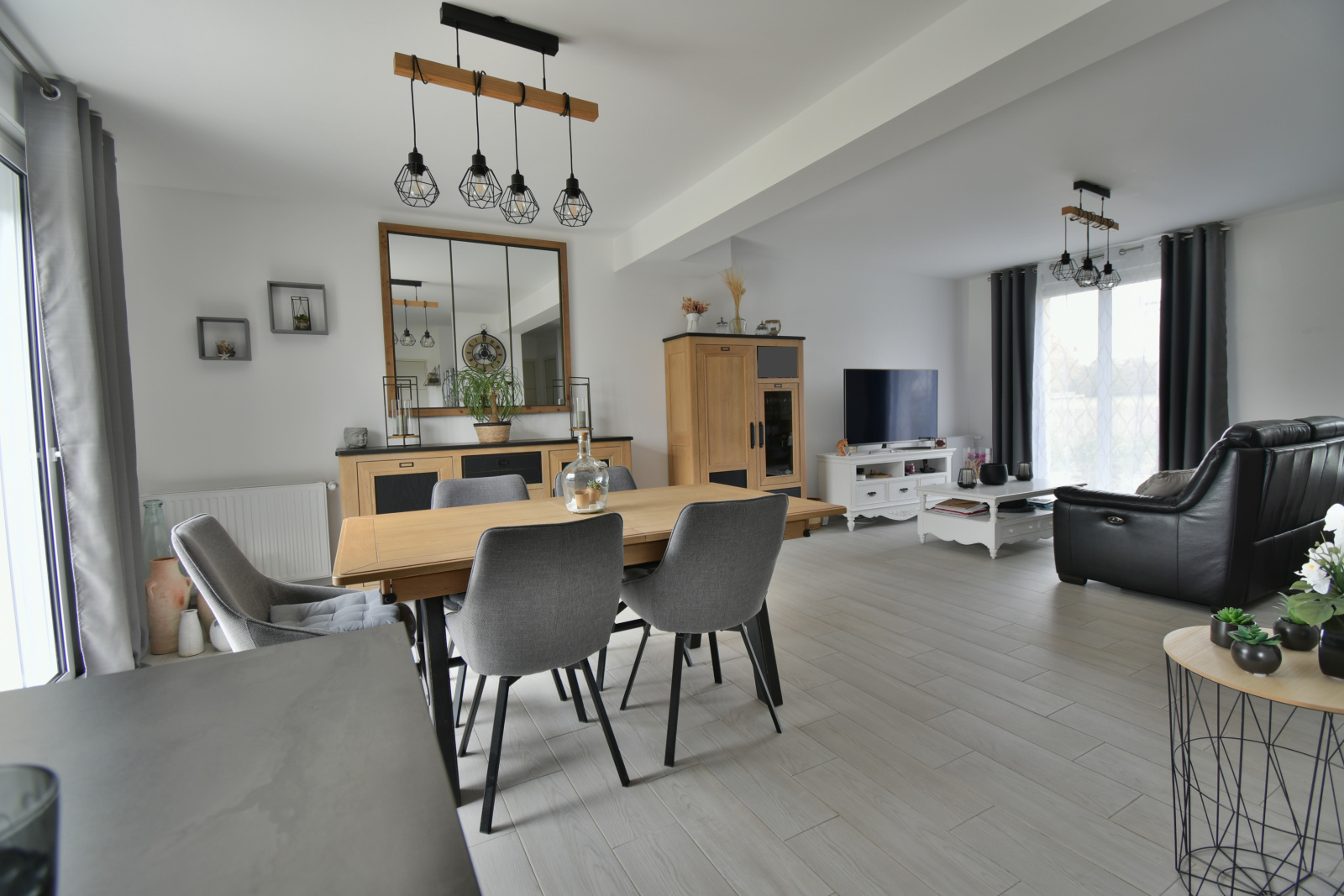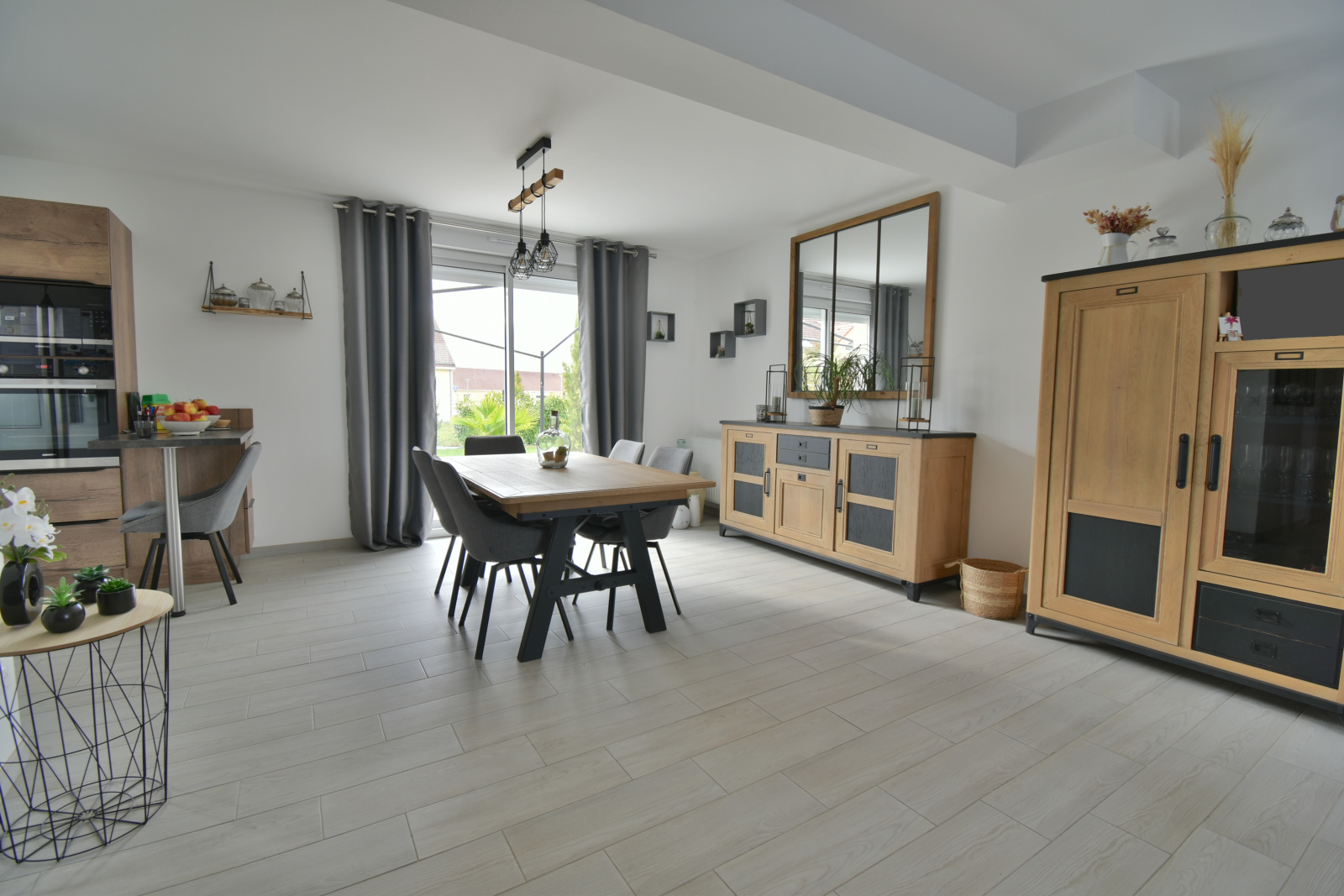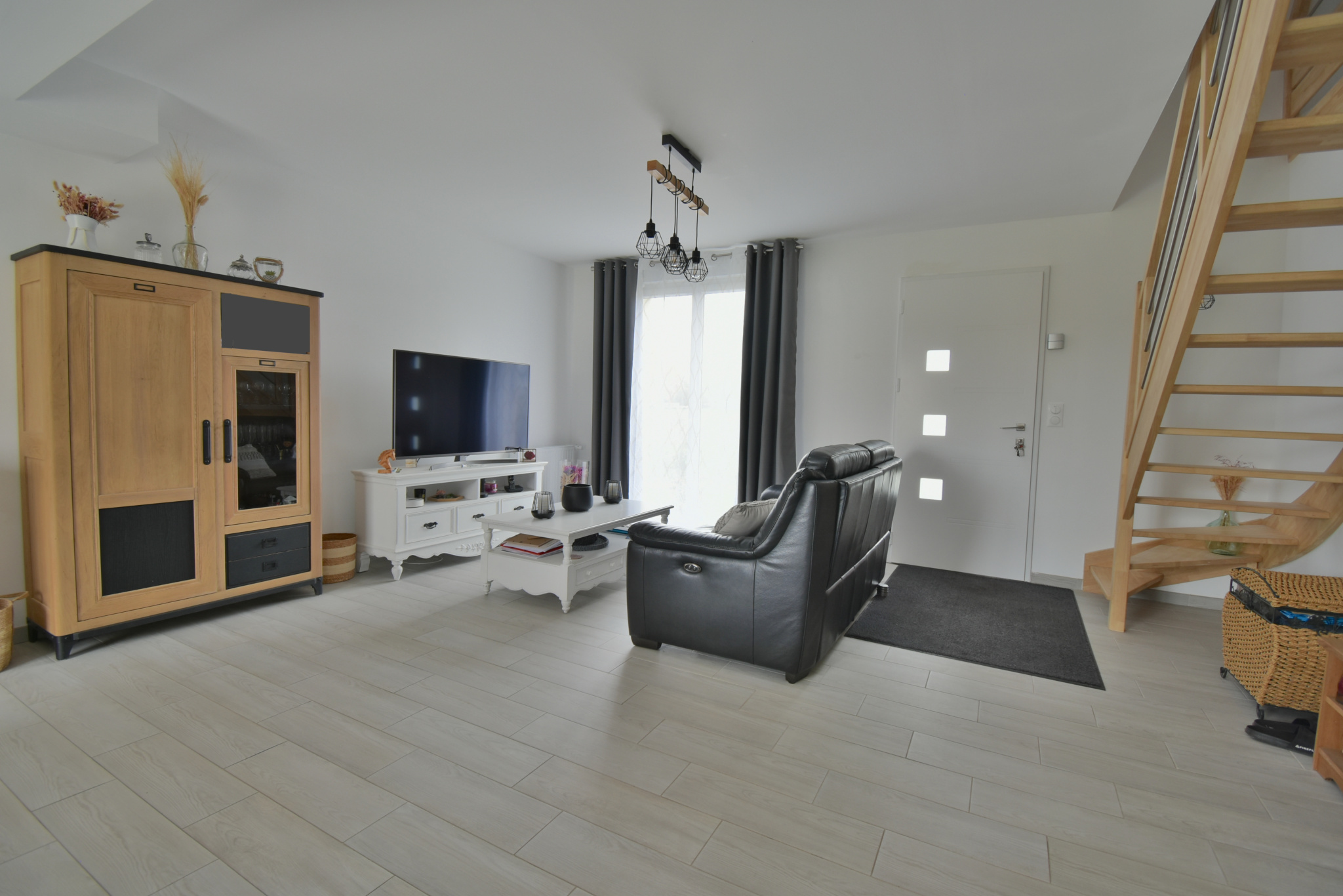 La maison s’ouvre sur une vaste pièce de vie de 45 m², baignée de lumière grâce à une double exposition. La cuisine, moderne et parfaitement équipée, s’intègre harmonieusement à un séjour chaleureux et à un salon convivial, idéale pour partager des moments en famille ou entre amis.